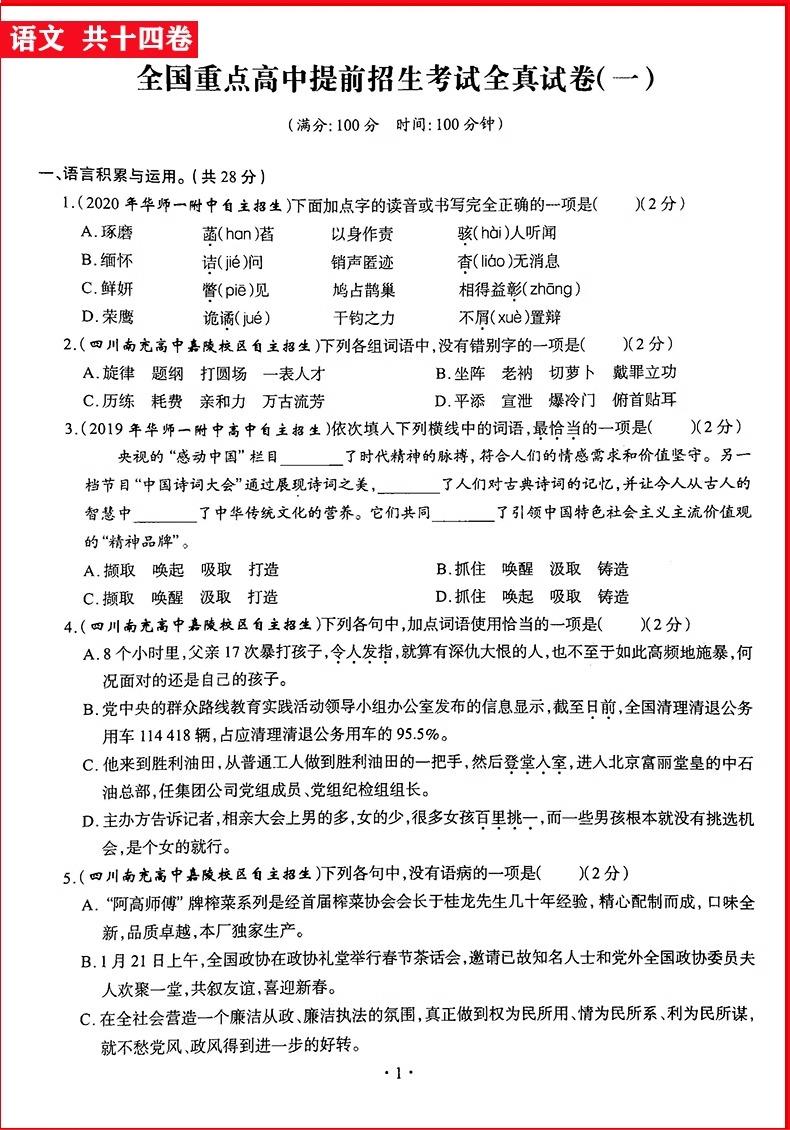 2025奥赛王全国重点高中提前招生考试全真试卷初升高必刷题初中历年自主招生
