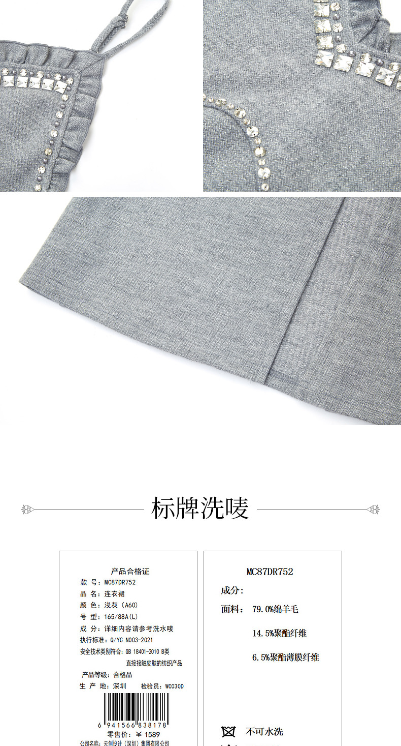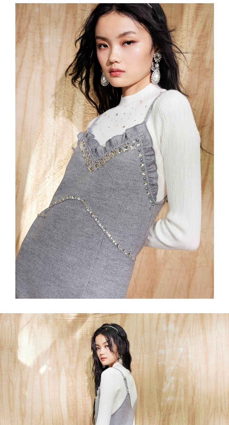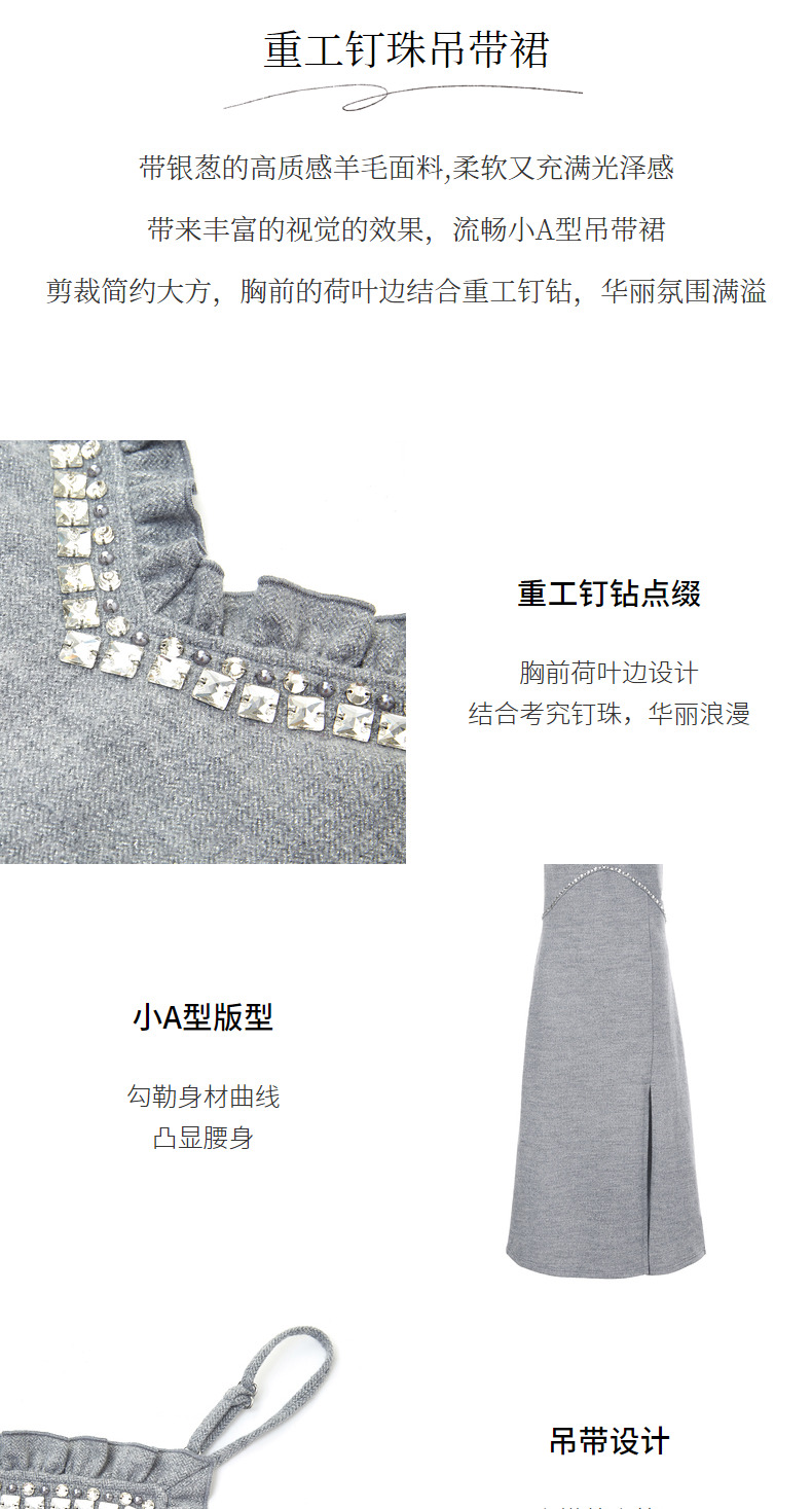 MAXRIENY吊带连衣裙钉珠a字裙设计感复古显瘦格雷系穿搭(货号:MC87DR752)