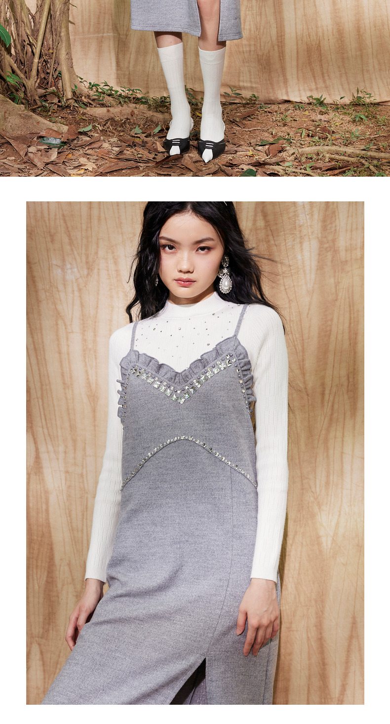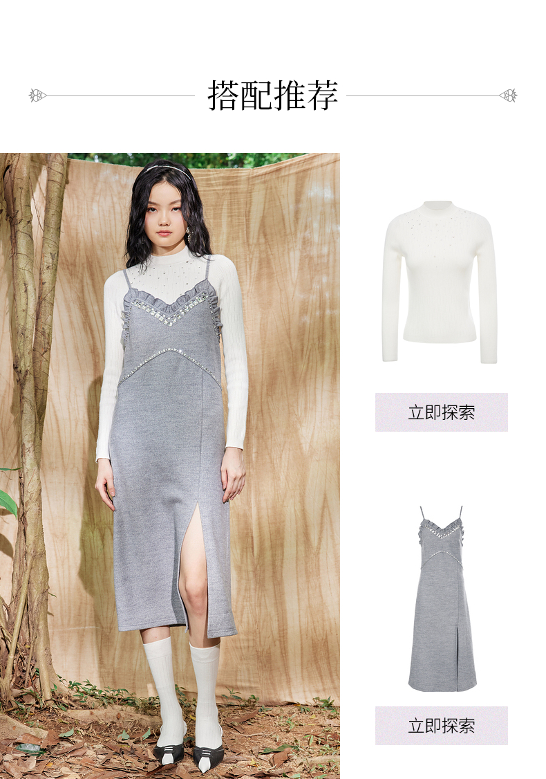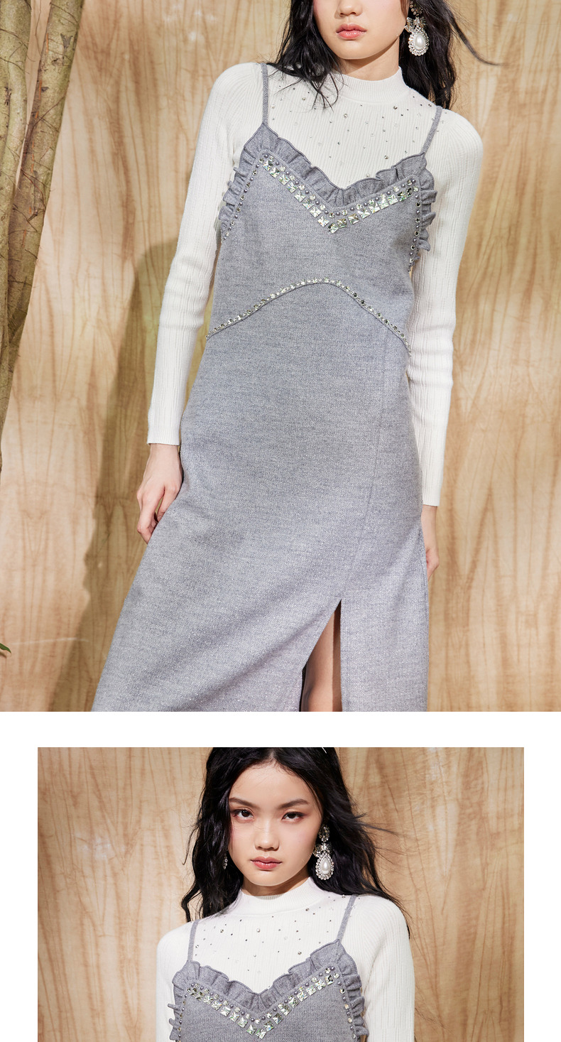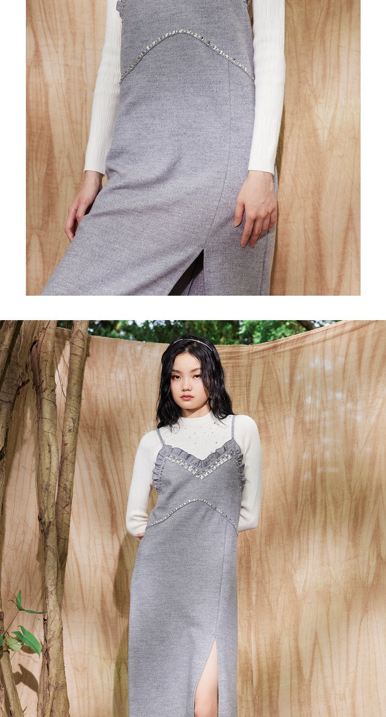 MAXRIENY吊带连衣裙钉珠a字裙设计感复古显瘦格雷系穿搭(货号:MC87DR752)