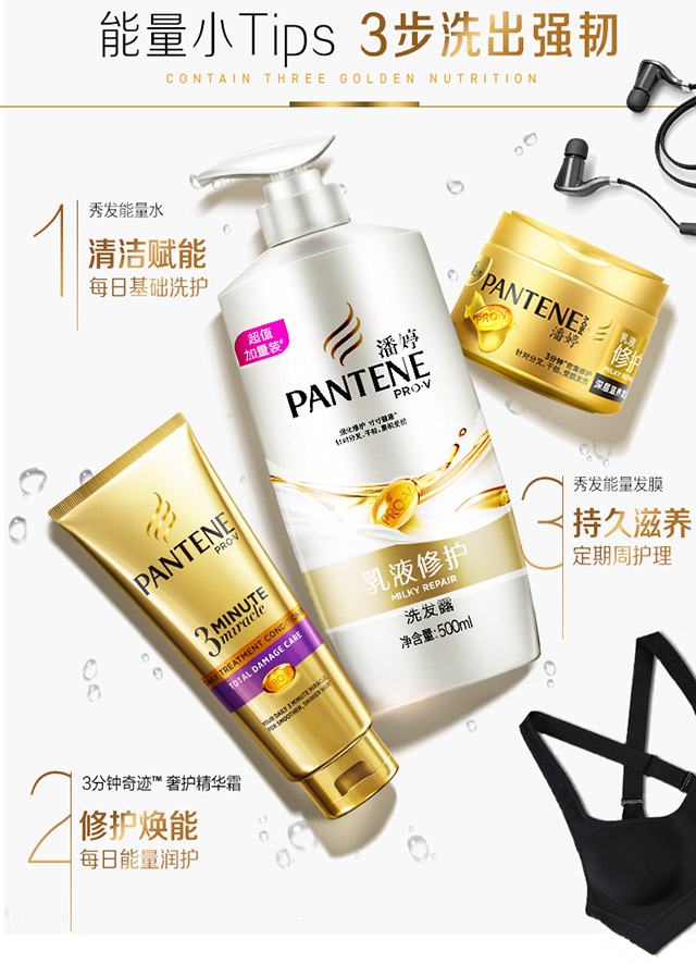 潘婷乳液修护套装(洗发水500ml*2+护发素400ml)送洗80ml*2+发膜70ml