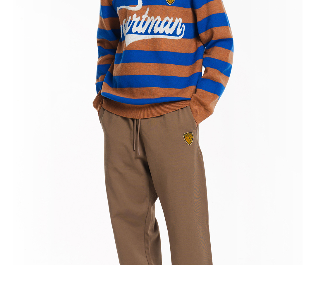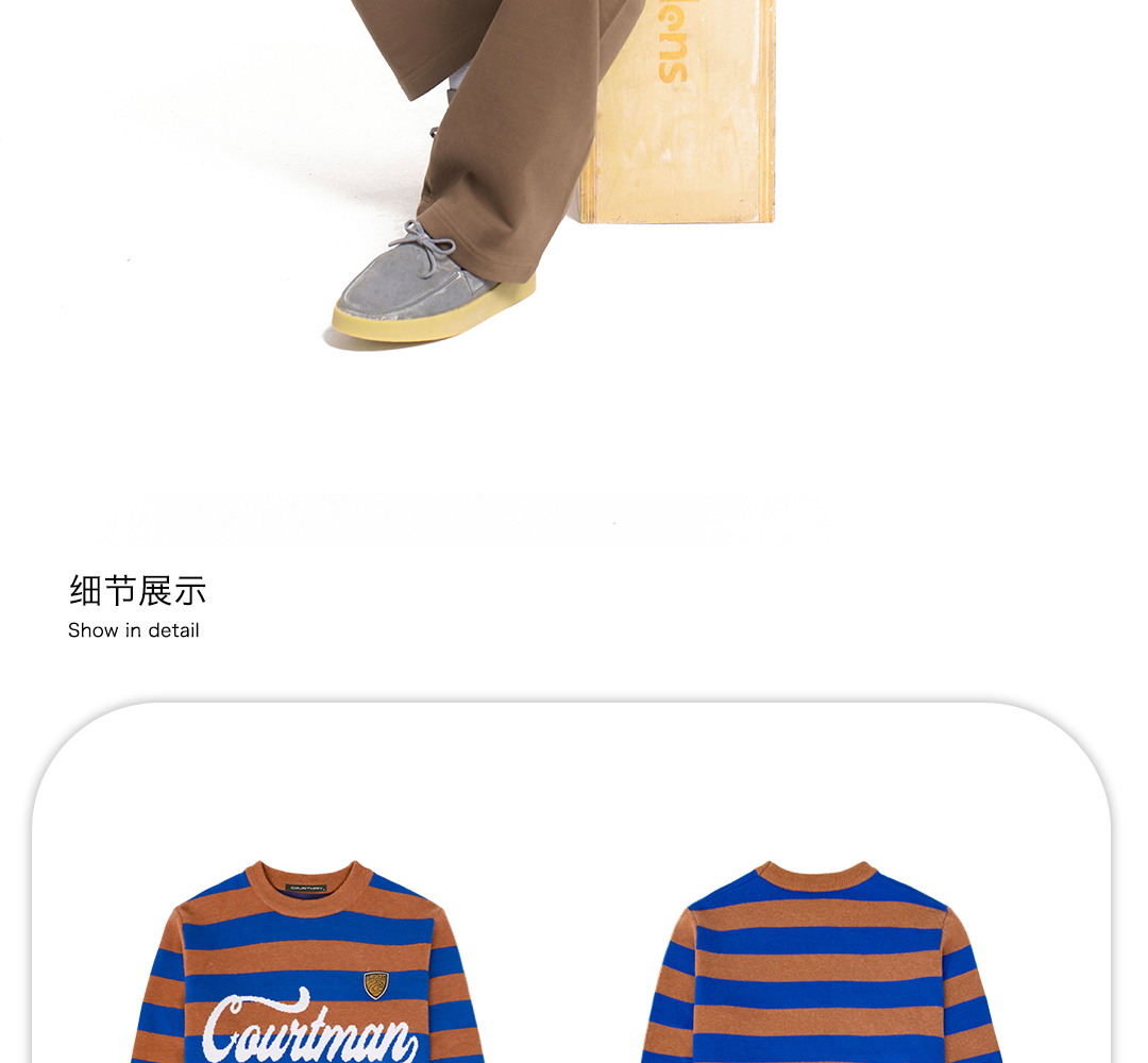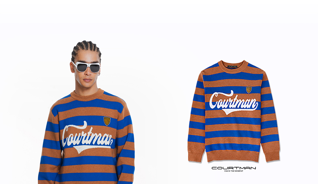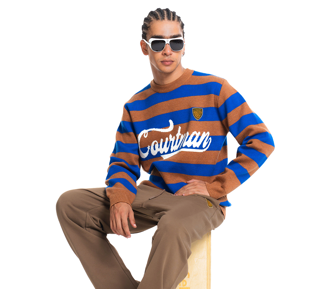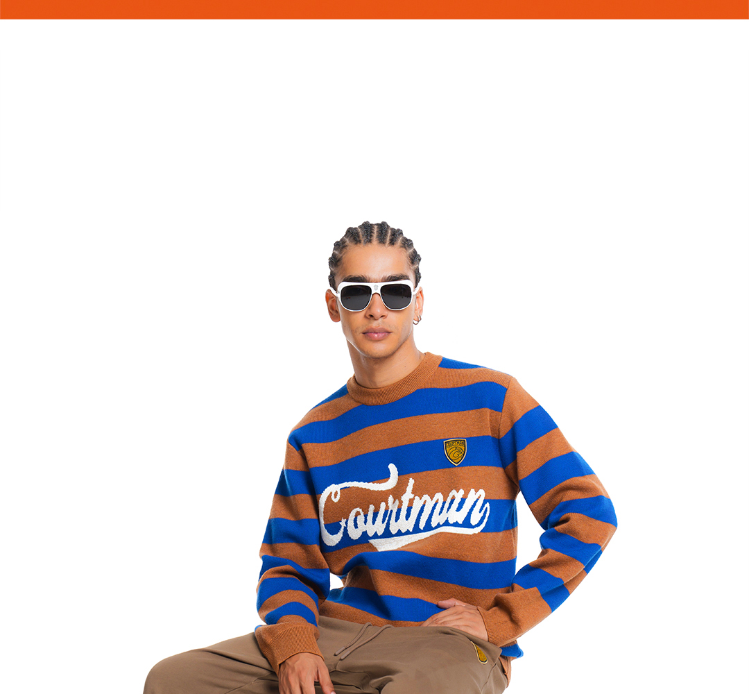 COURTMAN野球帝 美式复古上衣徽章字母条纹圆领毛衣宽松针织衫男