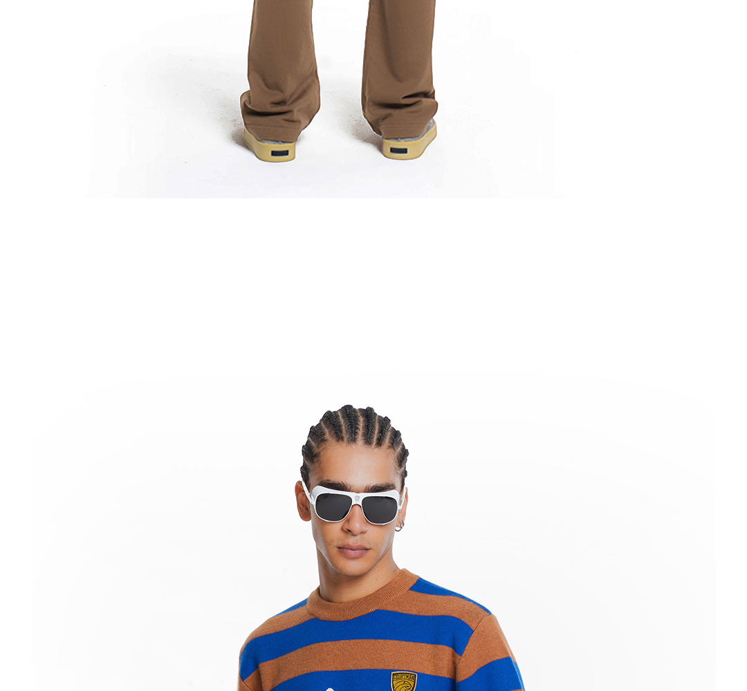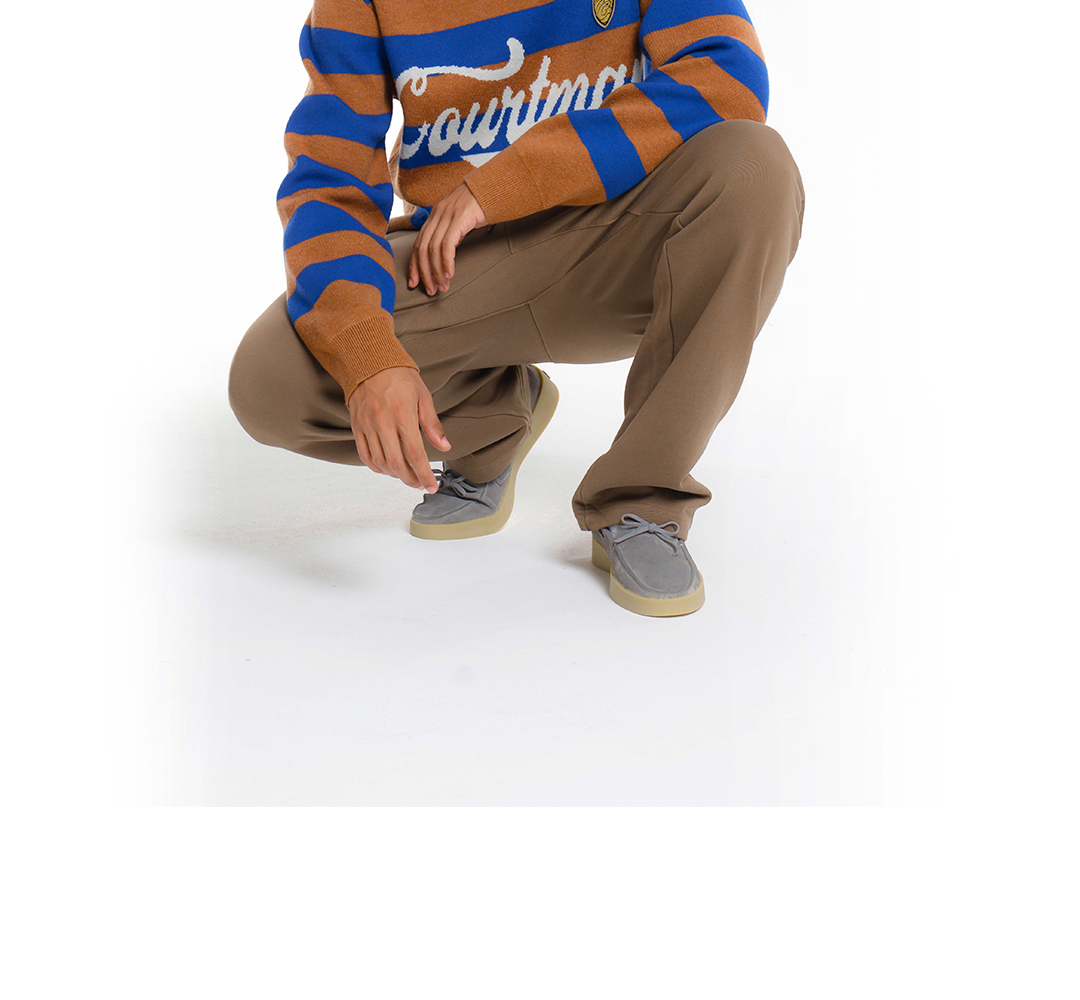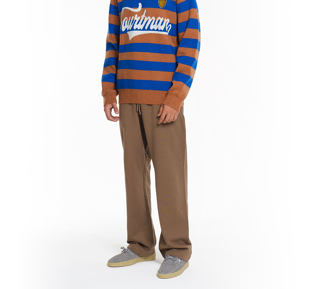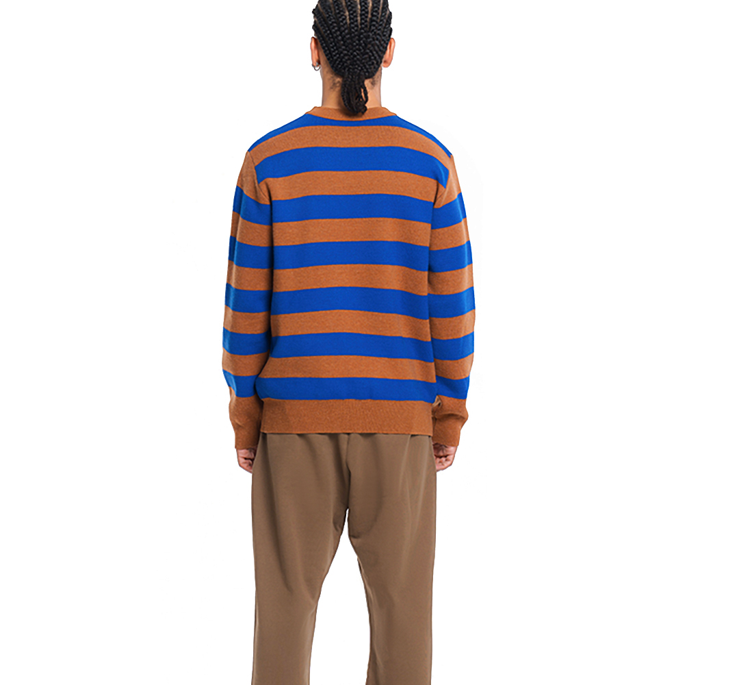 COURTMAN野球帝 美式复古上衣徽章字母条纹圆领毛衣宽松针织衫男