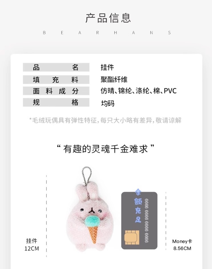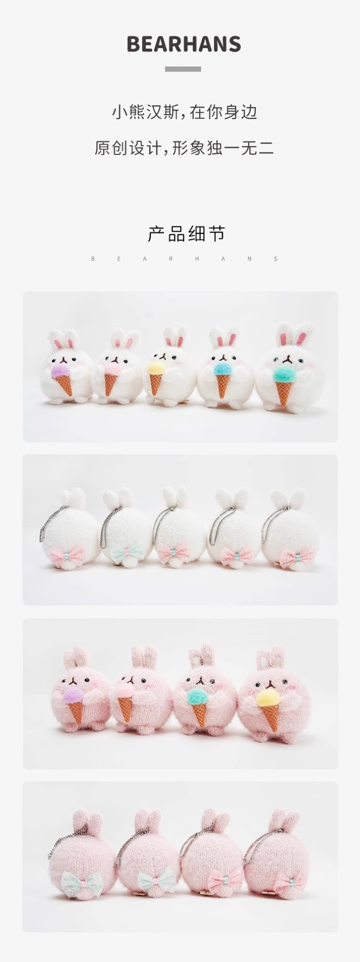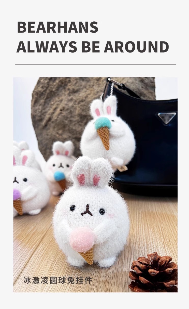 小熊汉斯冰激凌圆球兔粉挂件