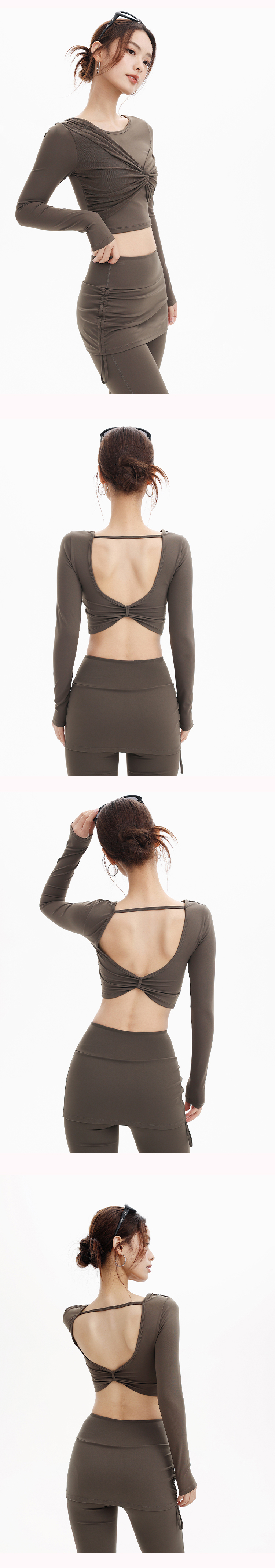 跃牌【禅语梵心】网纱纽结运动T恤女长袖带胸垫瑜珈服网纱上衣速干显瘦健身衣CX5590