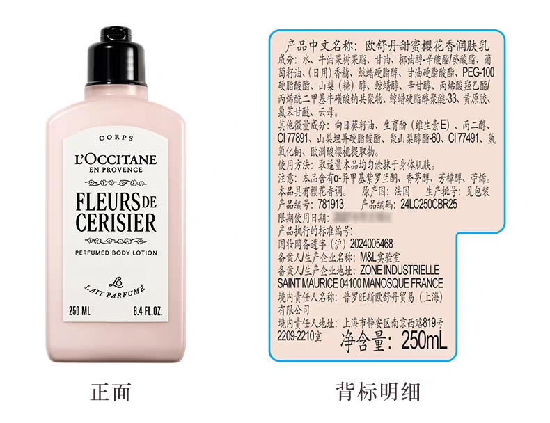全新升级欧舒丹甜蜜樱花润肤乳250ml+樱花沐浴露250ml