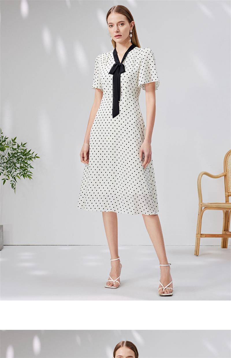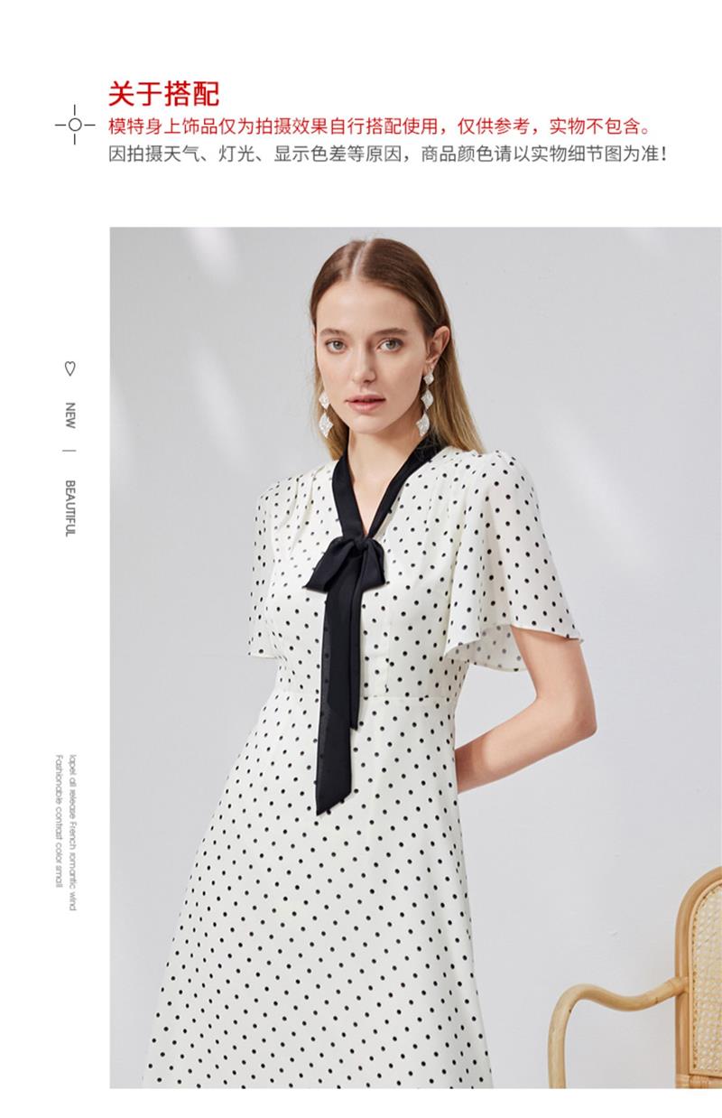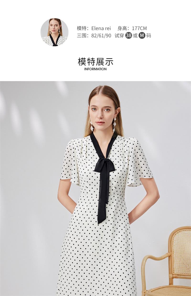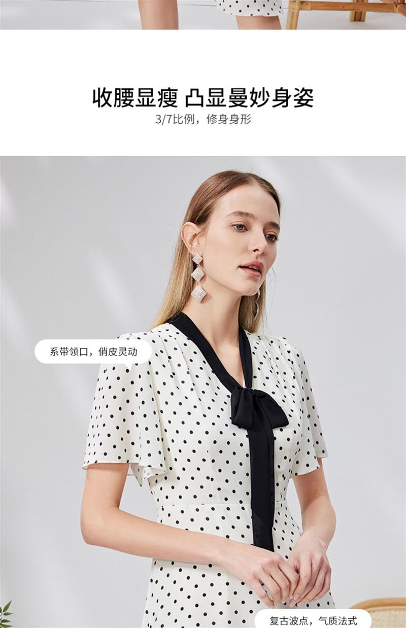 EITIE爱特爱复古飘带V领收腰波点浪漫连衣裙法式通勤显瘦夏新款B2307152