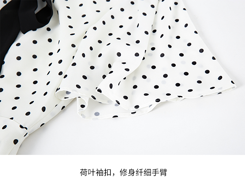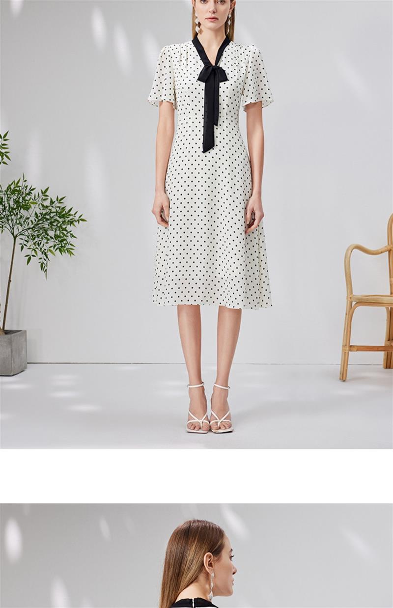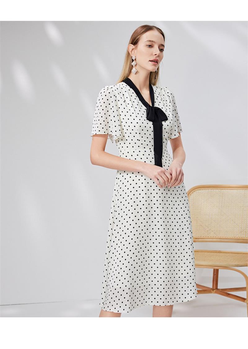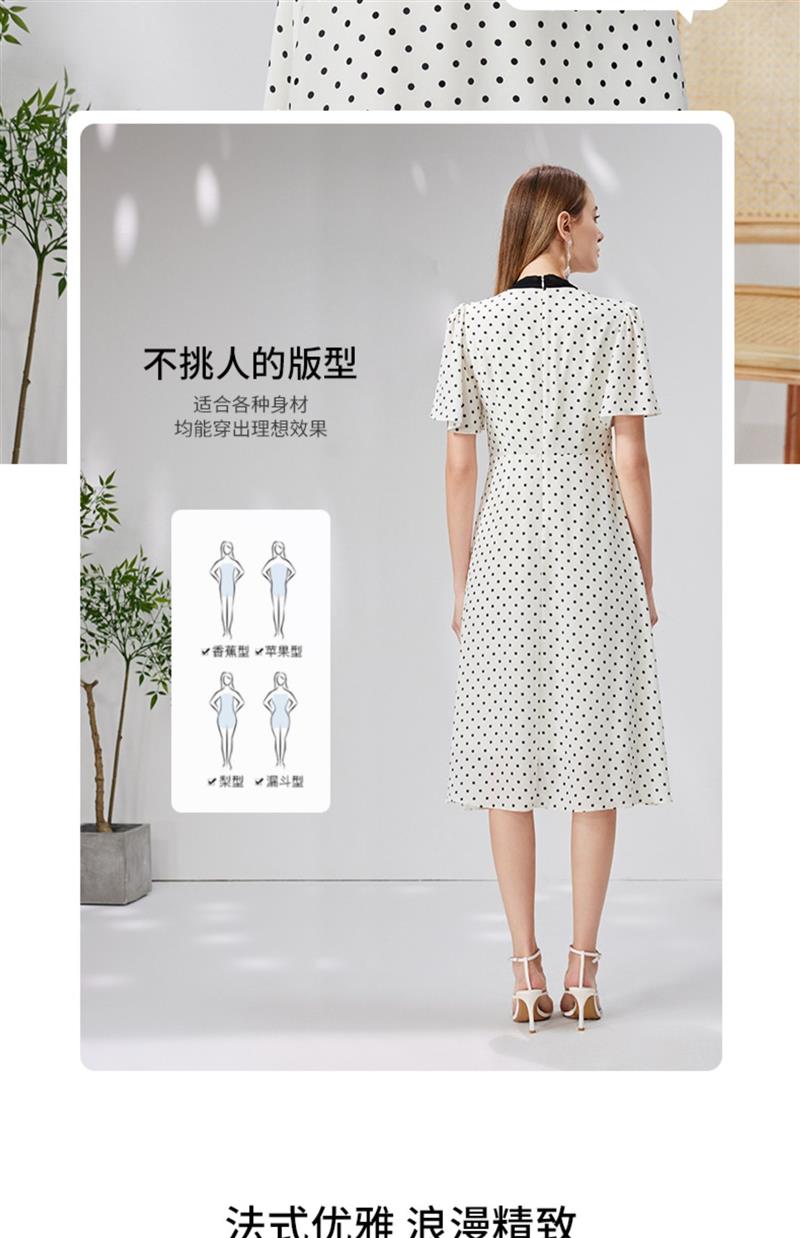 EITIE爱特爱复古飘带V领收腰波点浪漫连衣裙法式通勤显瘦夏新款B2307152