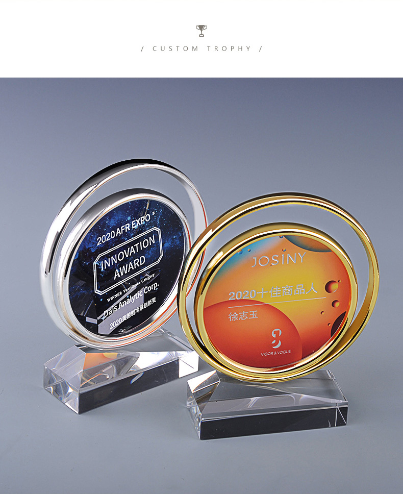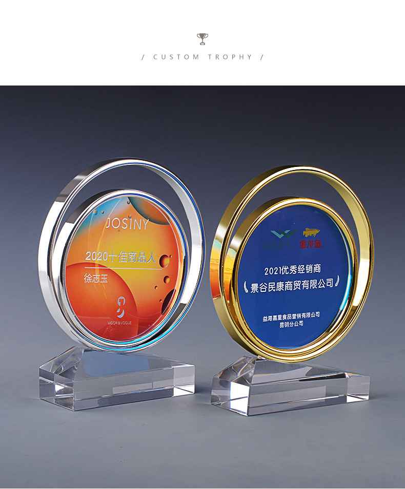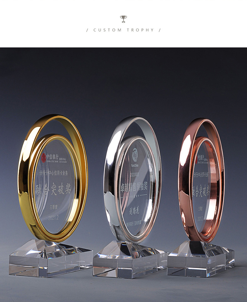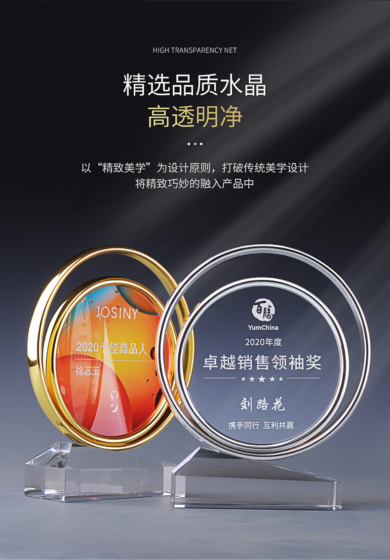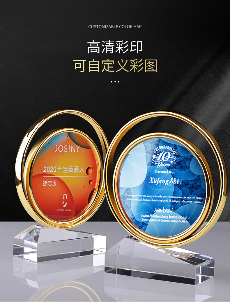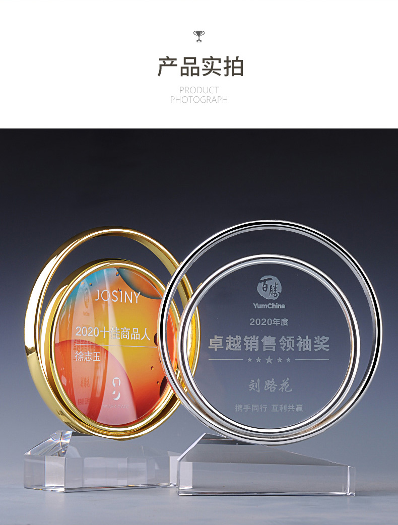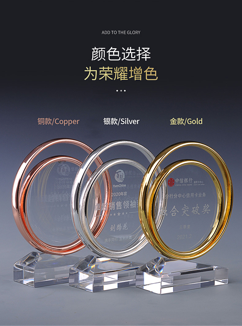 水晶奖杯定制创意彩色金属定做优秀员工企业年会颁奖高档大气2021 新款【金银铜三色】【玉石/K9水晶/彩印】