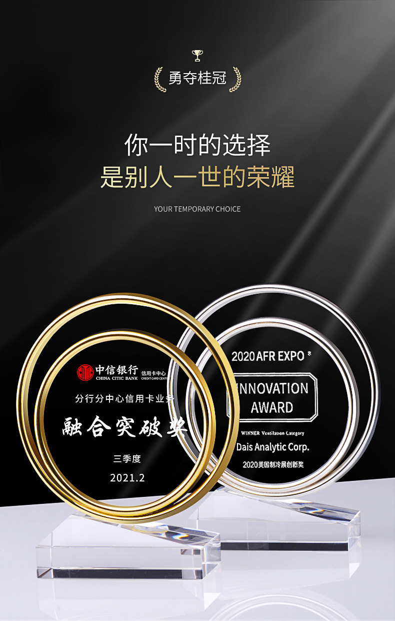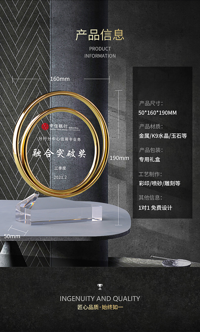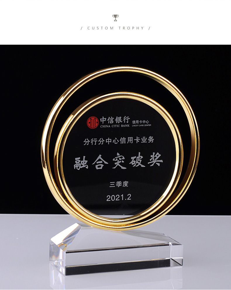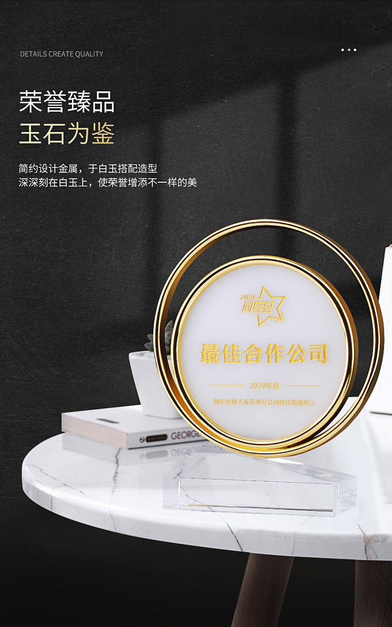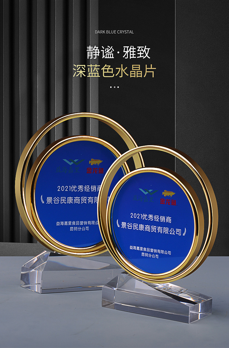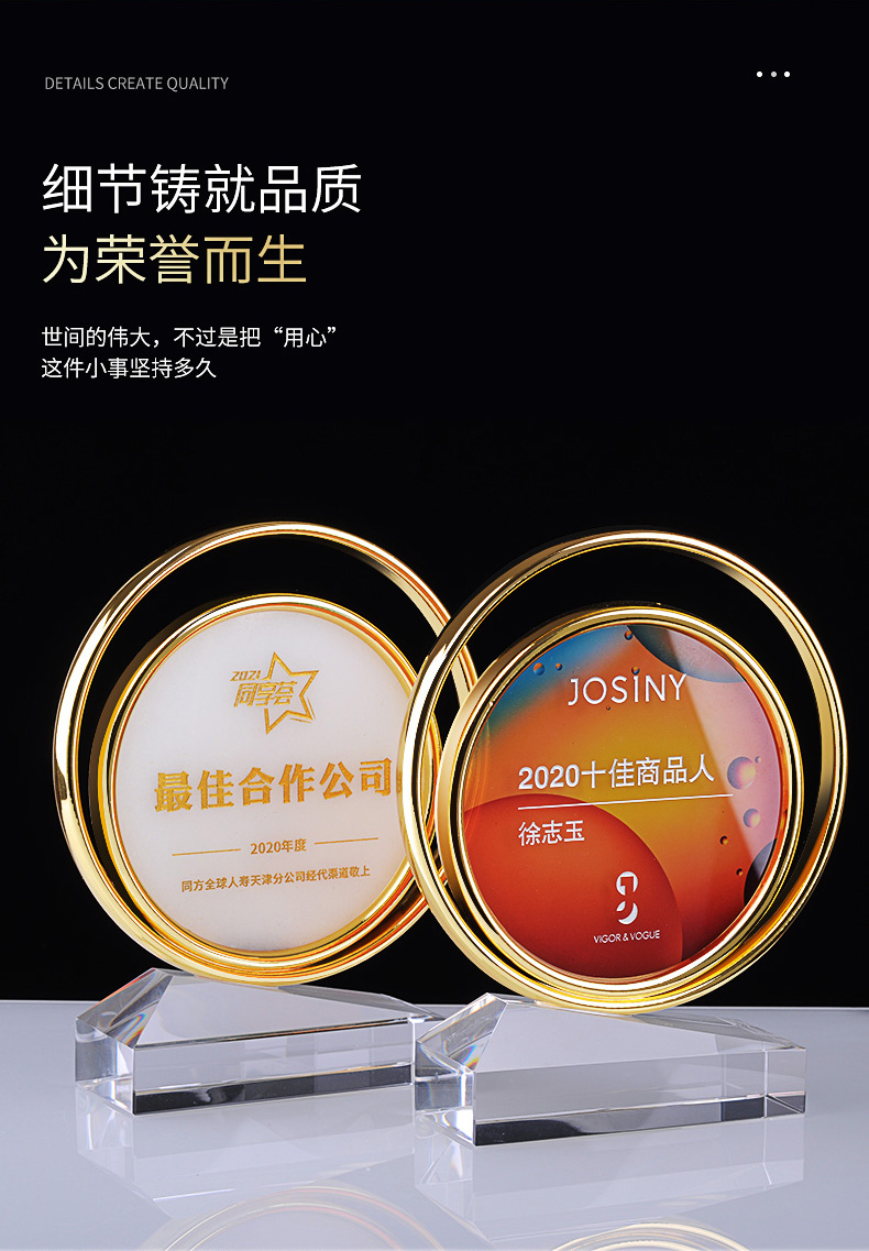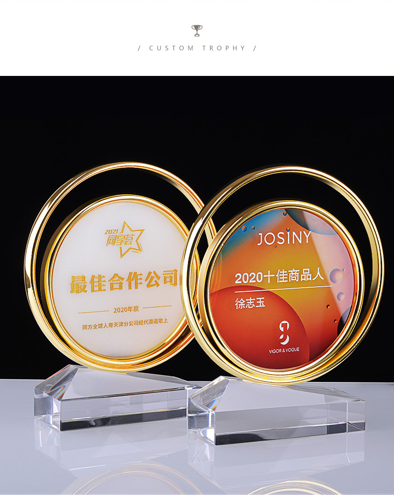 水晶奖杯定制创意彩色金属定做优秀员工企业年会颁奖高档大气2021 新款【金银铜三色】【玉石/K9水晶/彩印】