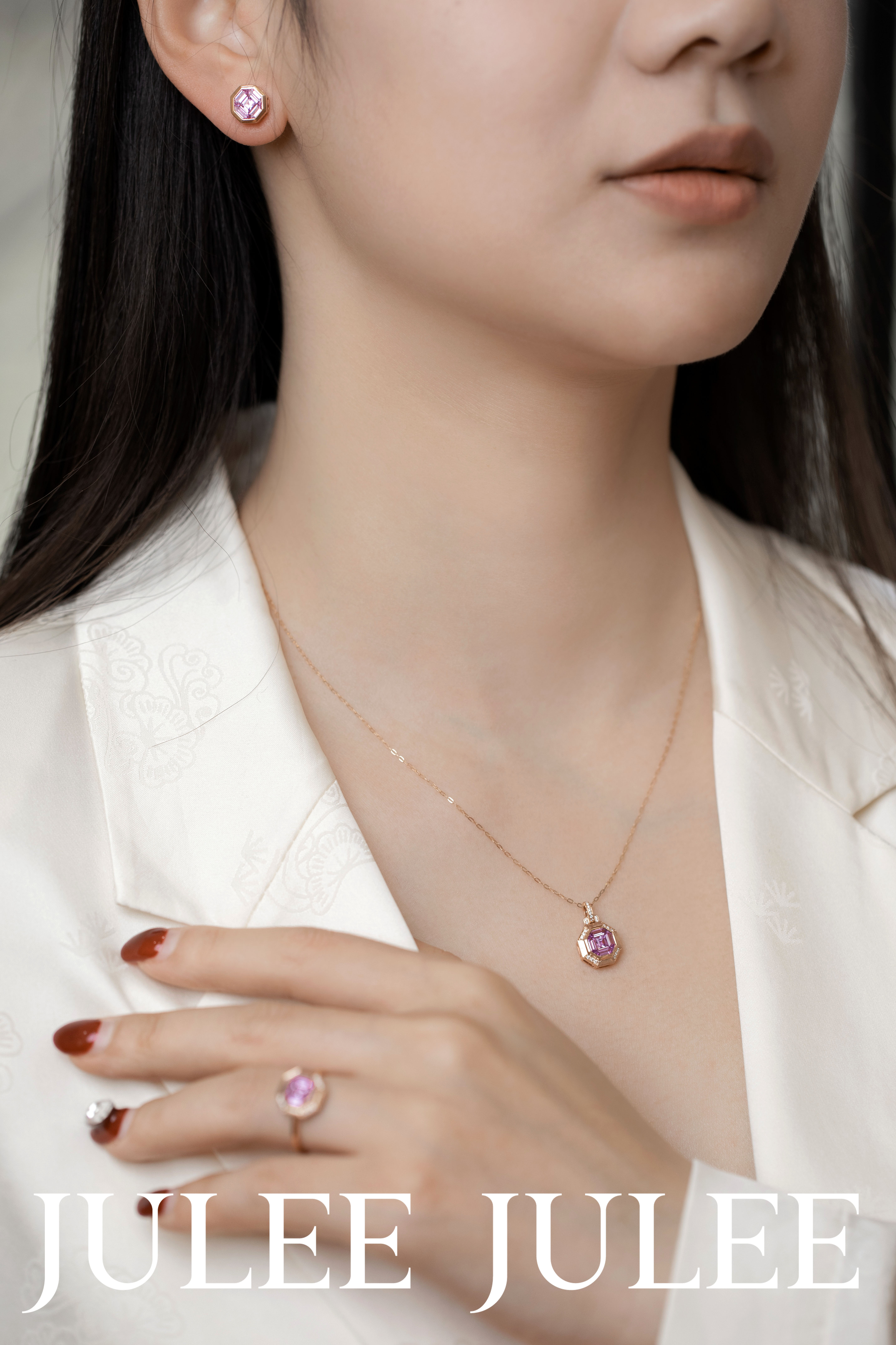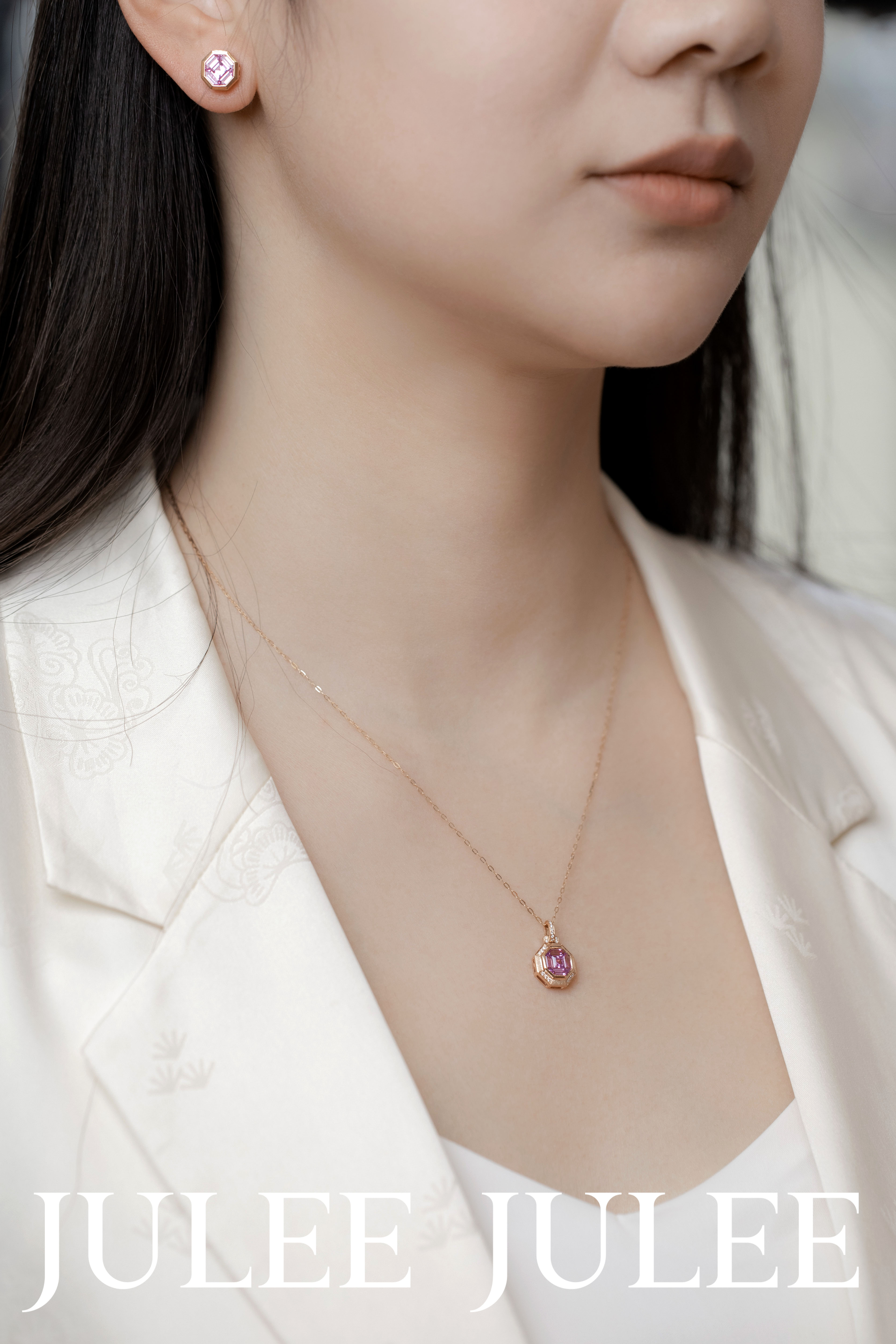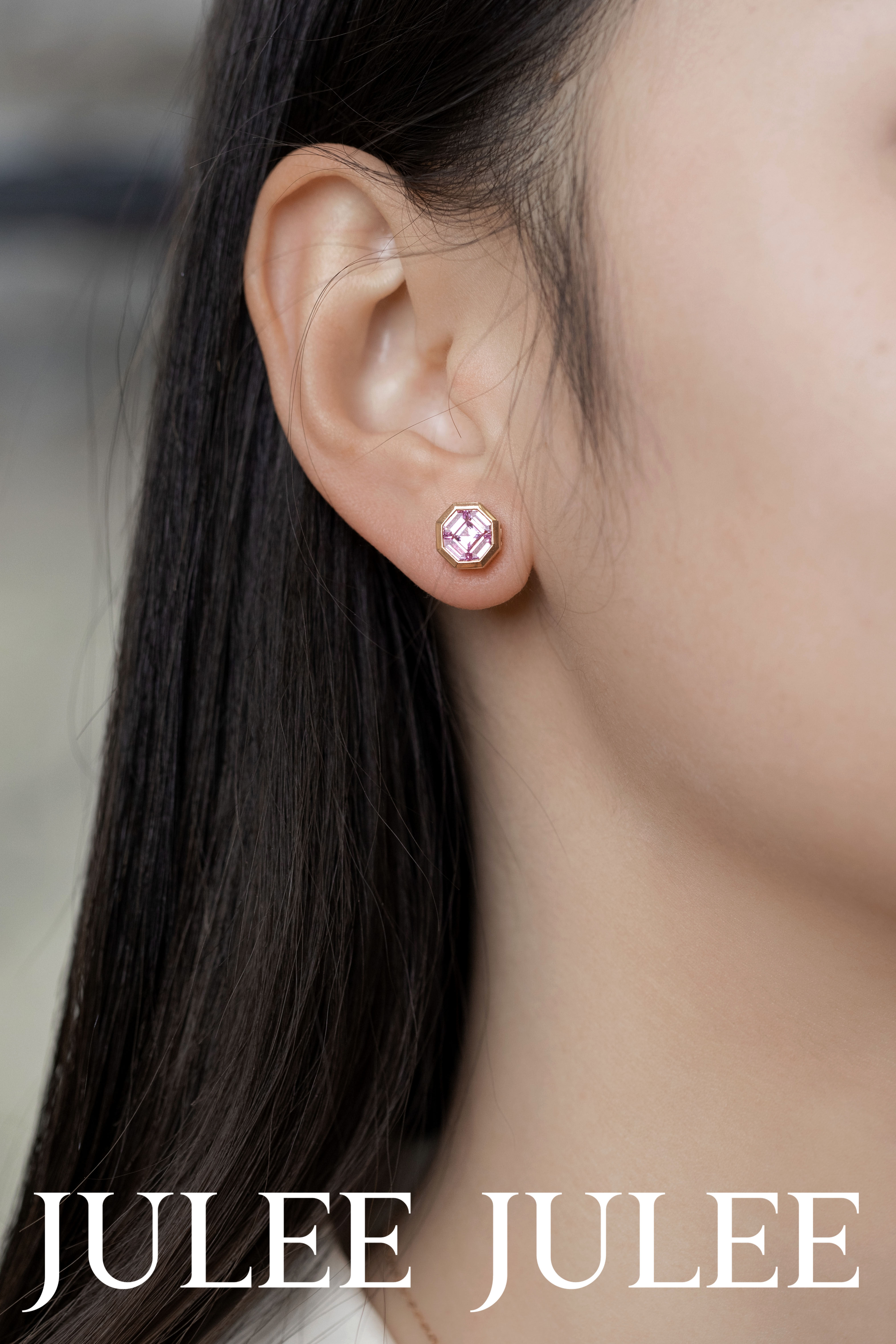 JULEE JULEE茱俪珠宝 18K玫瑰金精切粉蓝宝石耳饰