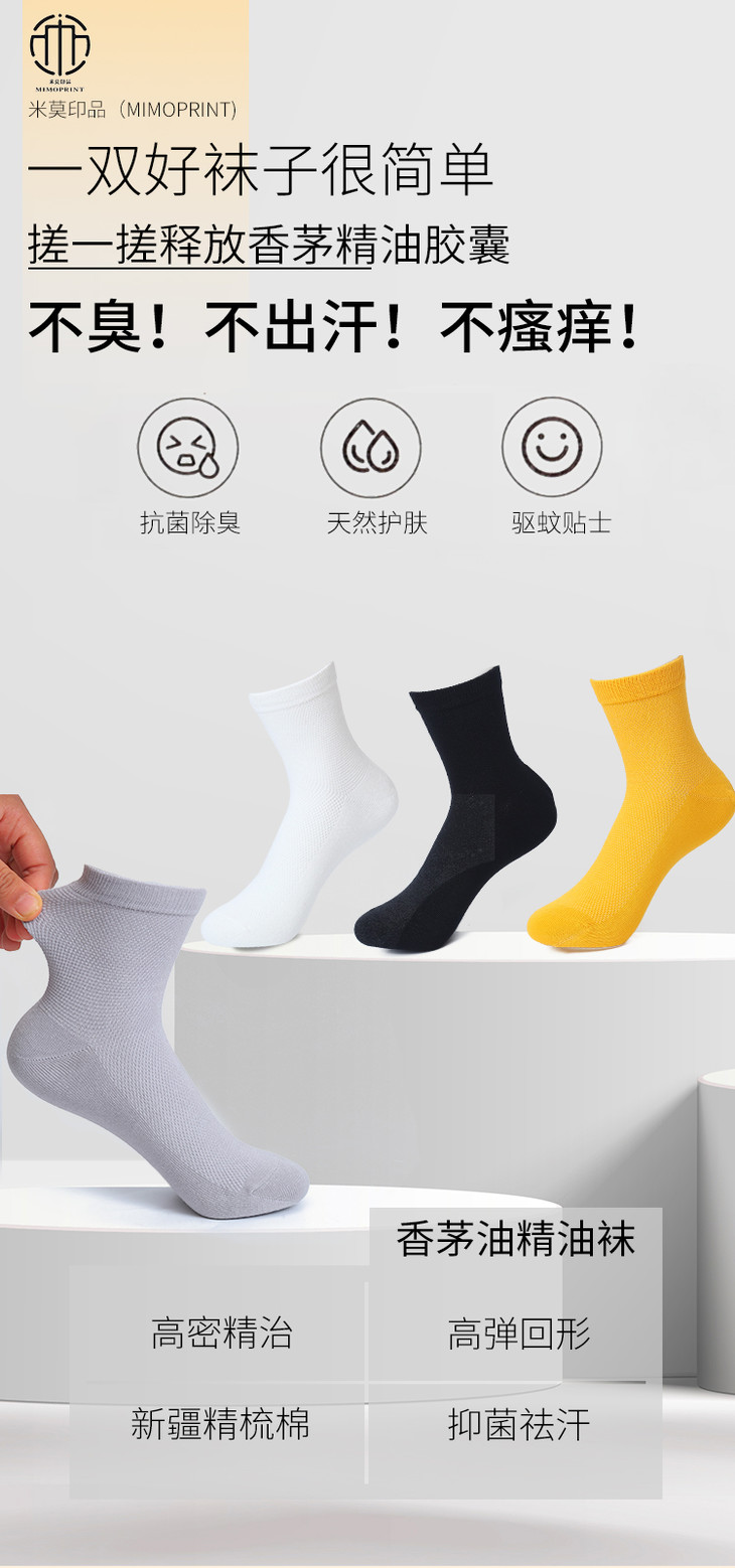 【黑科技专利精油袜】米莫印品香茅草除臭精油袜 专利消臭除臭 排汗透气 舒适柔软贴合持久回弹 时尚简约百搭莫兰迪色系 男女同款 精美礼盒装/5双