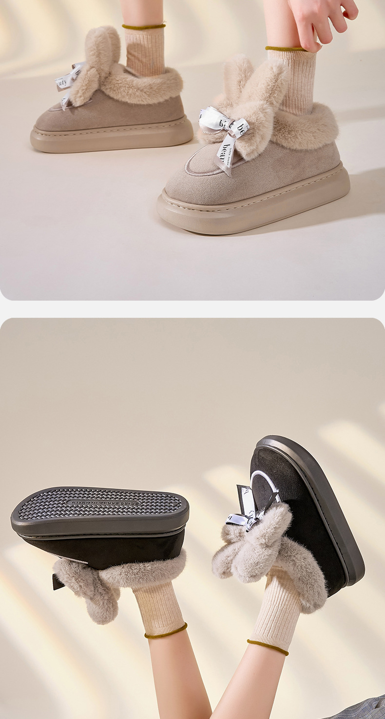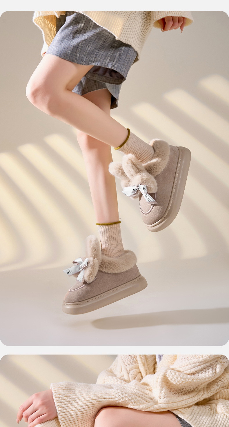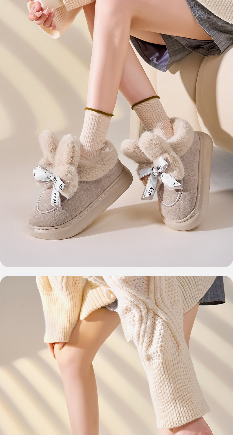 冬季【皮绒包跟棉拖鞋女】蝴蝶结毛绒棉鞋 加厚室内居家月子鞋