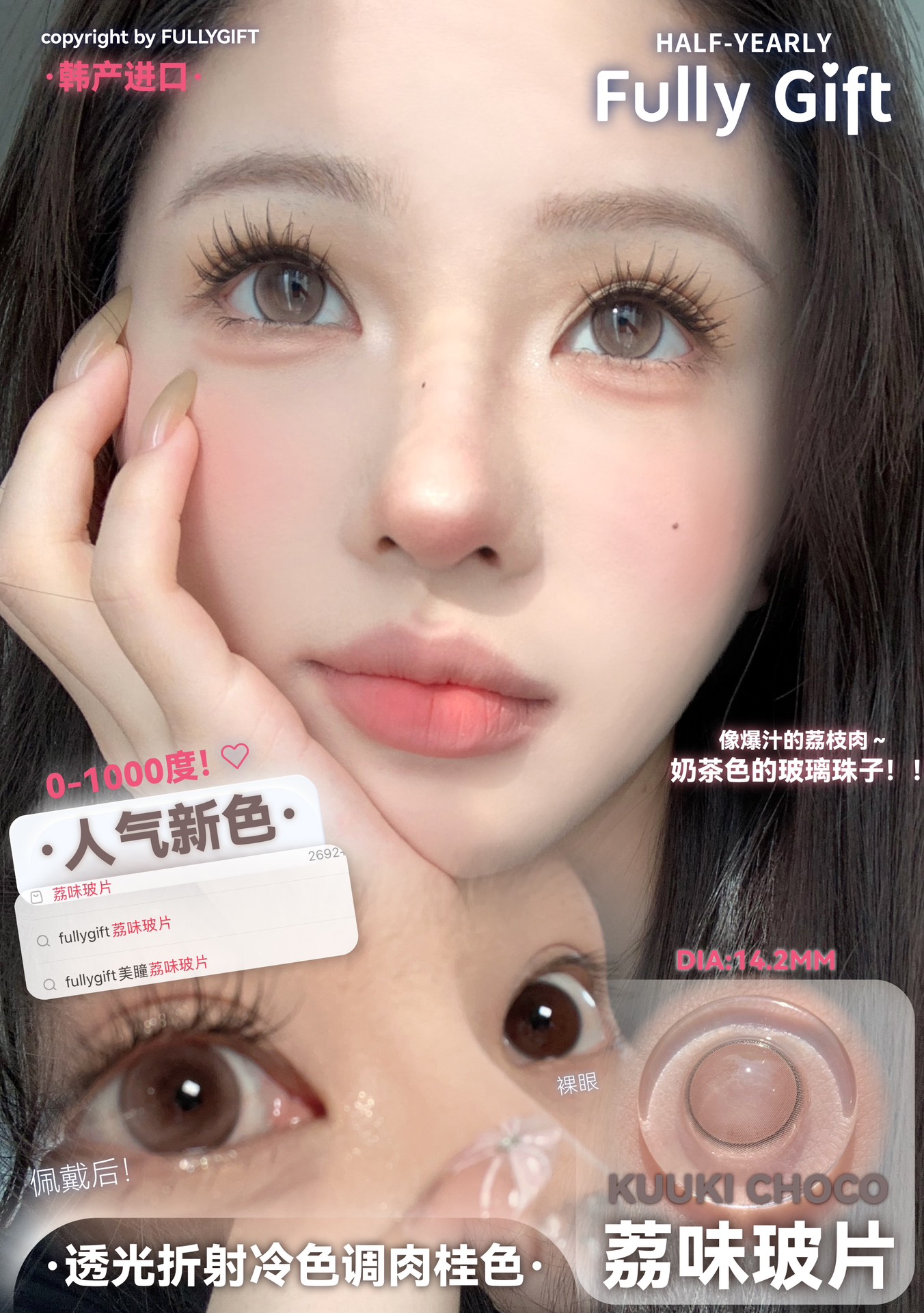 fullygift半年抛 热味像素 棕/冷味粒素 紫 /荔味玻片 巧粉 14.2mm