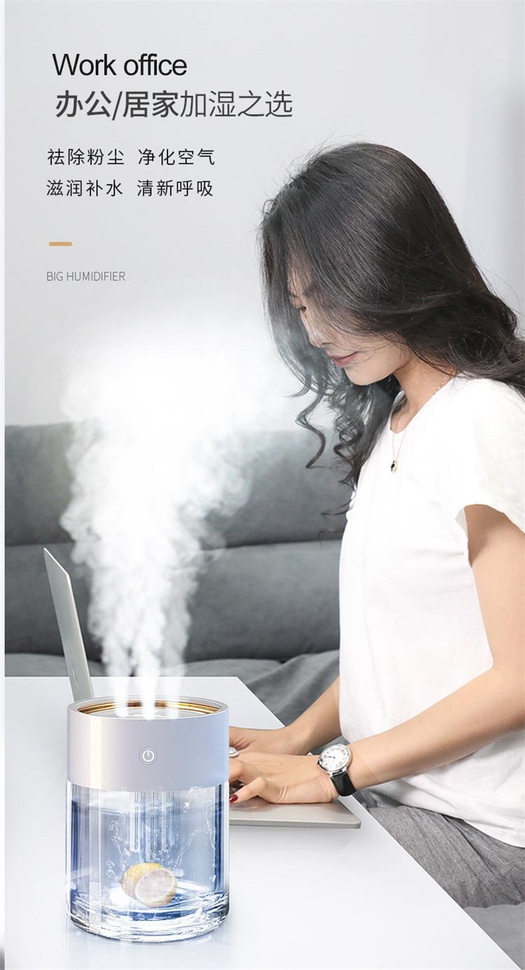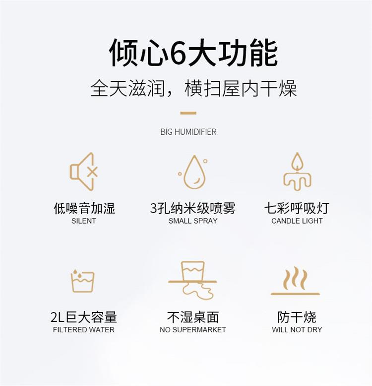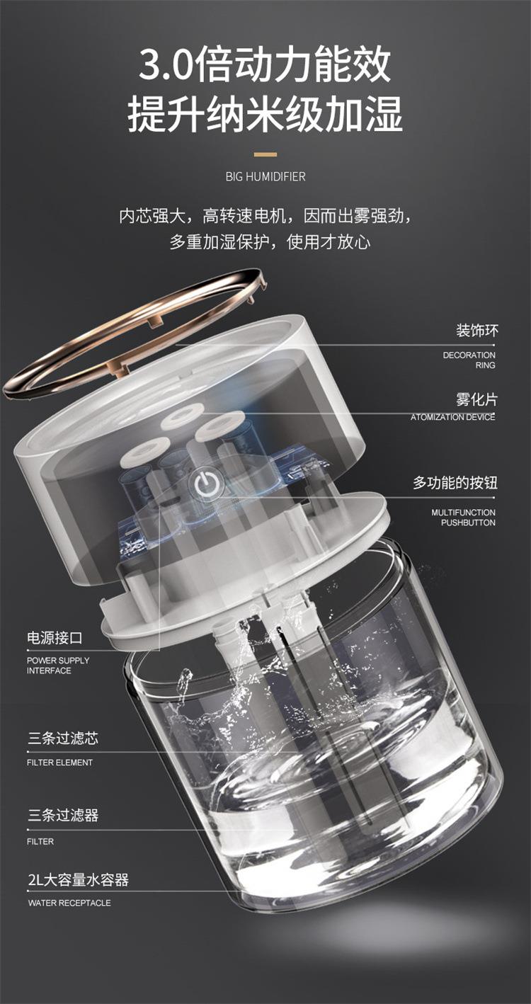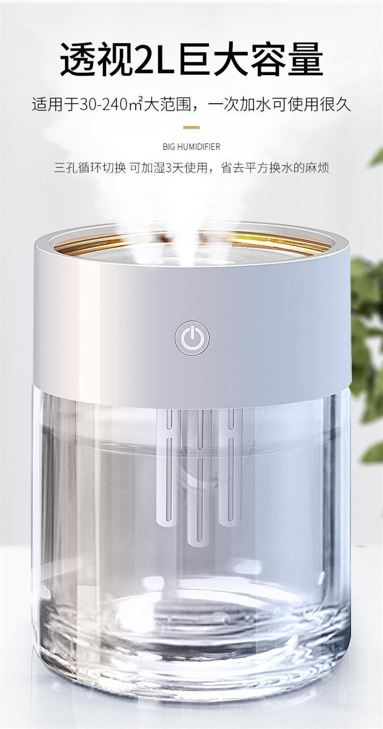 2021新款加湿器2L大容量喷雾补水USB三喷大雾量静音家用厂家代发