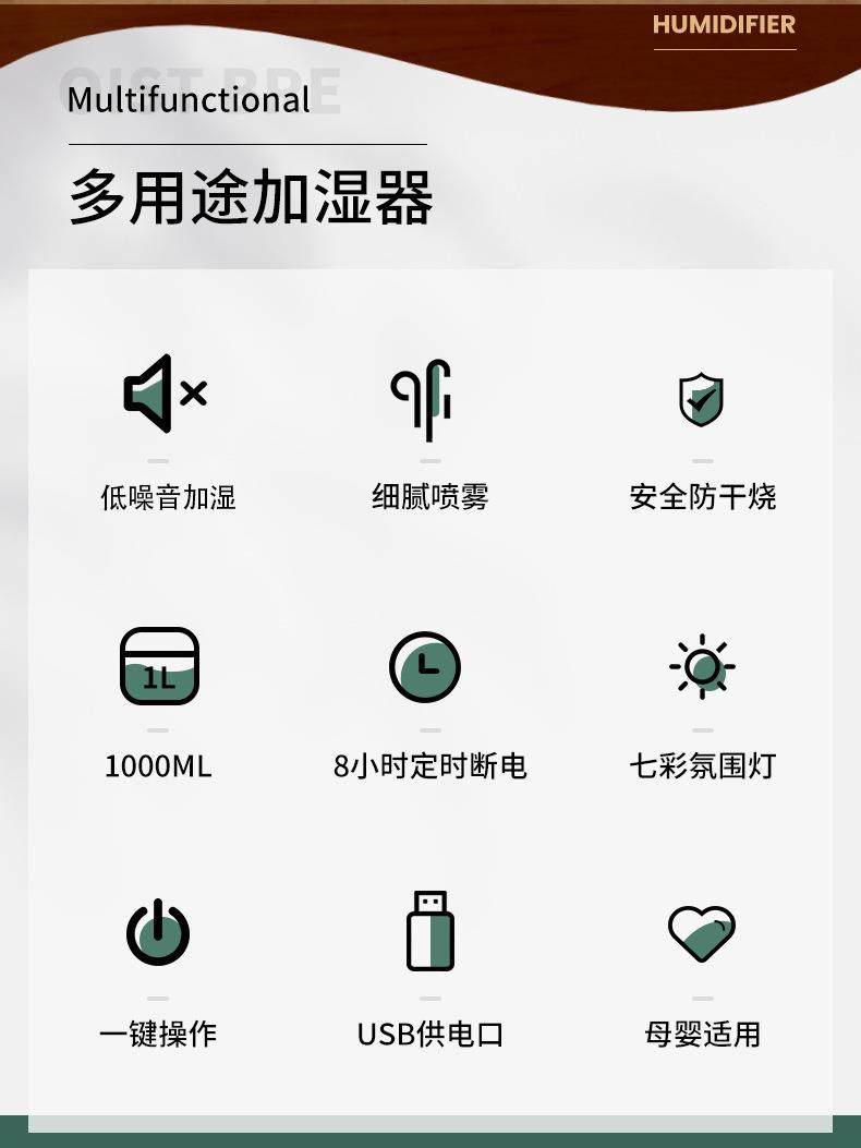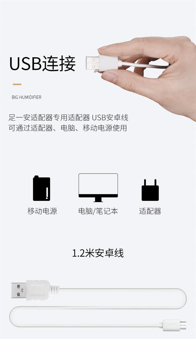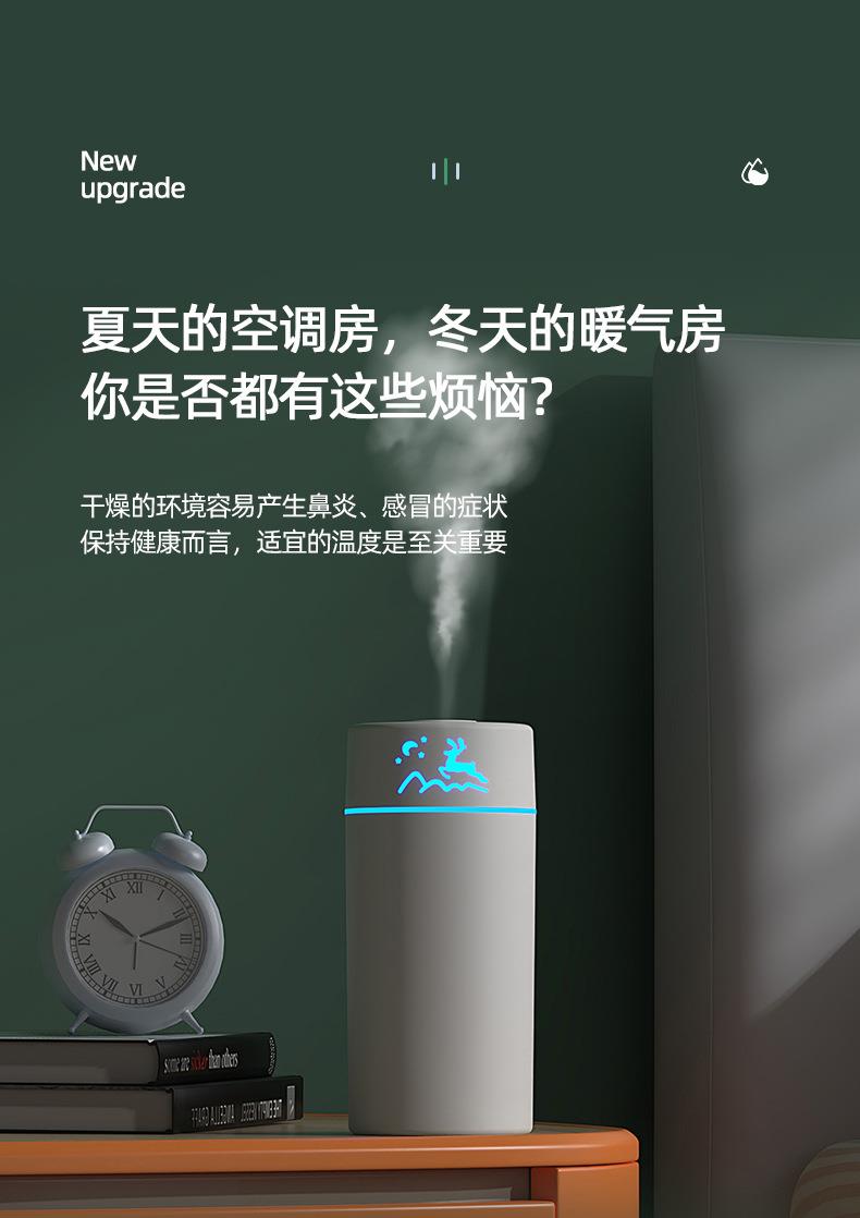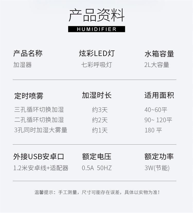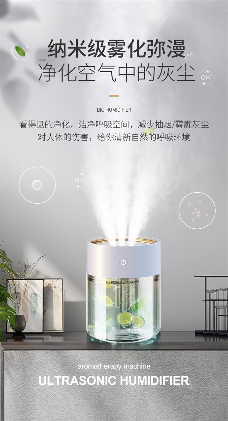 2021新款加湿器2L大容量喷雾补水USB三喷大雾量静音家用厂家代发