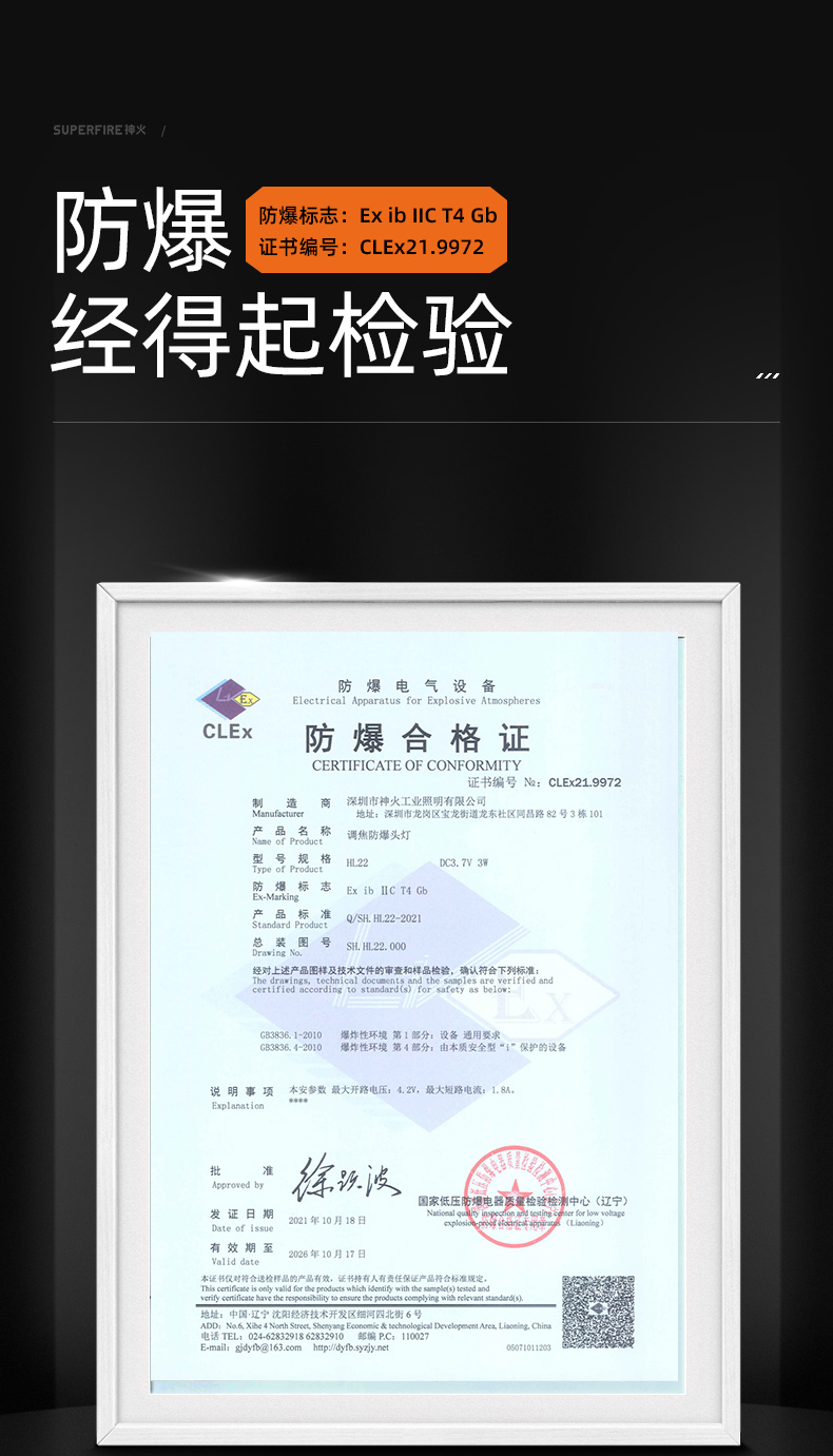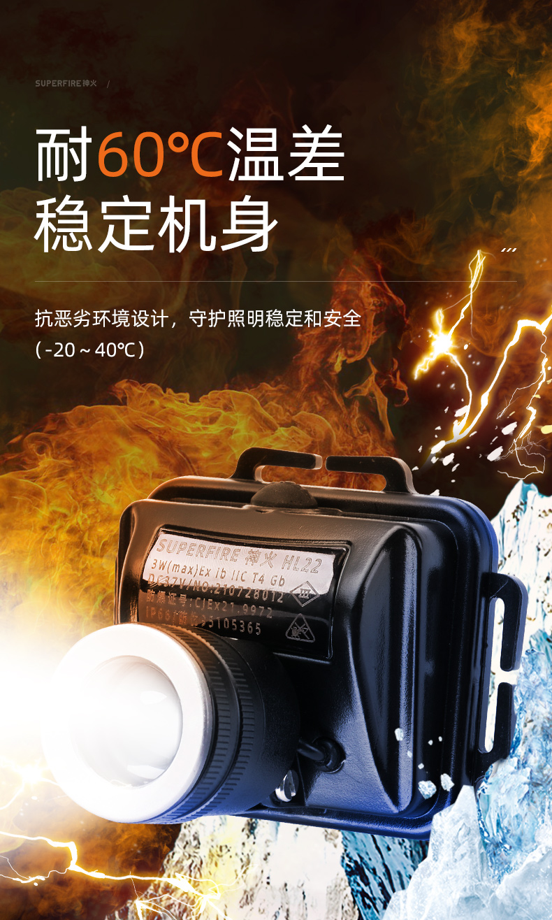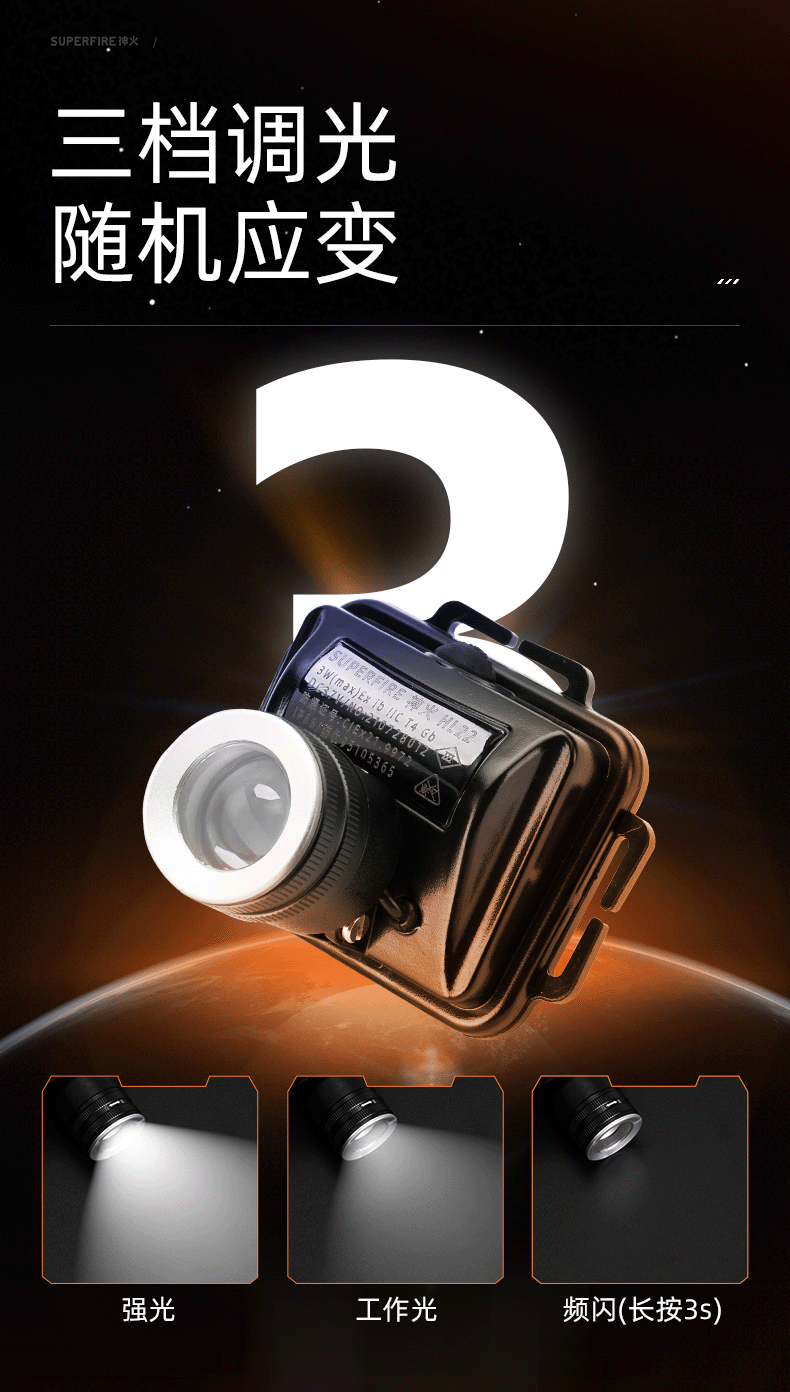SUPERFIRE神火HL22防爆头灯调焦强光远射户外探险消防工矿头戴式头灯
