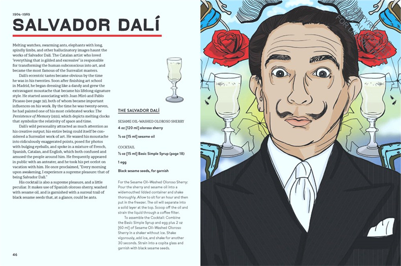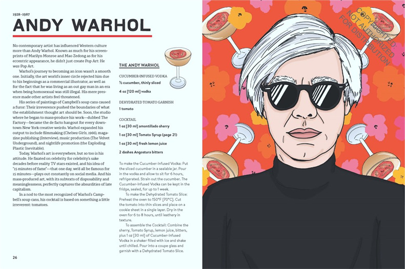 创造性和有趣的食谱:这些食谱中的每一个都以丰富多彩的方式借鉴了艺术家的生活和工作元素,任何鸡尾酒爱好者都会喜欢;想想安迪·沃霍尔的西红柿装饰物、古斯塔夫·克里姆特的金色姜黄和乔治亚·奥基夫的鲜花糖浆。