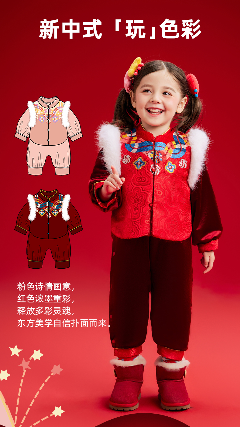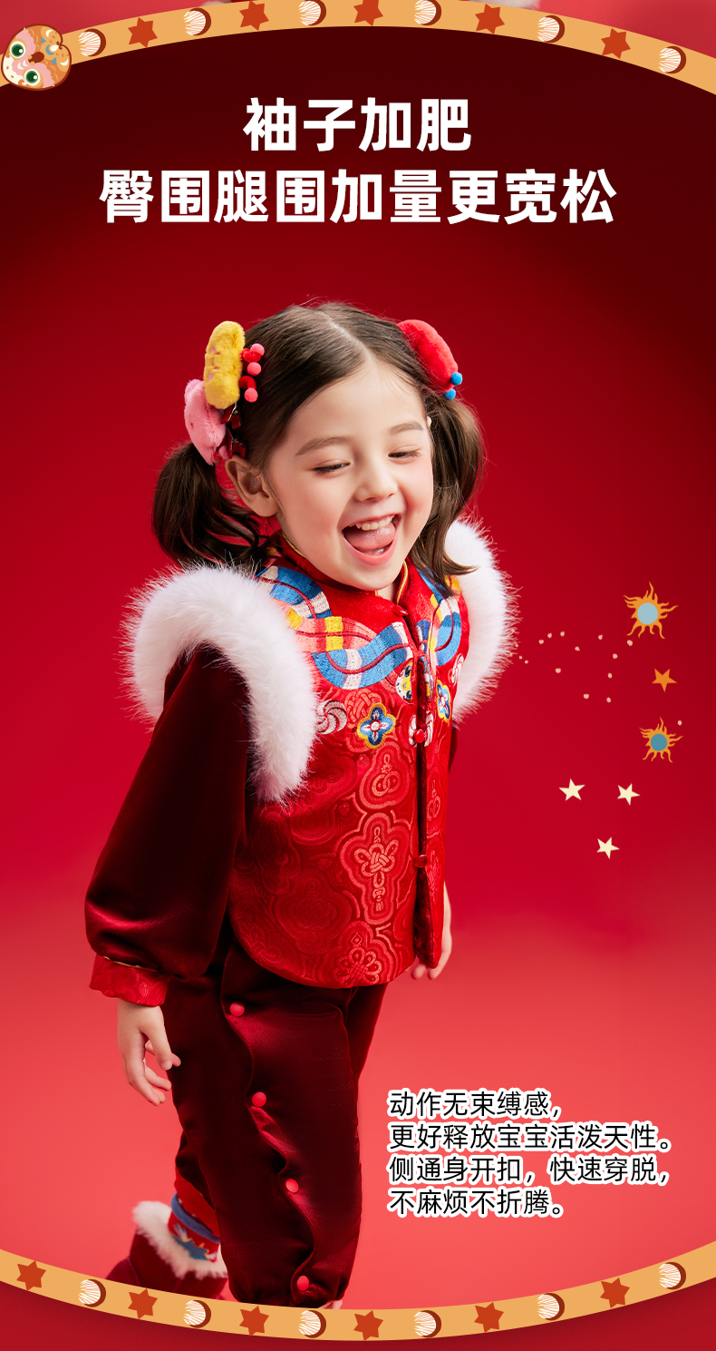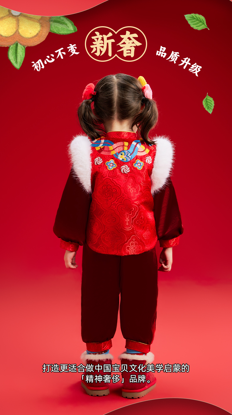 【品牌优选】年衣童装儿童哈衣爬服2024冬款宝宝新年装男女童中式唐装连体衣套装蛇来运转婴童套装