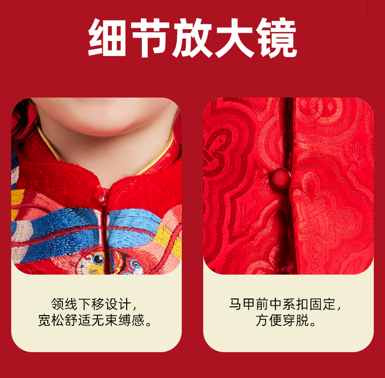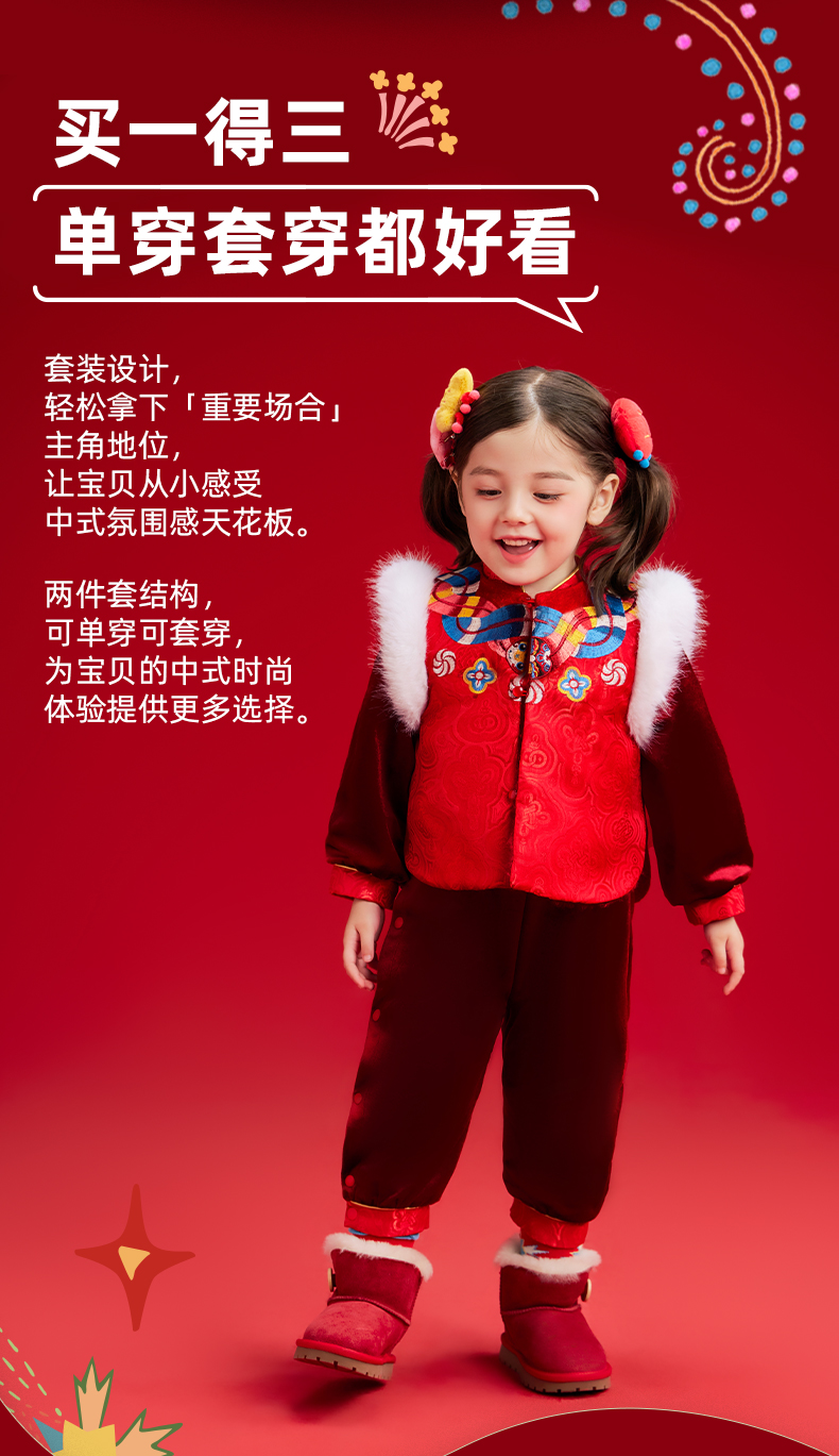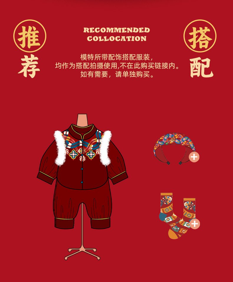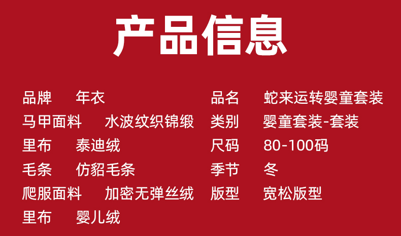 【品牌优选】年衣童装儿童哈衣爬服2024冬款宝宝新年装男女童中式唐装连体衣套装蛇来运转婴童套装
