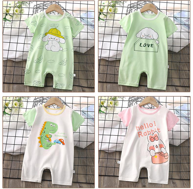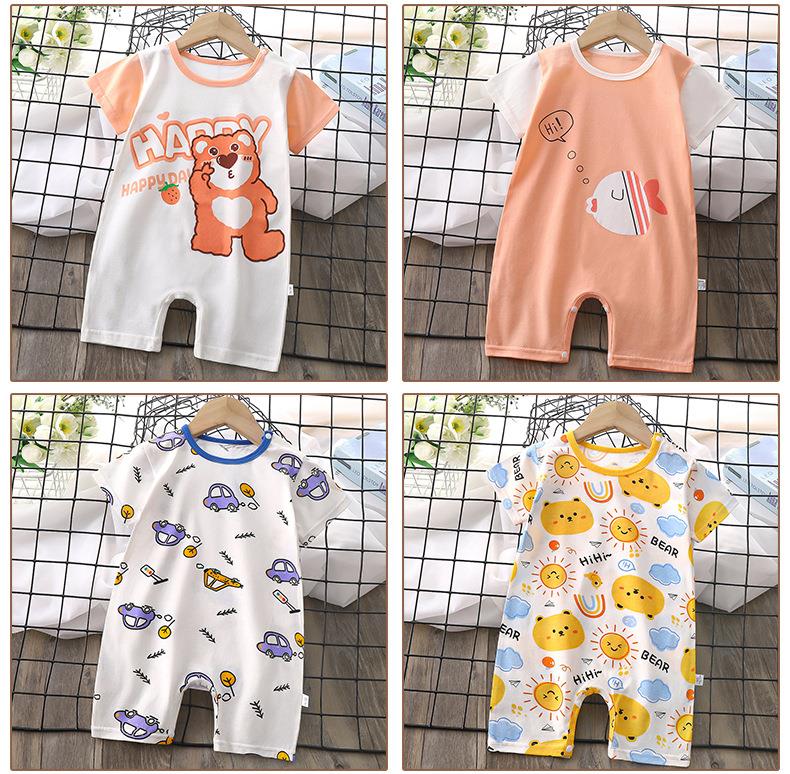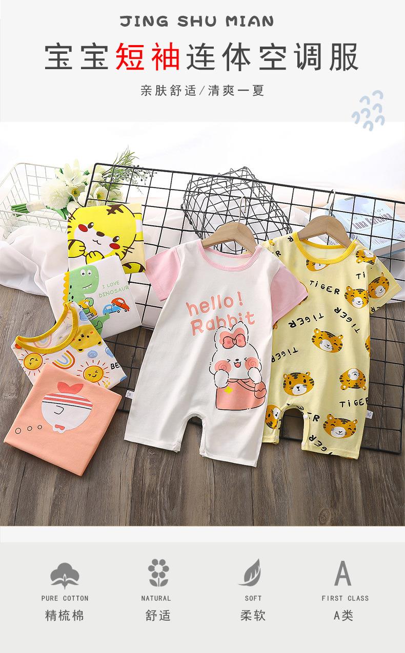 2023婴幼儿爬服纯棉夏季新款韩版男宝宝薄款女短袖儿童连体衣哈衣