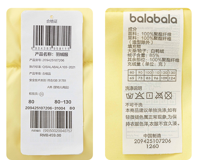 巴拉巴拉宝宝羽绒服男童外套女童秋冬装2025新款婴儿衣服动物造型