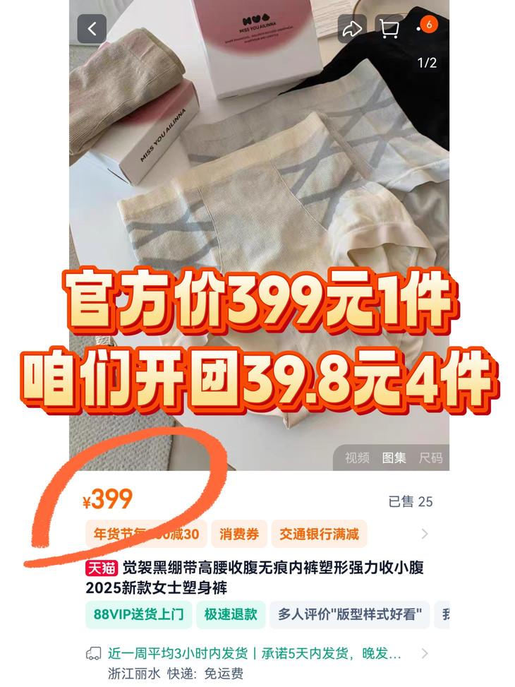官方售价💰399元一条‼️‼️ 但现在咱们开团价 💰39.8买三送一,到手4条‼️‼️直接省大钱啦👏👏 一条=内裤+收腹裤+提臀裤+安全裤 两杯奶茶钱换一副好身材!! 80-160斤都能穿🥹🥹