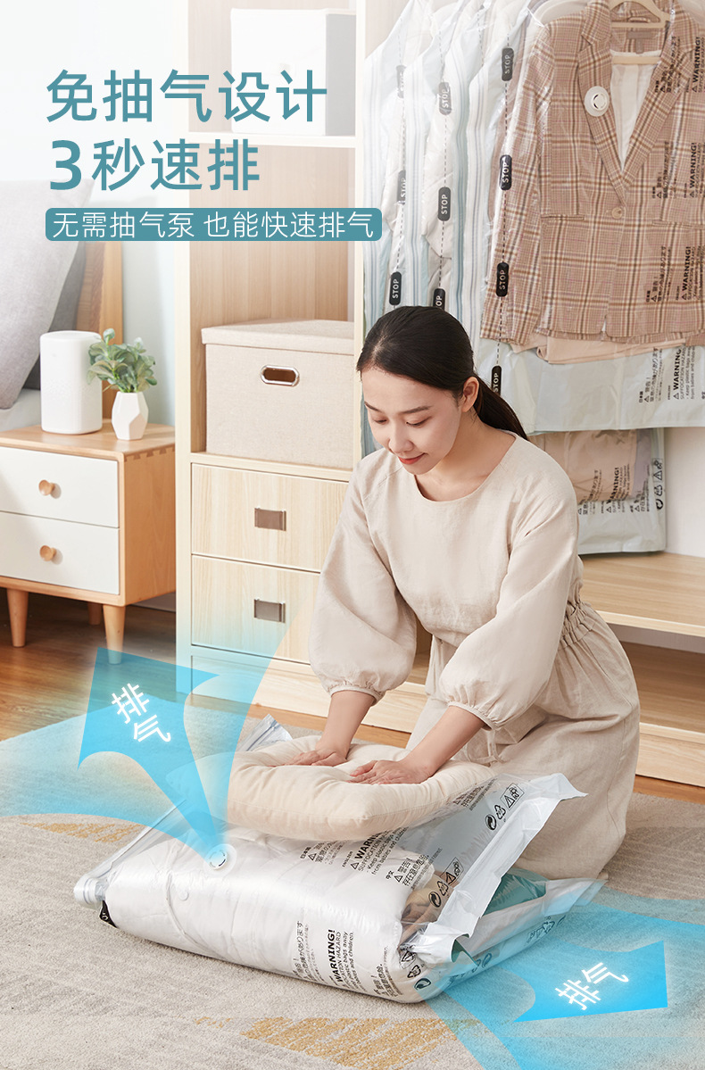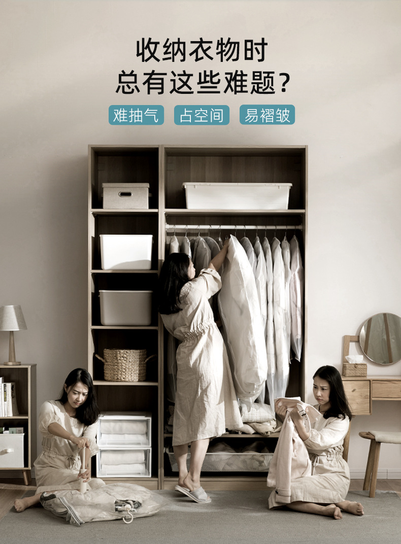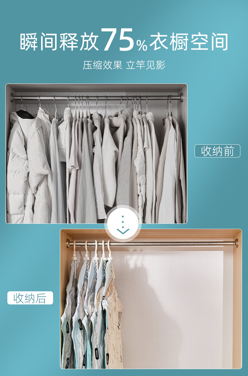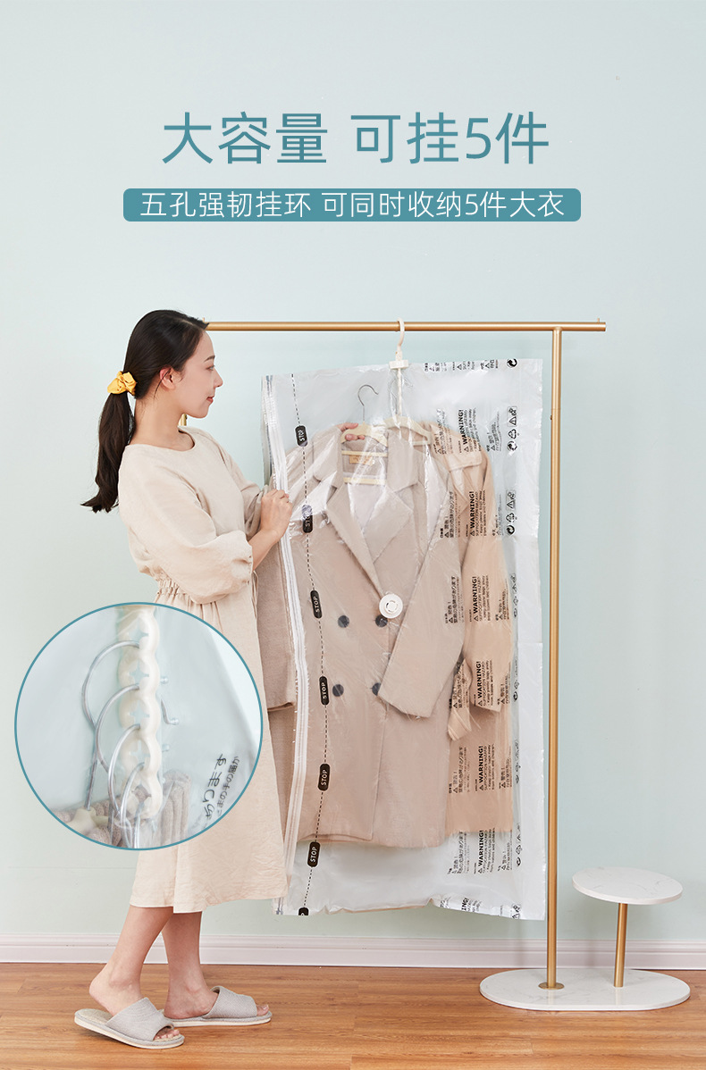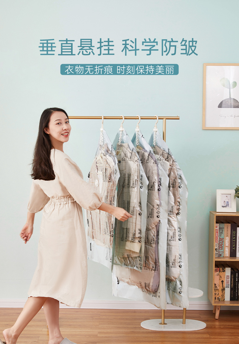太力衣挂式真空压缩袋免抽气极光绿防尘罩悬挂大衣羽绒服收纳袋