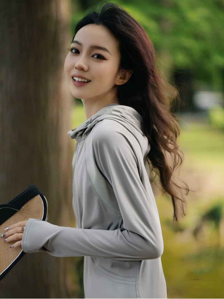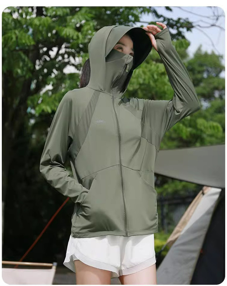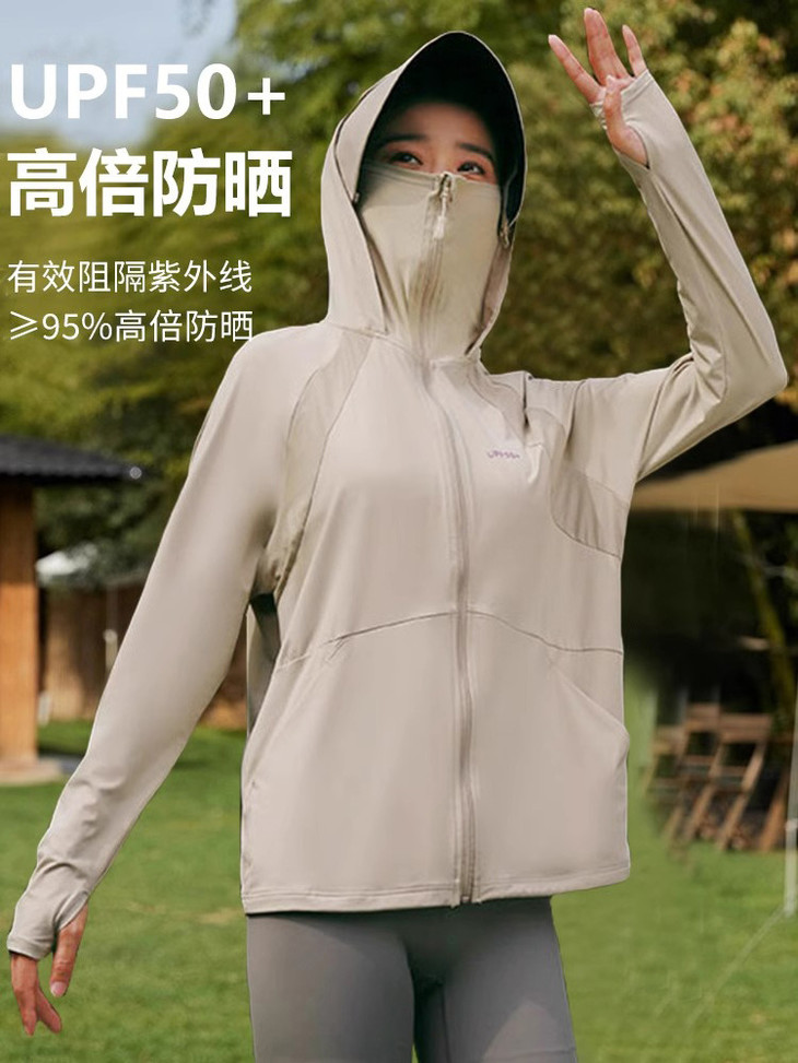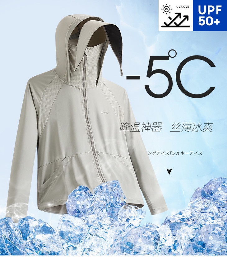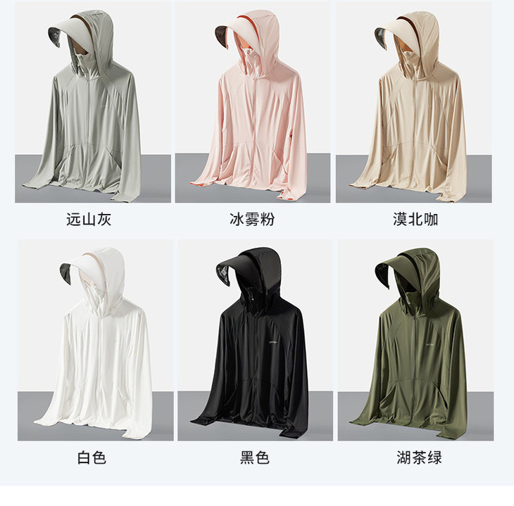 今天介绍一款凉感透气、丝滑亲肤、防护到位的防晒衣 在款式上,也是为了防晒而精心考虑 连帽+面罩+长袖指套的设计,一件顶6件