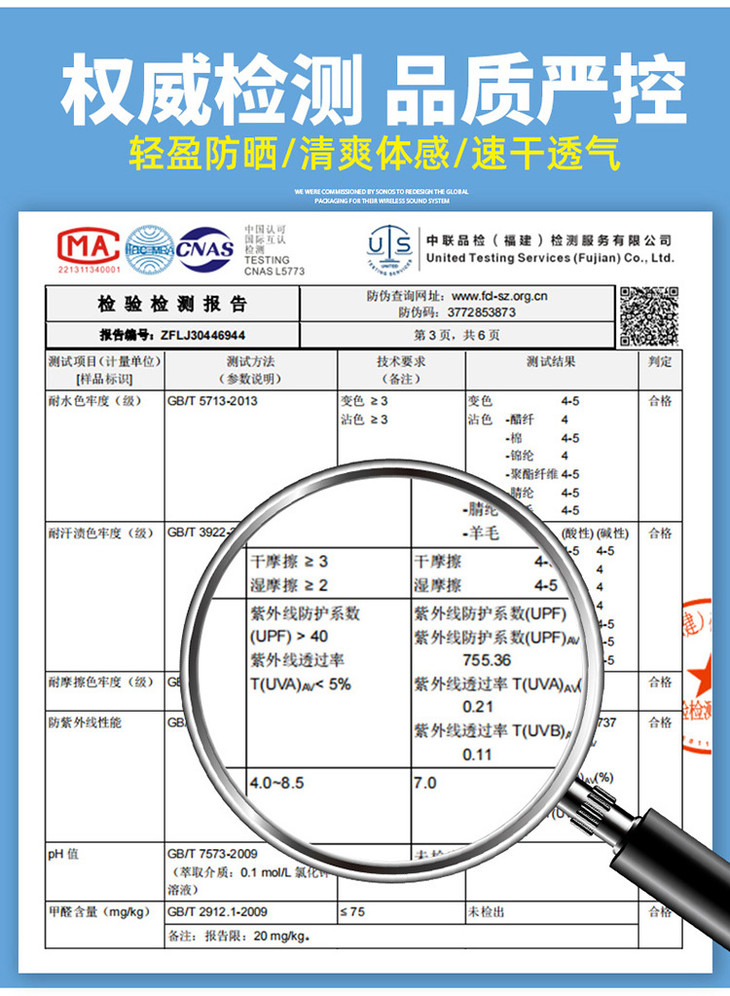 可以看到防晒衣真正的防晒效果‼ 还有官方权威质检出来质检报告放心购买