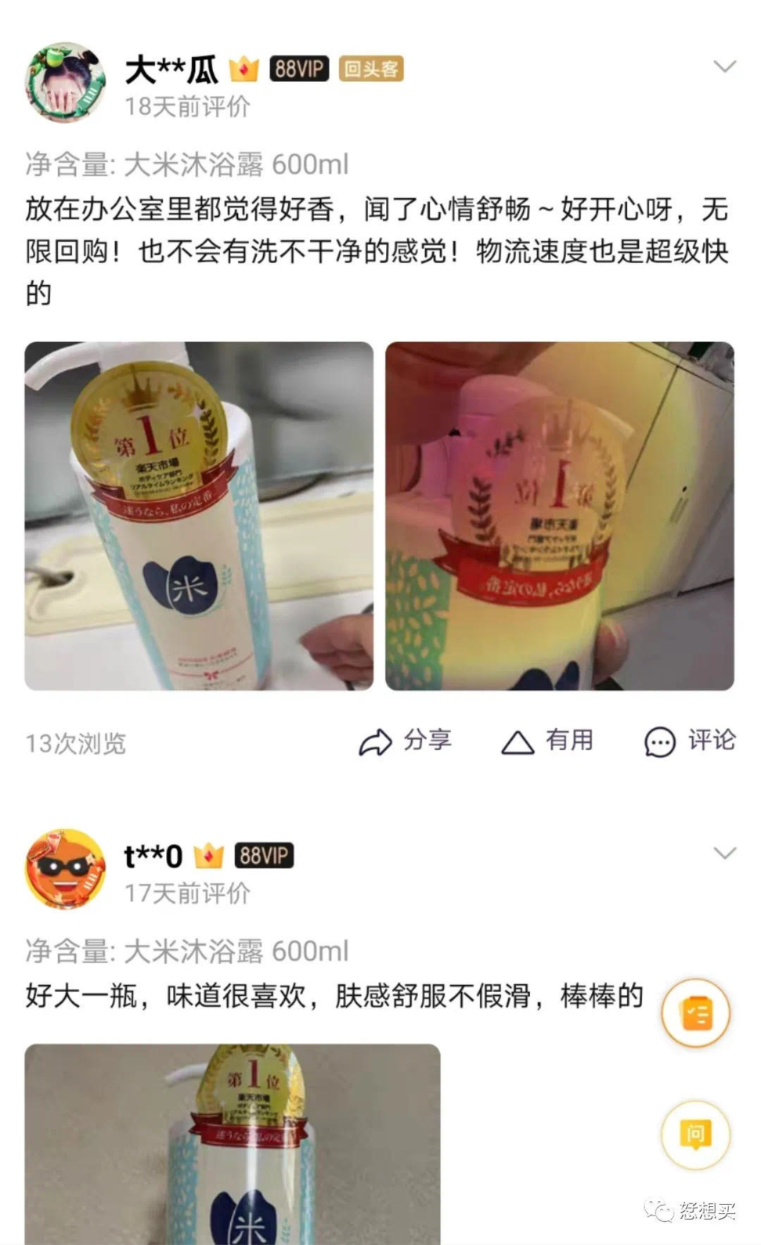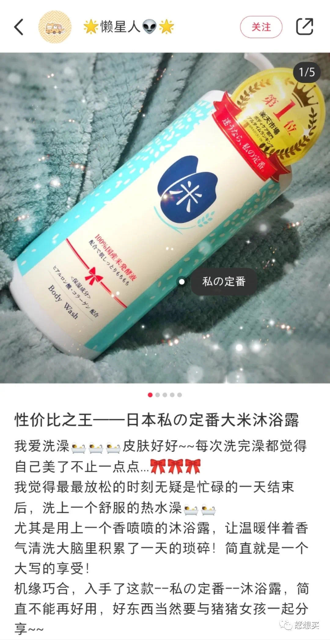 没听说过私の定番大米沐浴露‼️