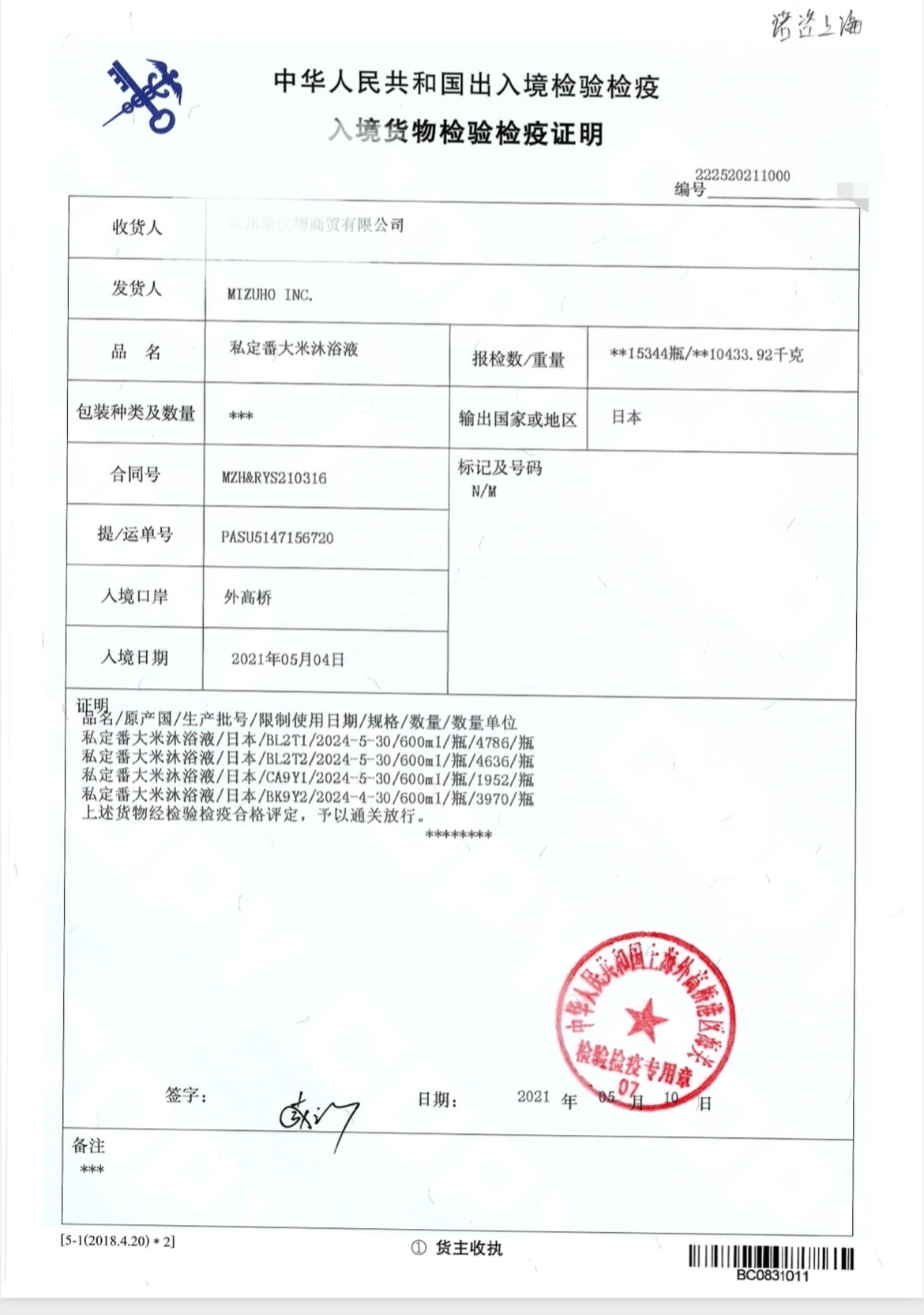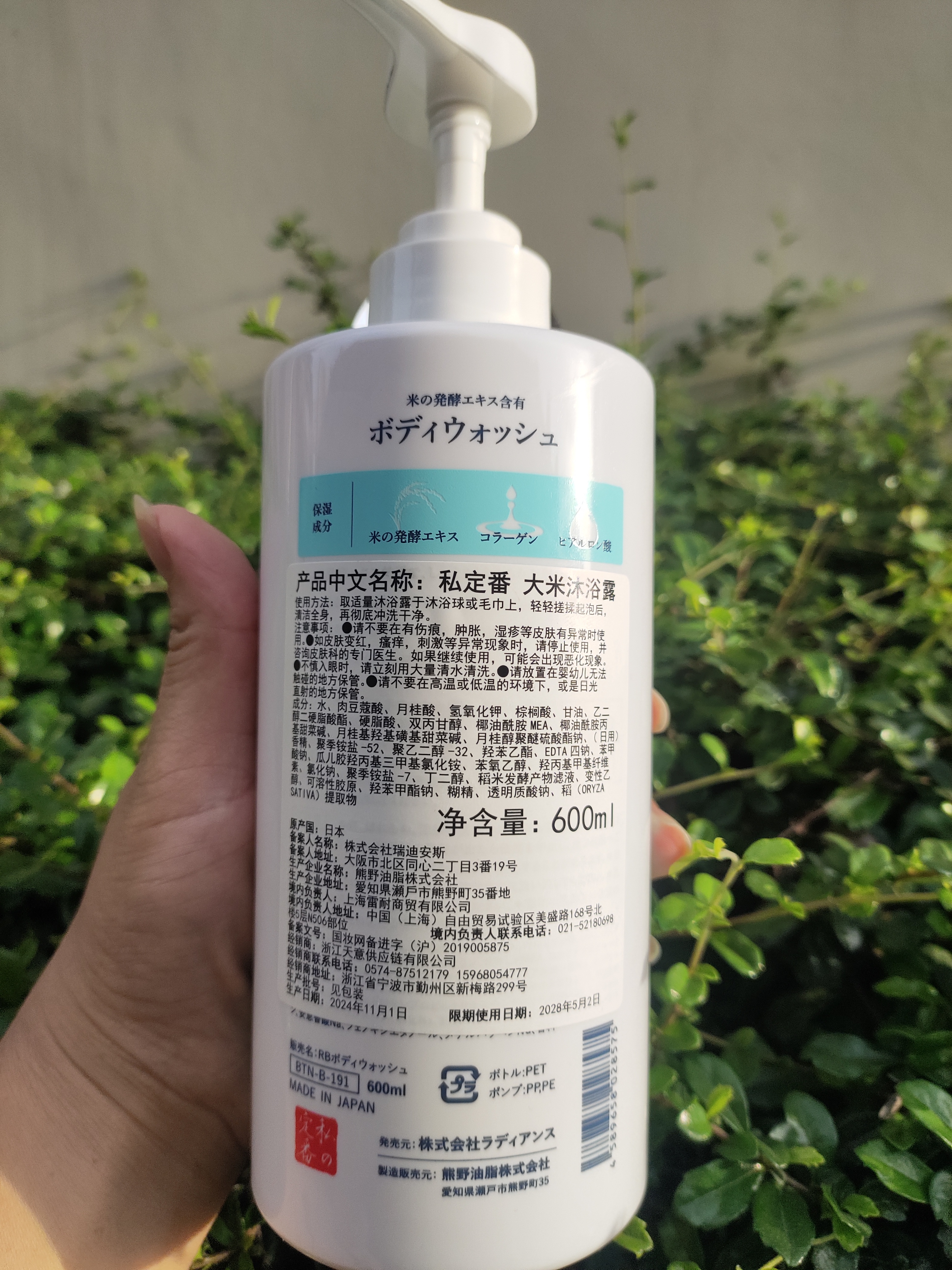 【产品名称】大米沐浴露600ml
