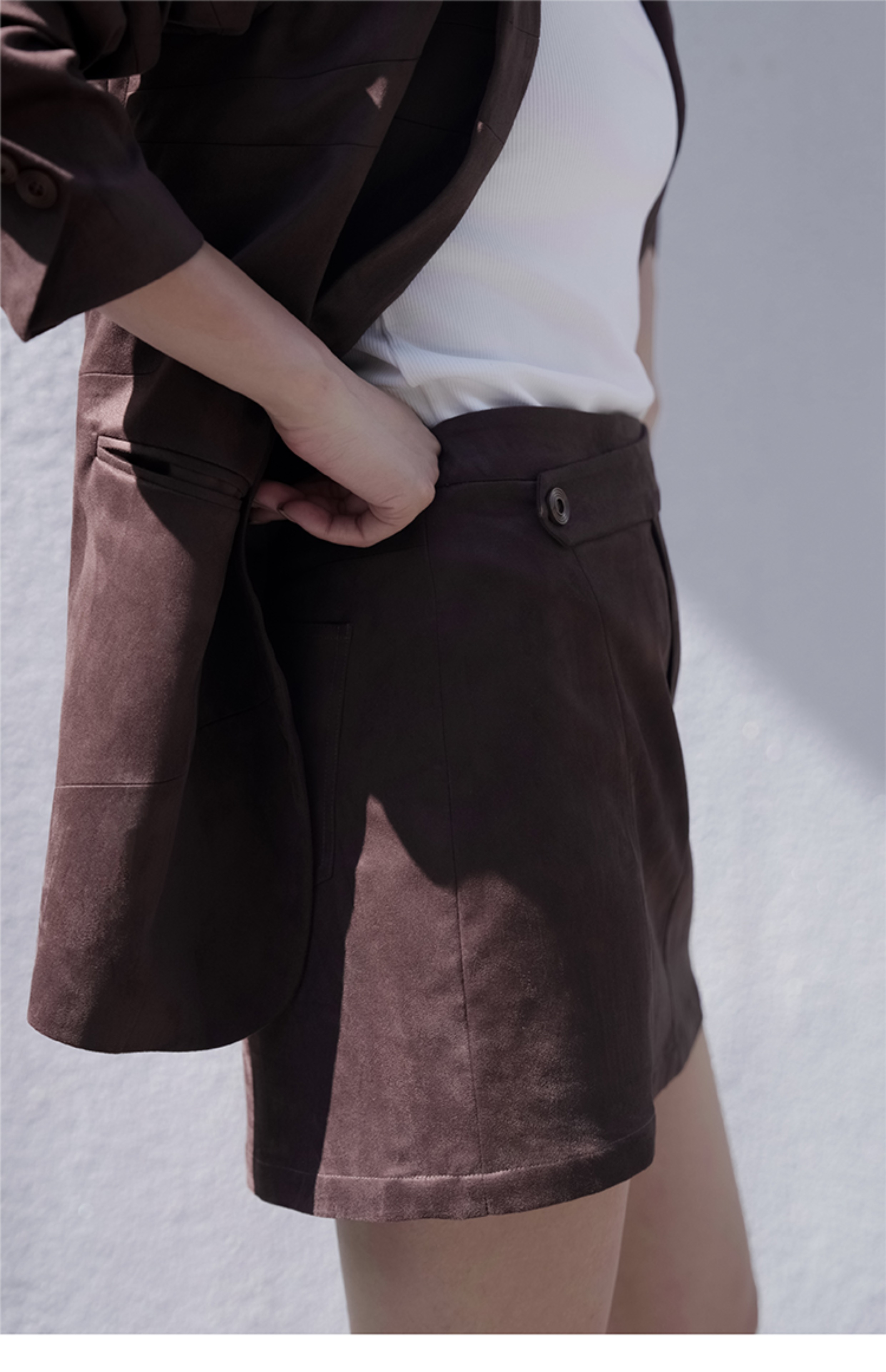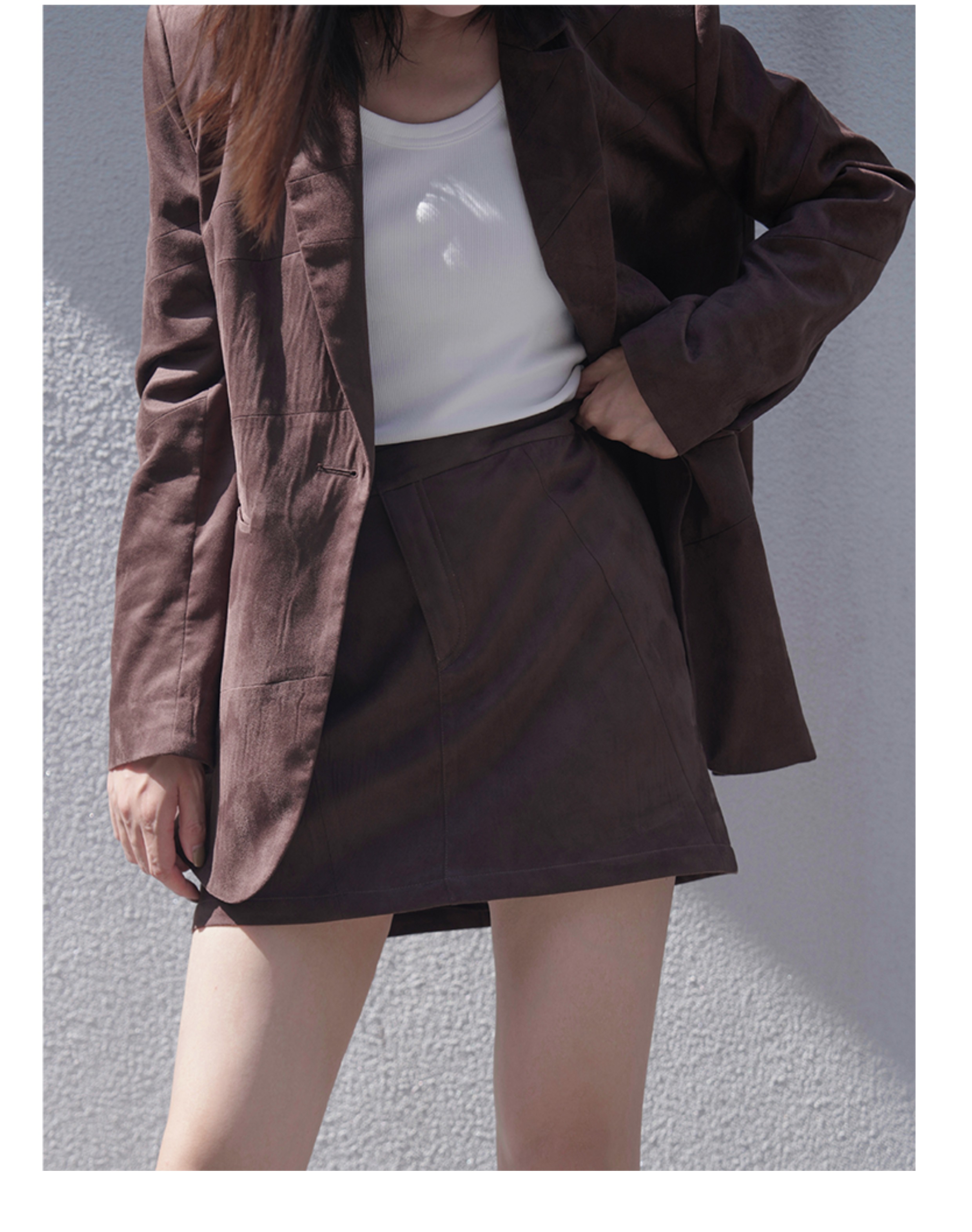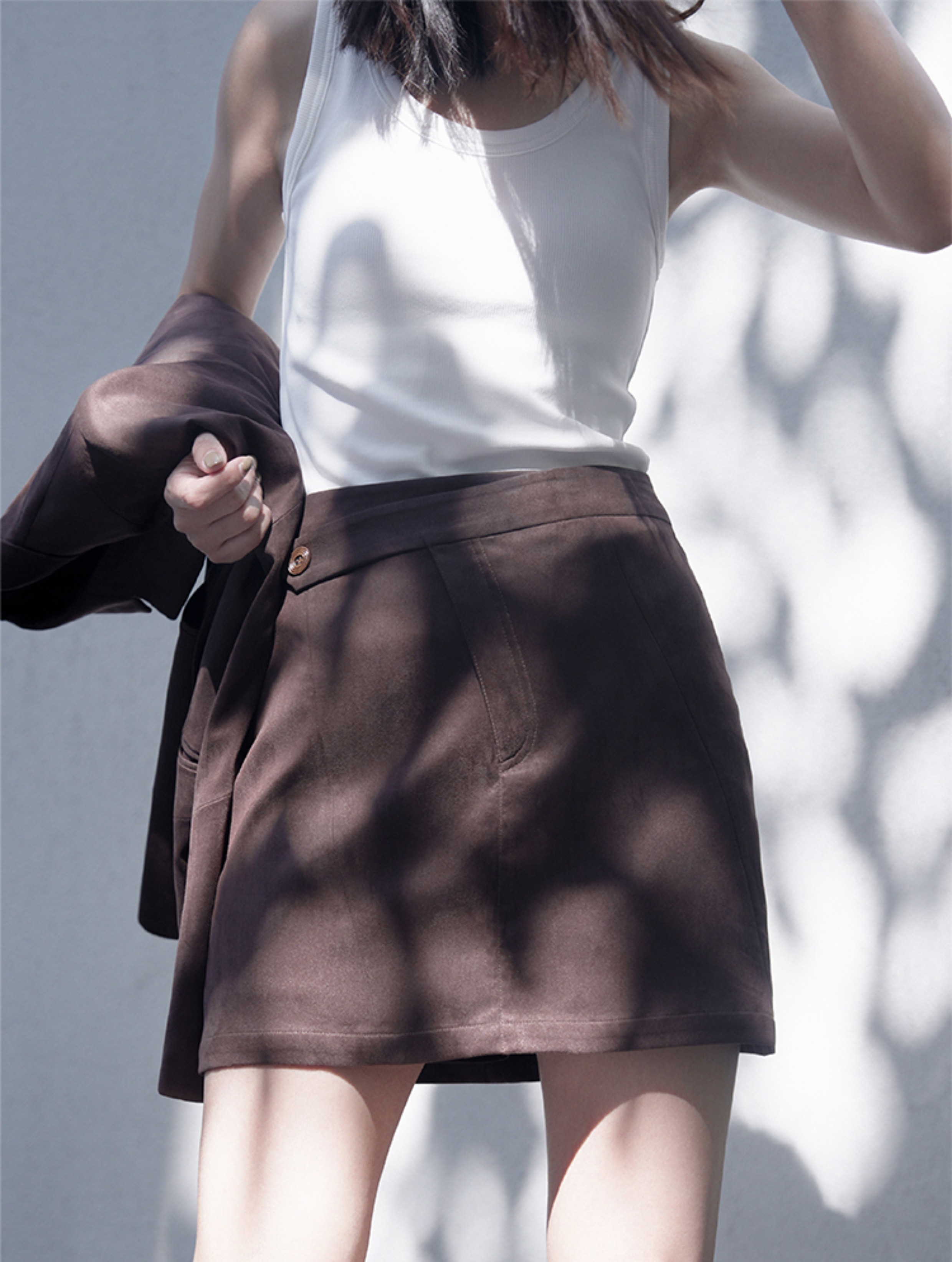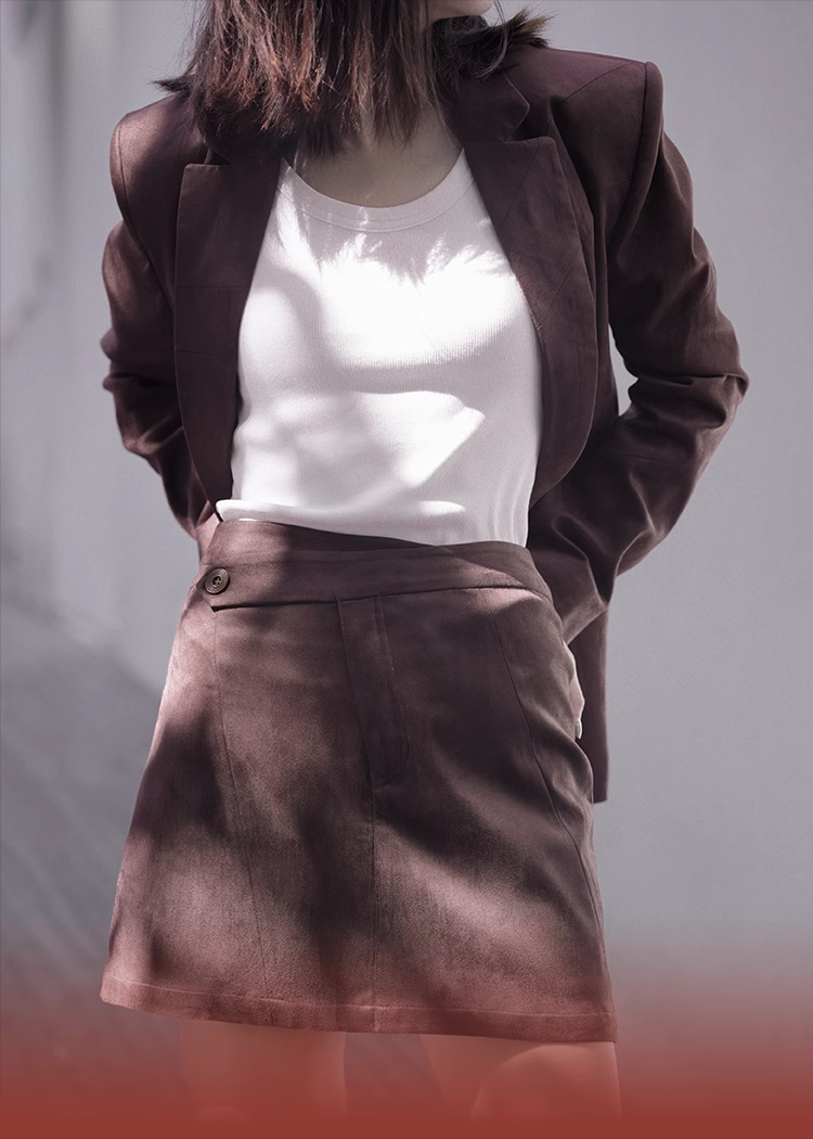 LIYIHAN 进口面料24冬新款麂皮不规则结构短款A字半裙高级设计感