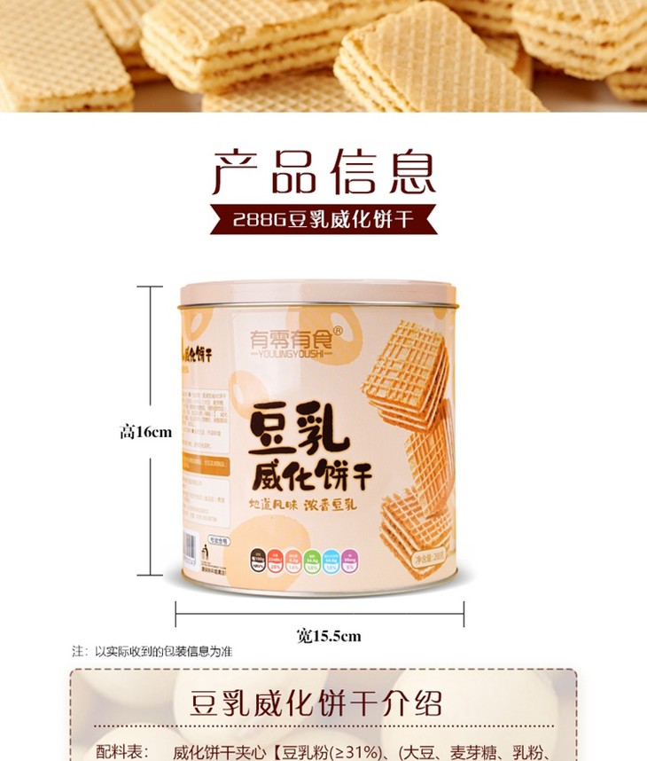 【有零有食】豆乳威化 288g/罐(产地直发)