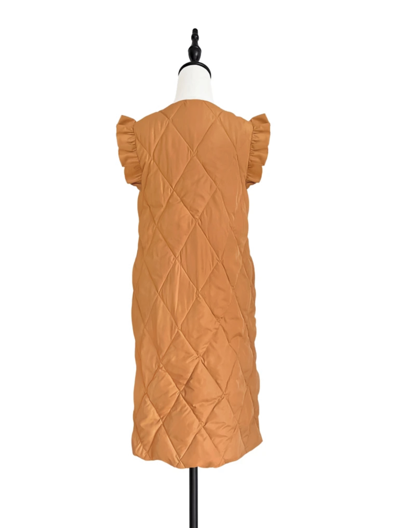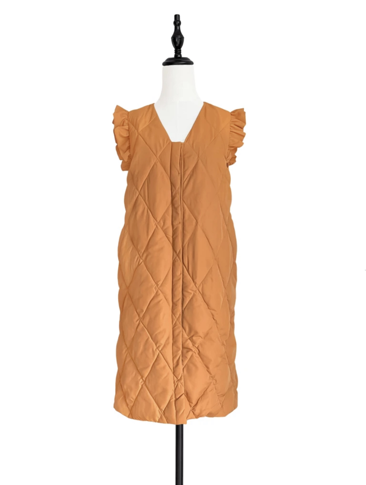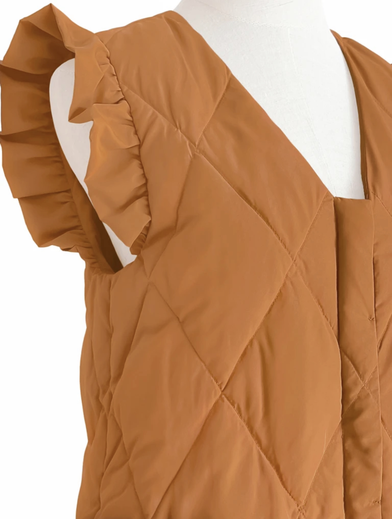 TYNVIE 木耳边饰肩鹅绒长背心-橙色