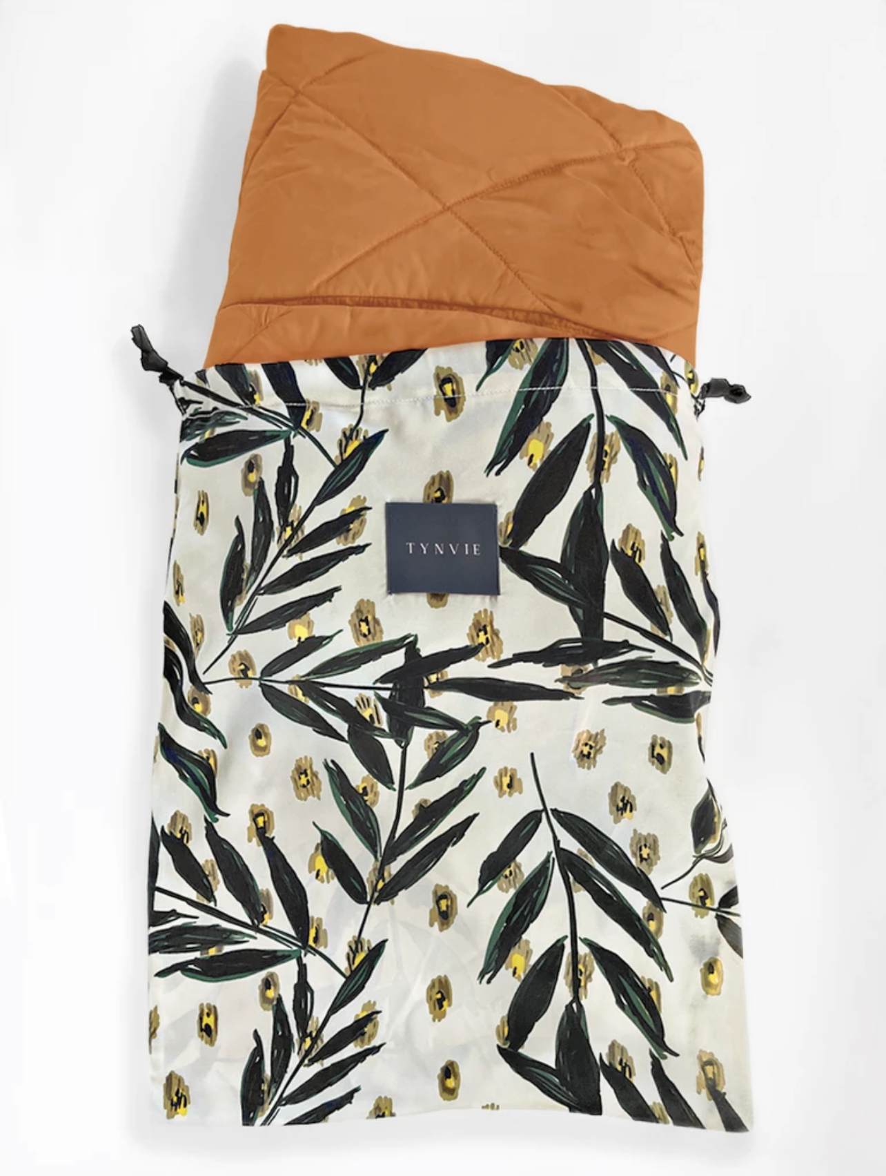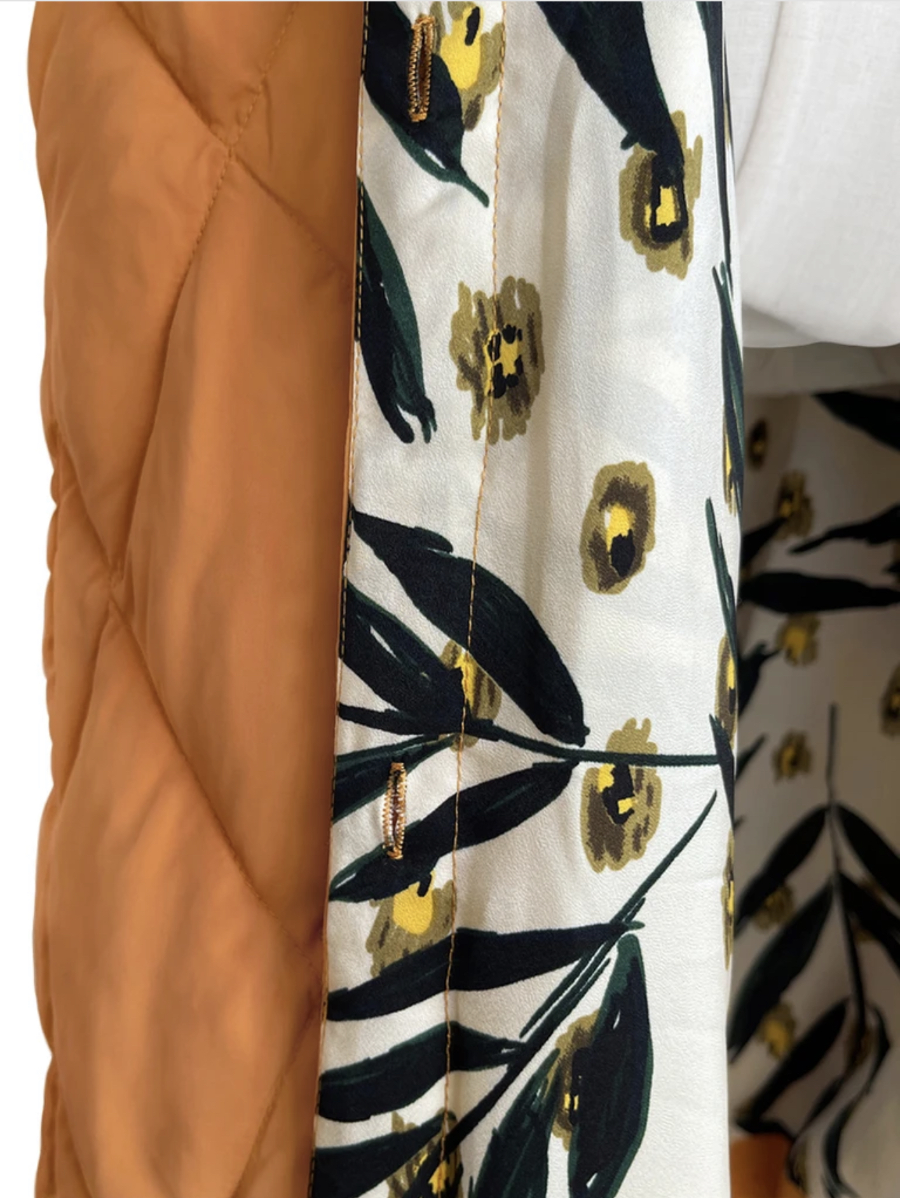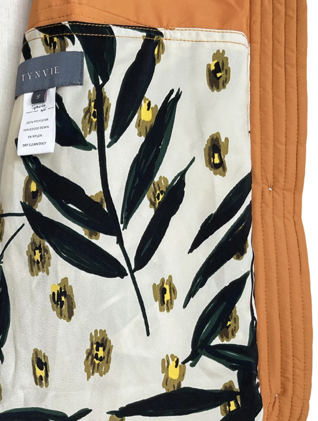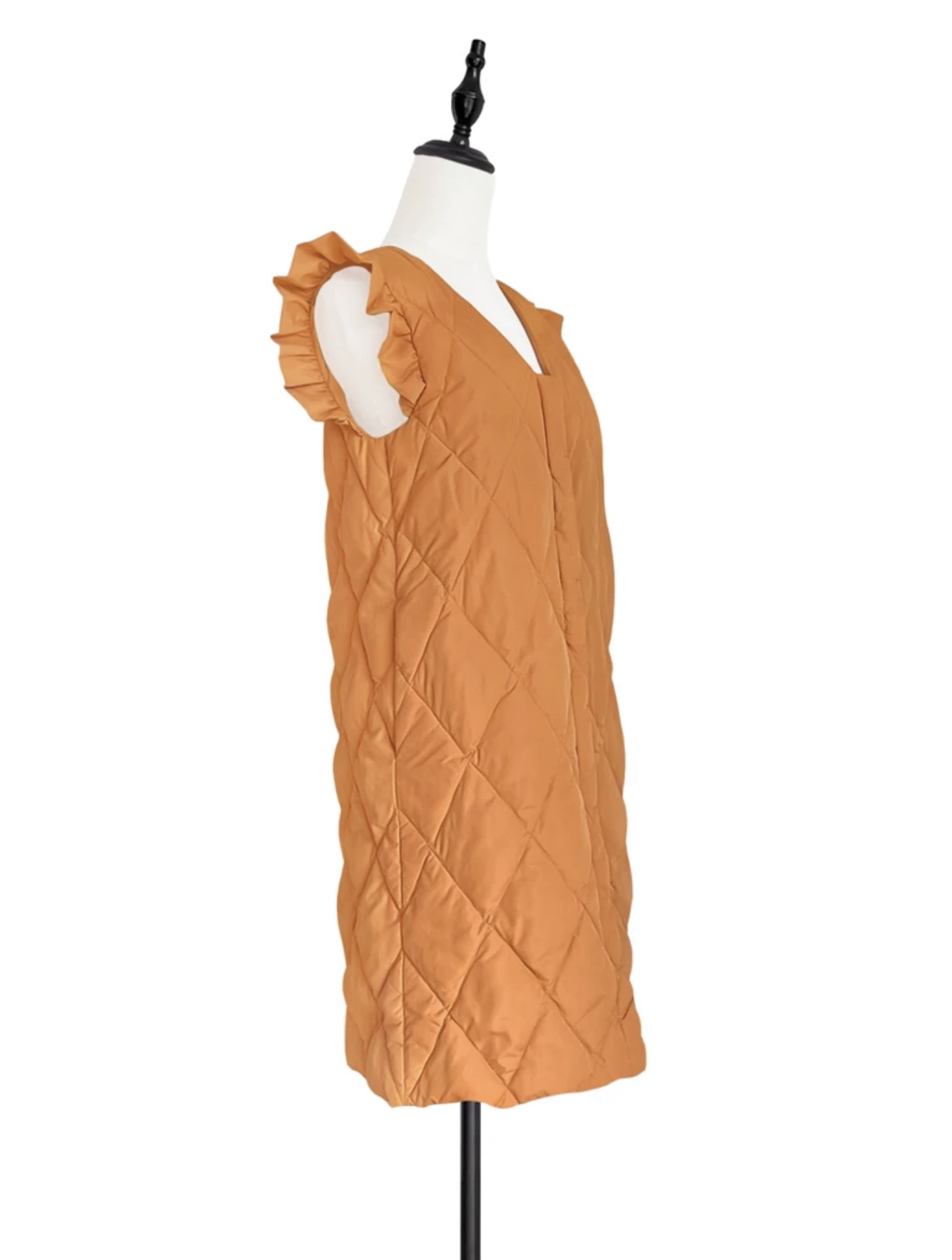 TYNVIE 木耳边饰肩鹅绒长背心-橙色