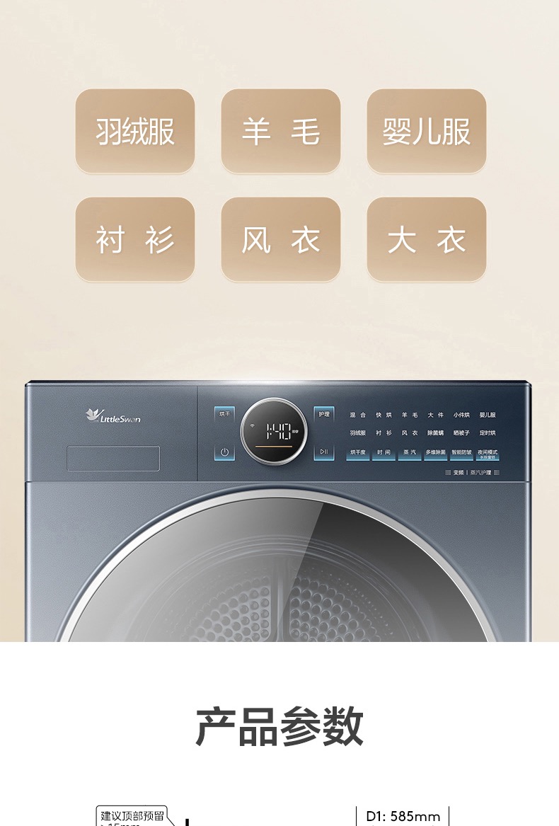 小天鹅(252214)干衣机 TH10-H88Z 干衣护理机 瑾瑜蓝 220V,1Ph 50Hz