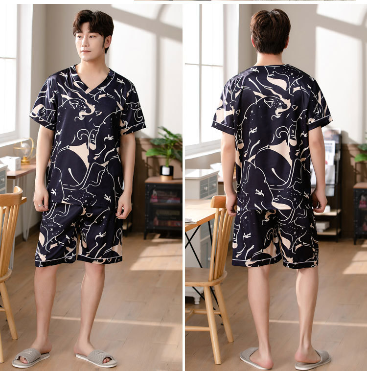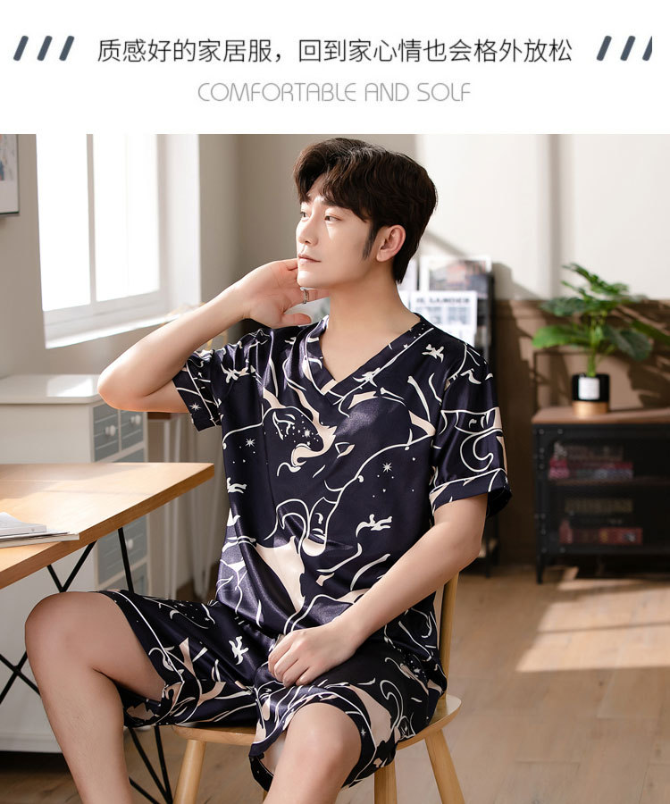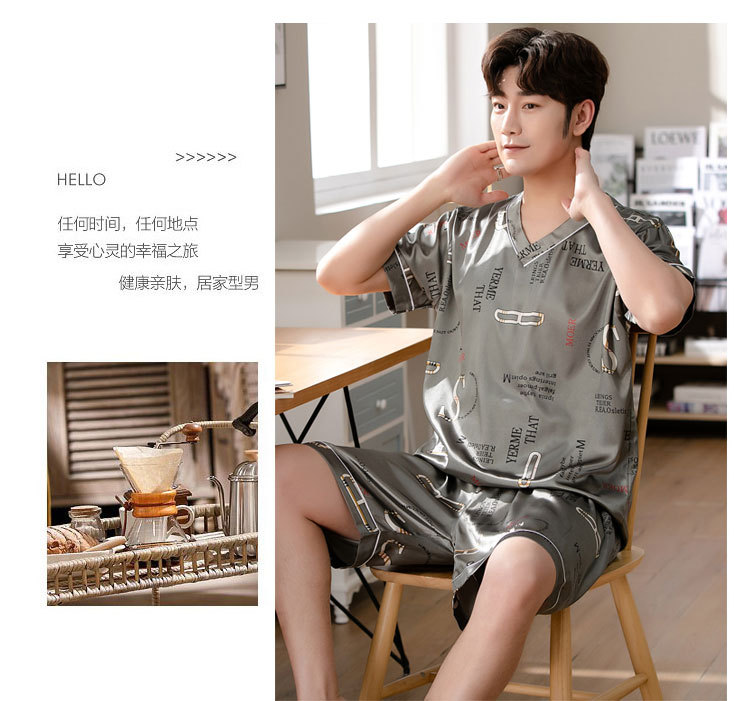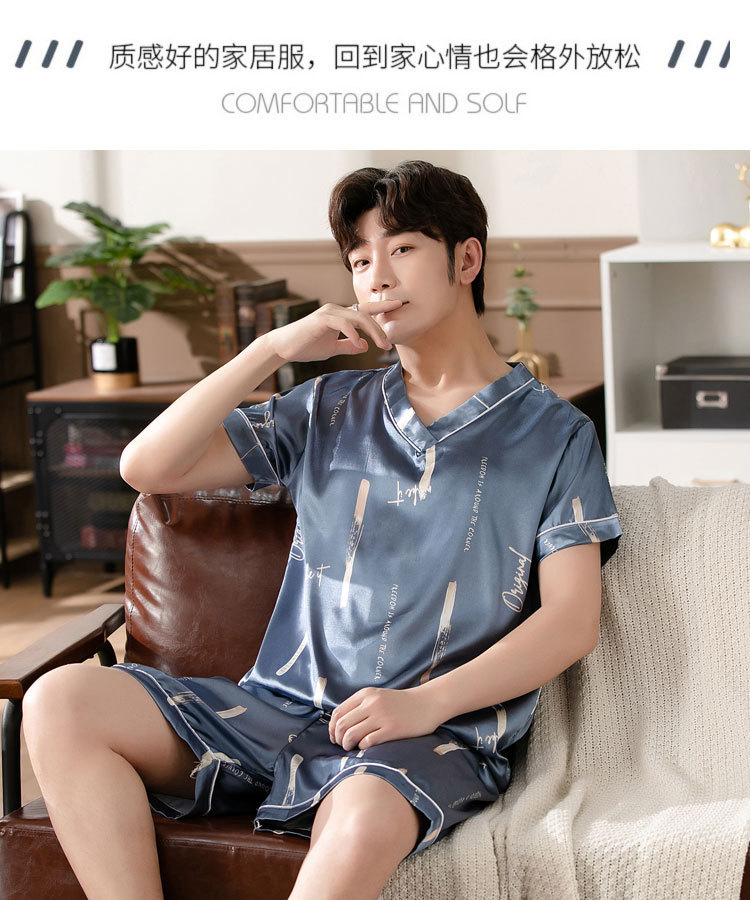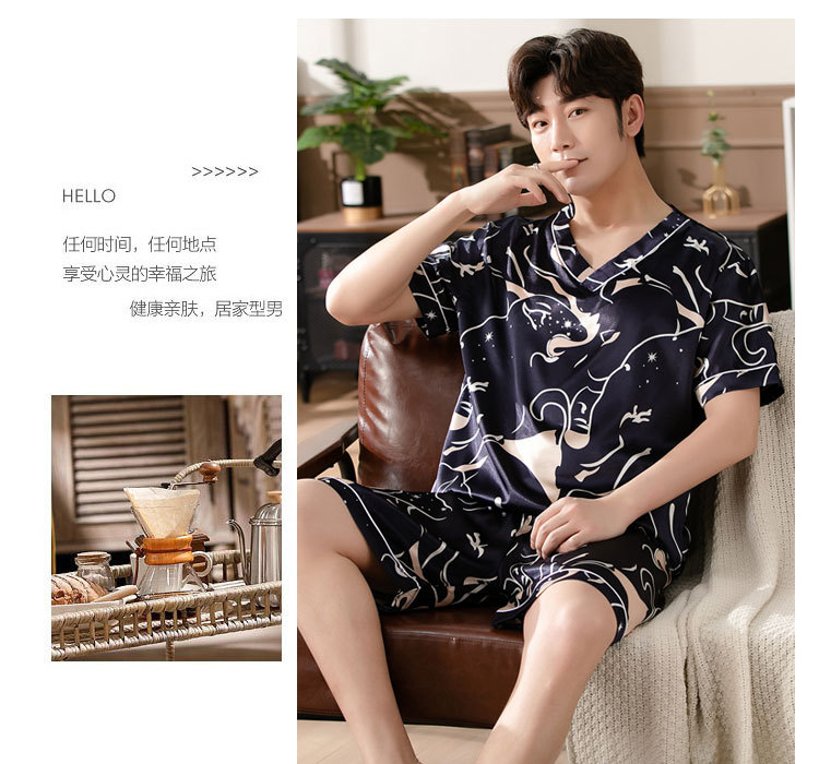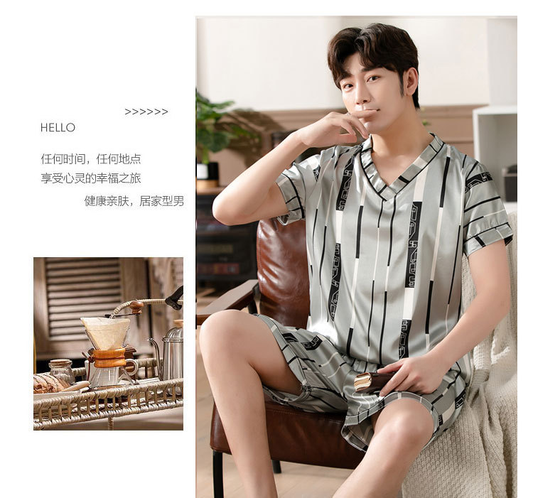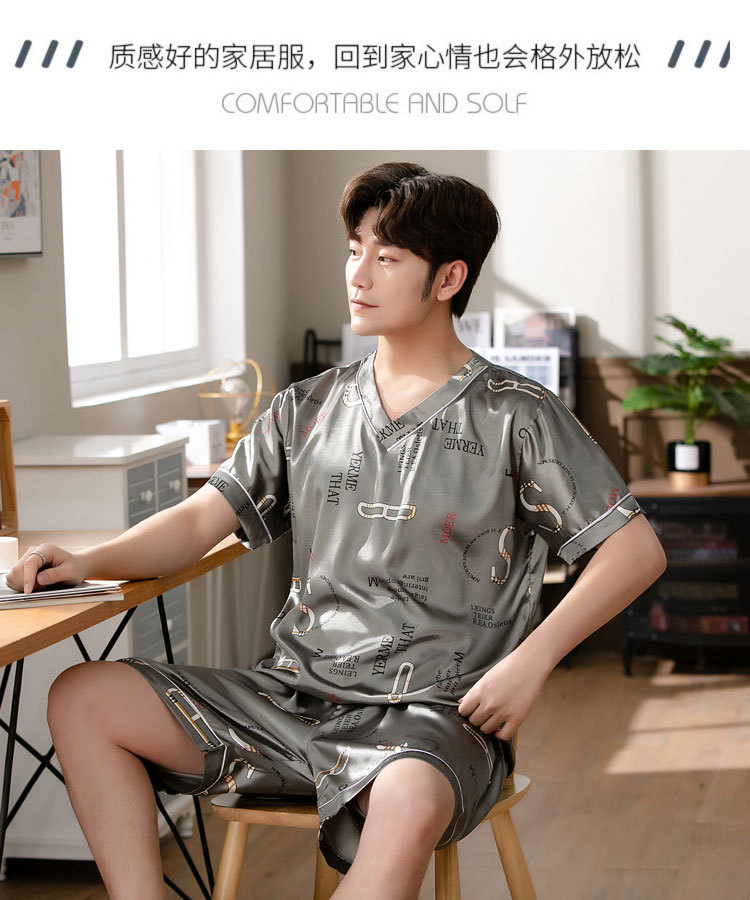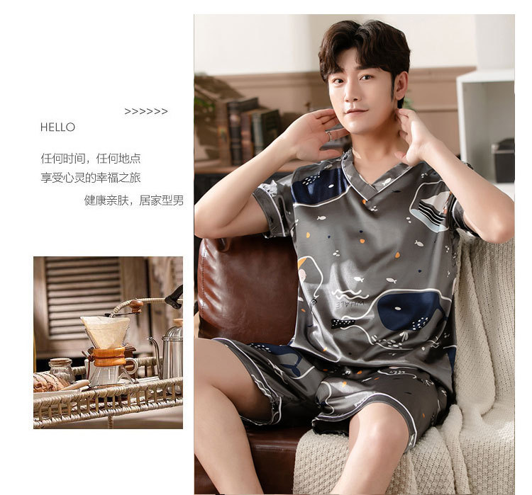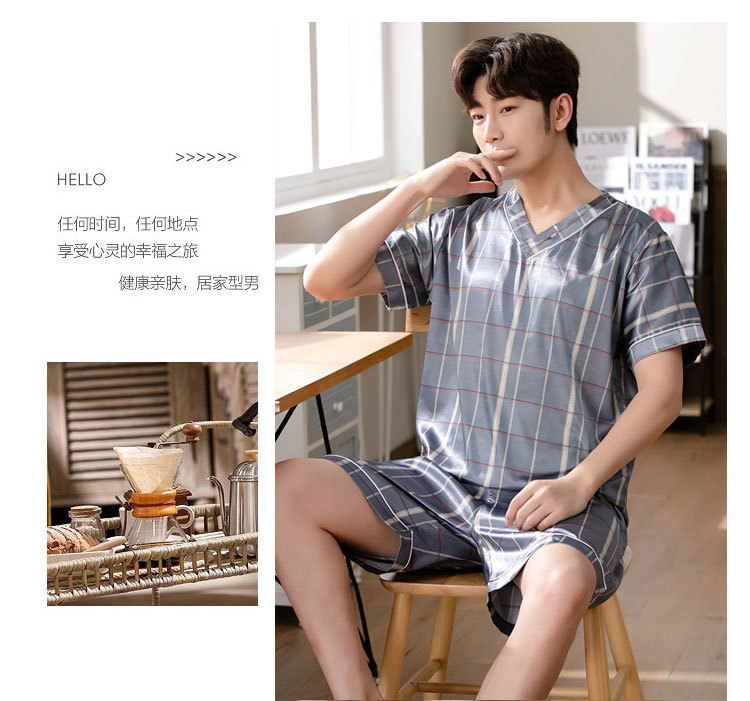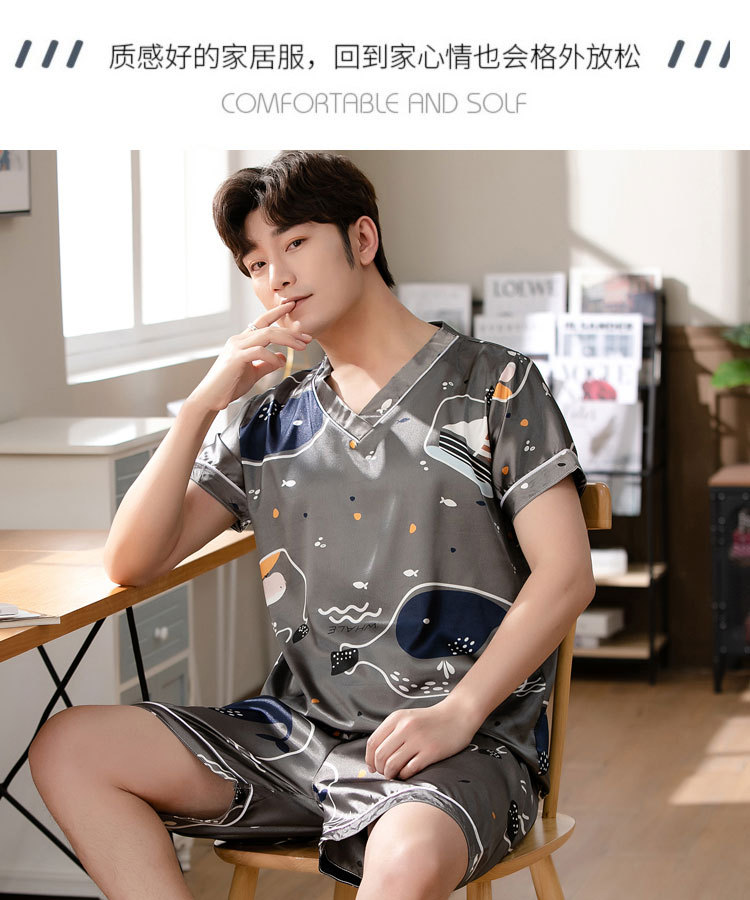 【瑜伽生活家】「十款可选」睡衣男夏季短袖短裤v领套头休闲简约男士上衣下装家居服
