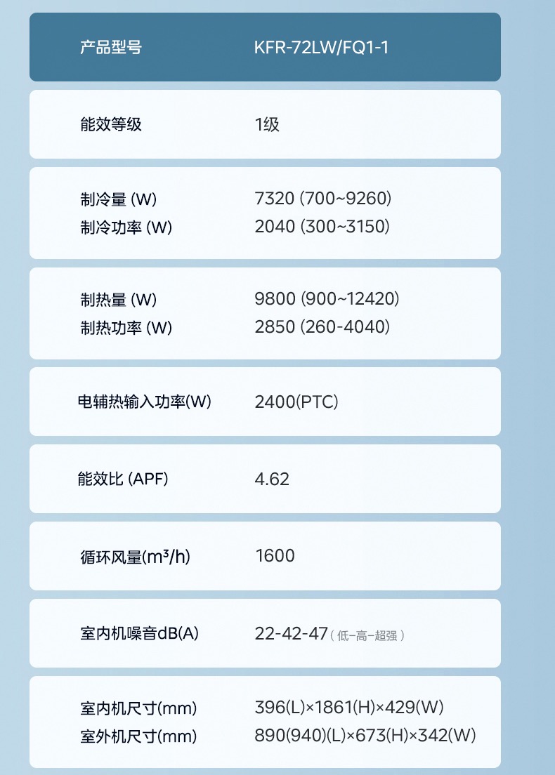 美的(110937)空调 KFR-72LW/FQ1-1 变频 杏雨灰 舒适星