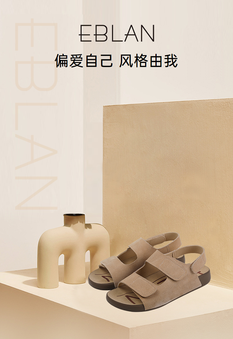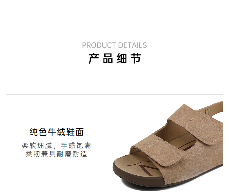 2楼伊伴2025年夏季牛绒鞋面橡胶底凉鞋B25370601