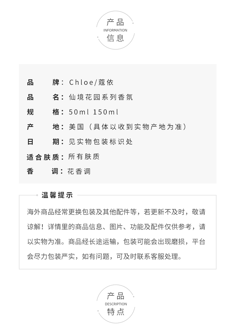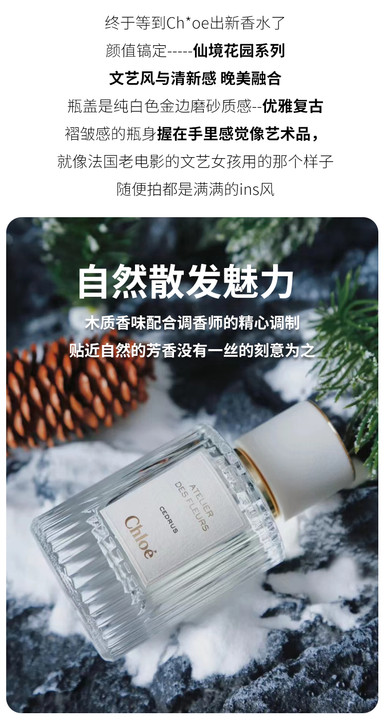 仙气飘飘!Chole蔻依仙境花园系列北国雪松/木兰诗语/烟雨茉莉女士香水50ml/150ml清新女士香氛 送香水礼品袋【CDF】