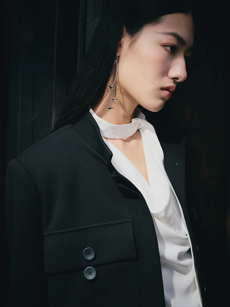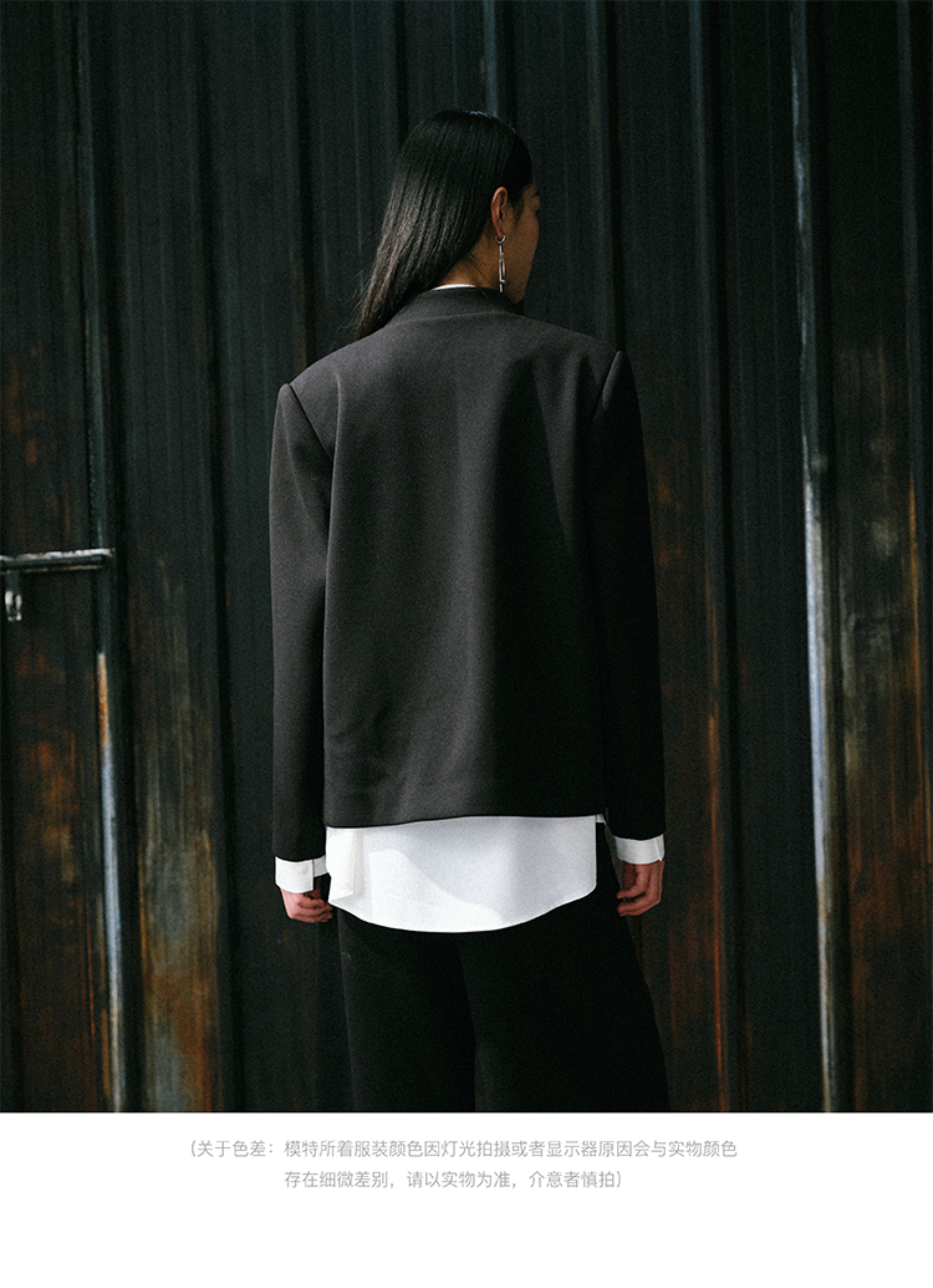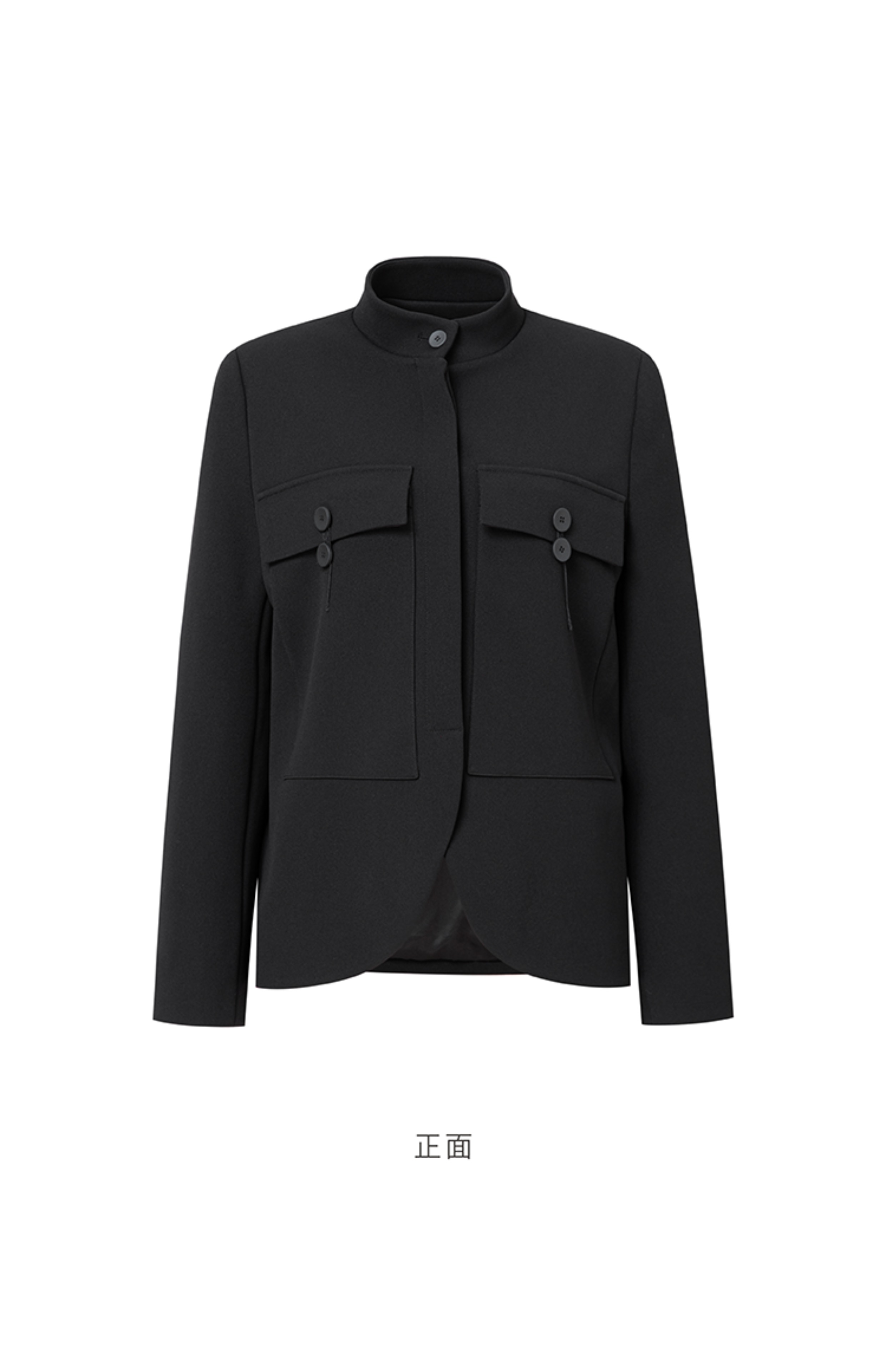 LIYIHAN 日本进口面料24秋新中式黑色立领短款西装外套女中山装