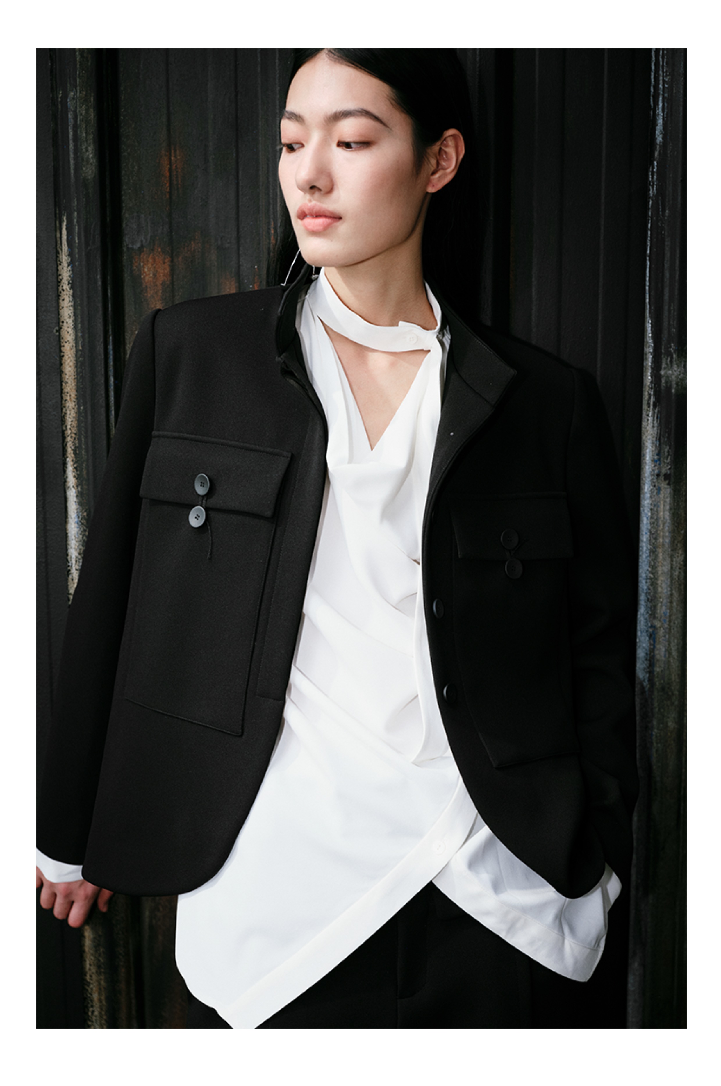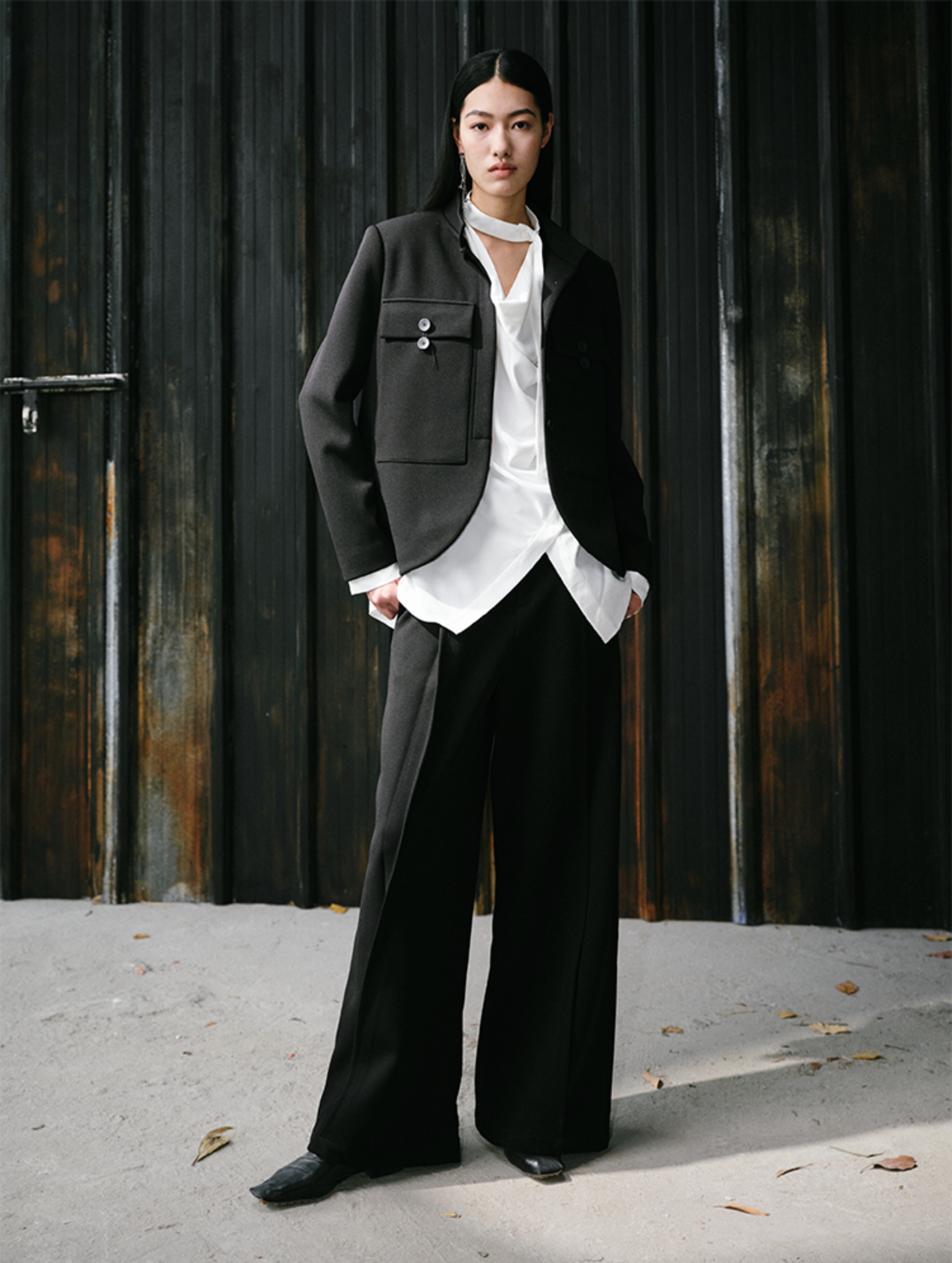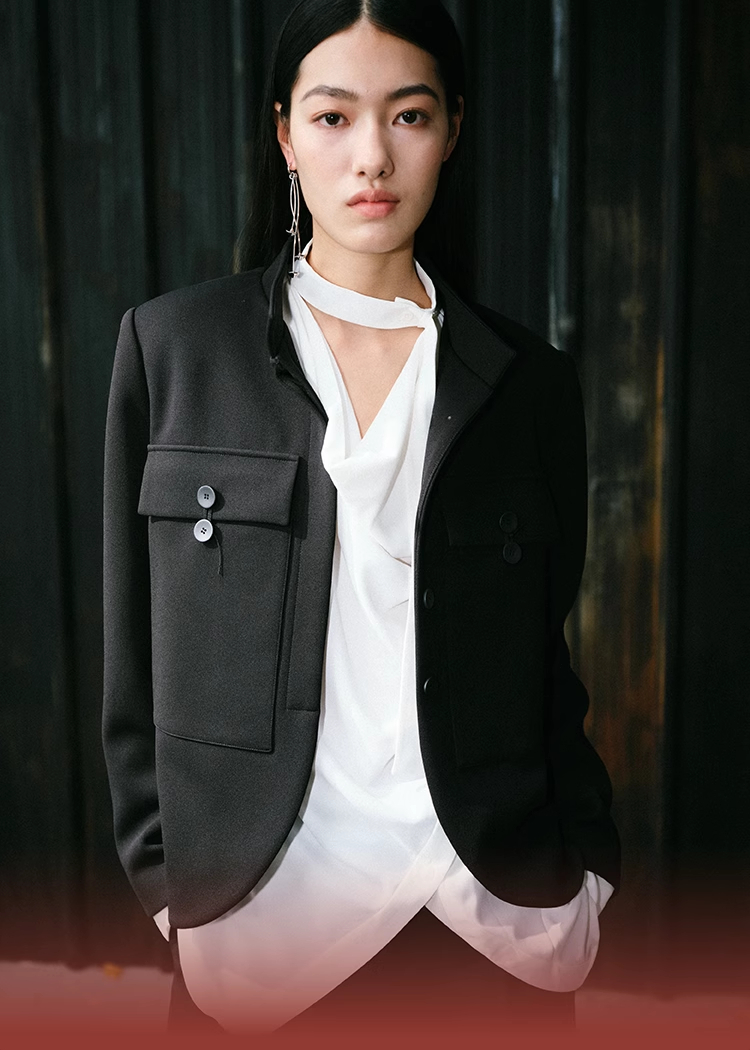LIYIHAN 日本进口面料24秋新中式黑色立领短款西装外套女中山装