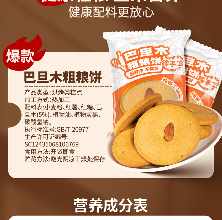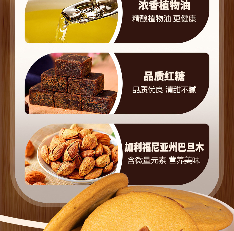 【酥脆口感!浓郁坚果醇香】纯手工巴旦木,果仁香醇!酥脆美味,红糖肚脐饼粗粮饼干夹心办公室下午茶馋嘴零食小吃整箱
