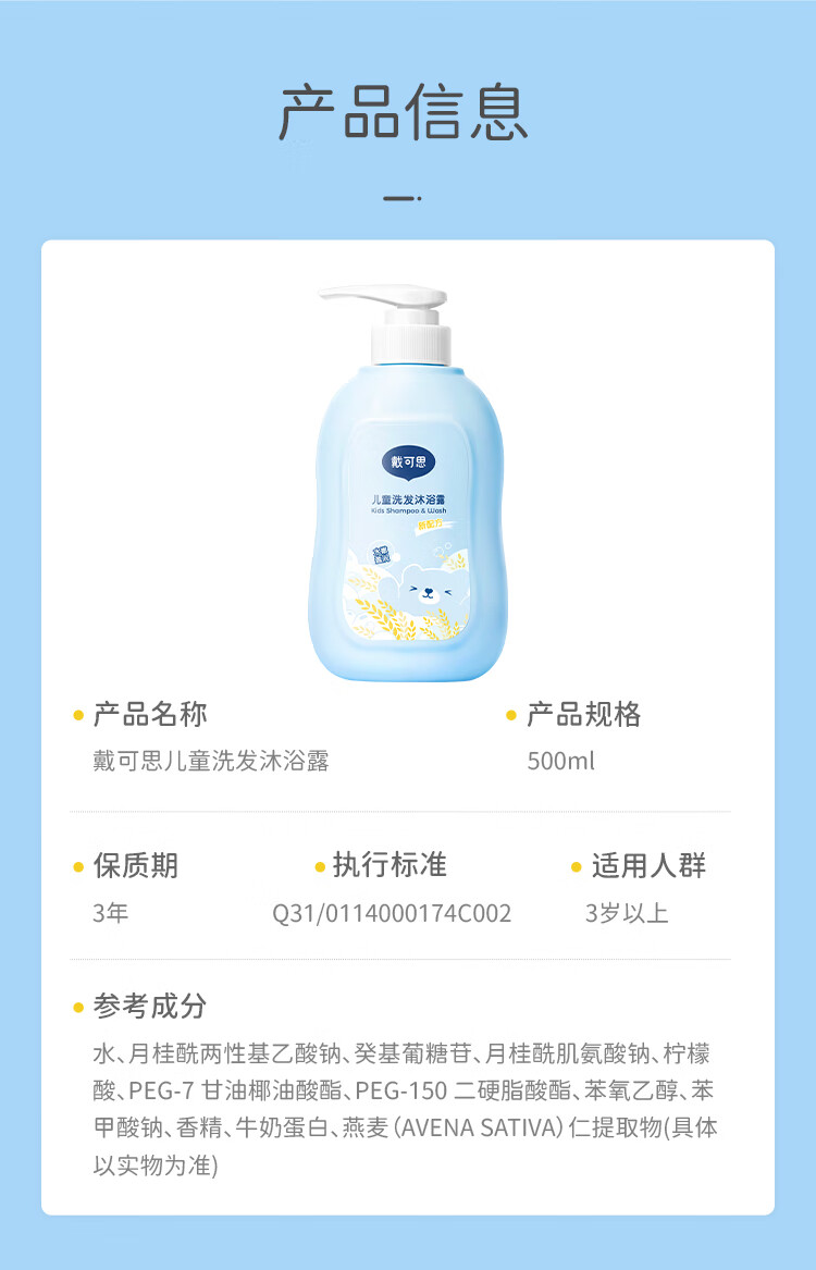 戴可思儿童沐浴露洗发水二合一 500ml