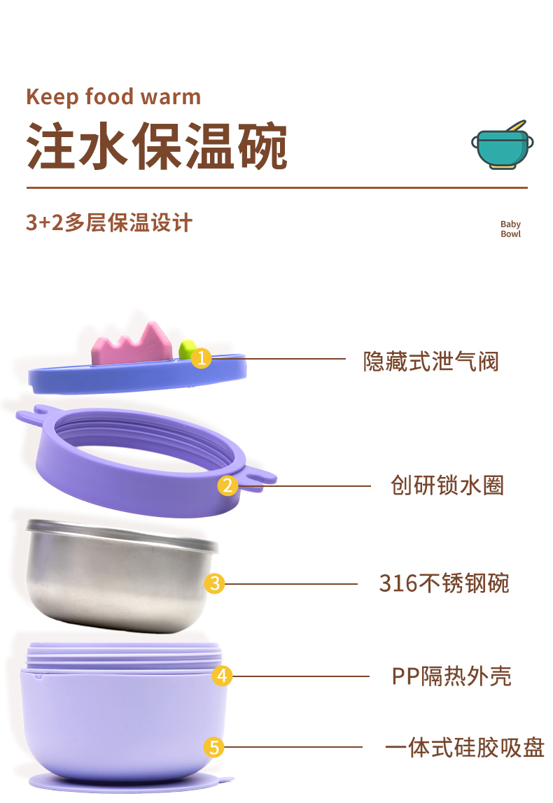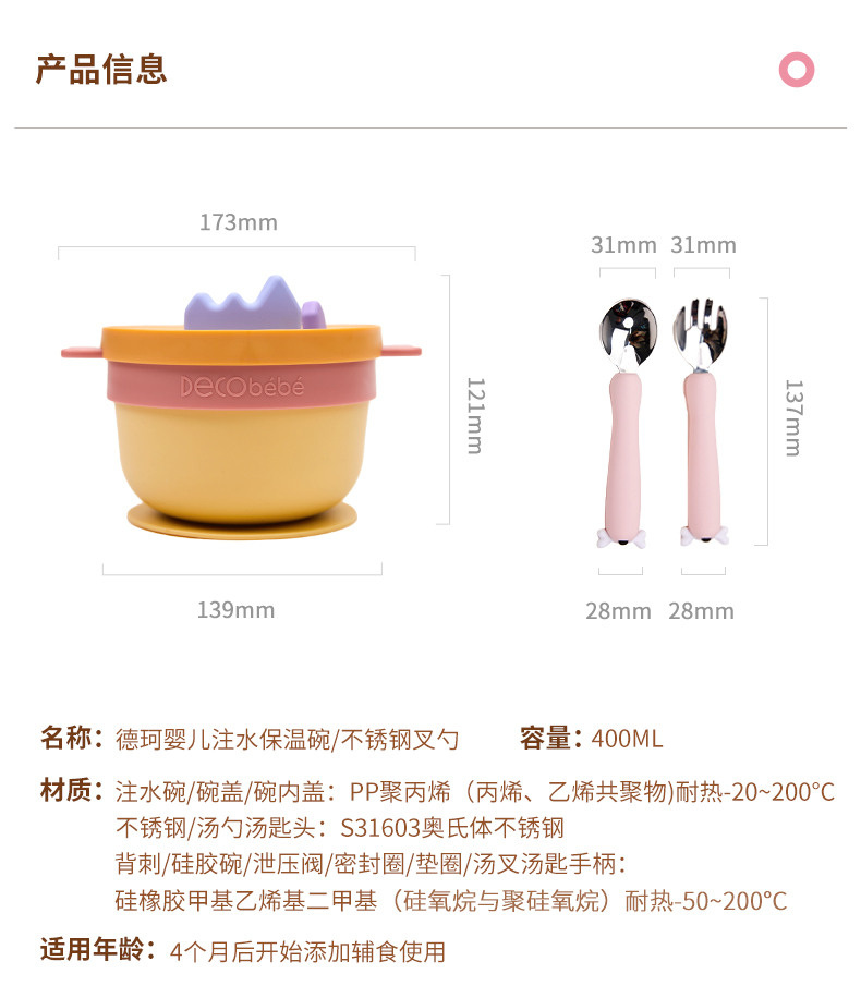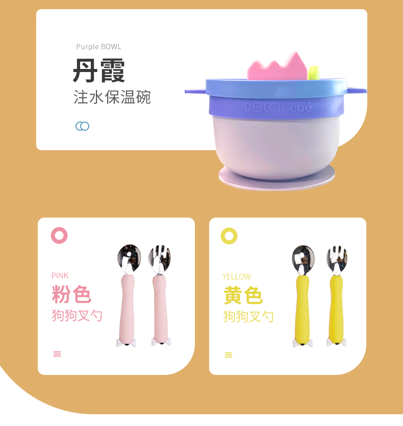 decobebe德珂婴儿保温碗辅食碗婴幼儿注水宝宝碗餐盘吸盘儿童餐具