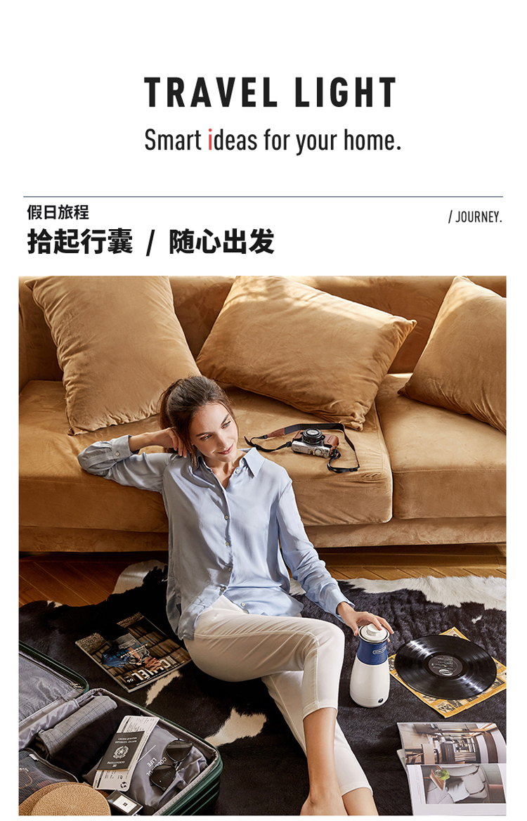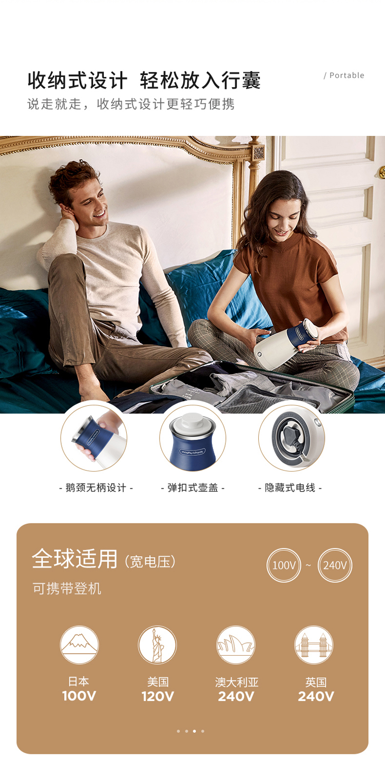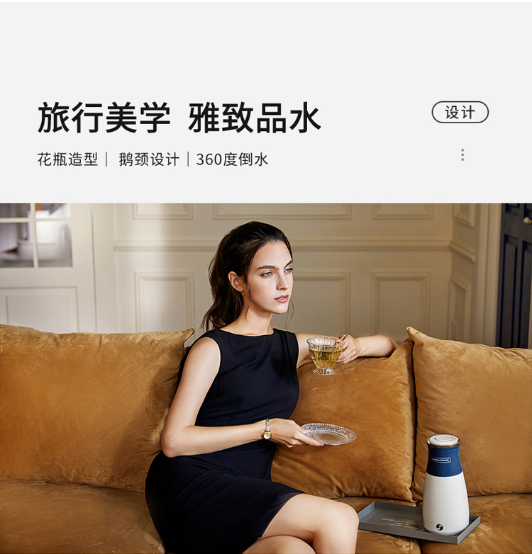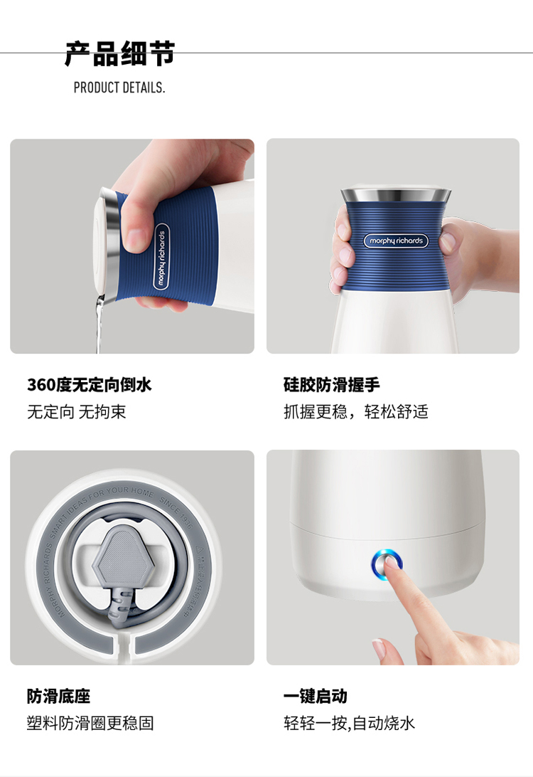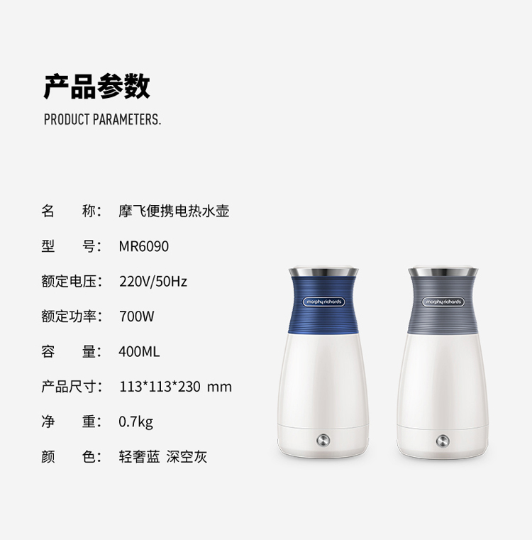 摩飞电器(Morphyrichards)电水壶烧水壶便携式家用旅行电热水壶随行冲奶泡茶办公室养生保温杯MR6090蓝色