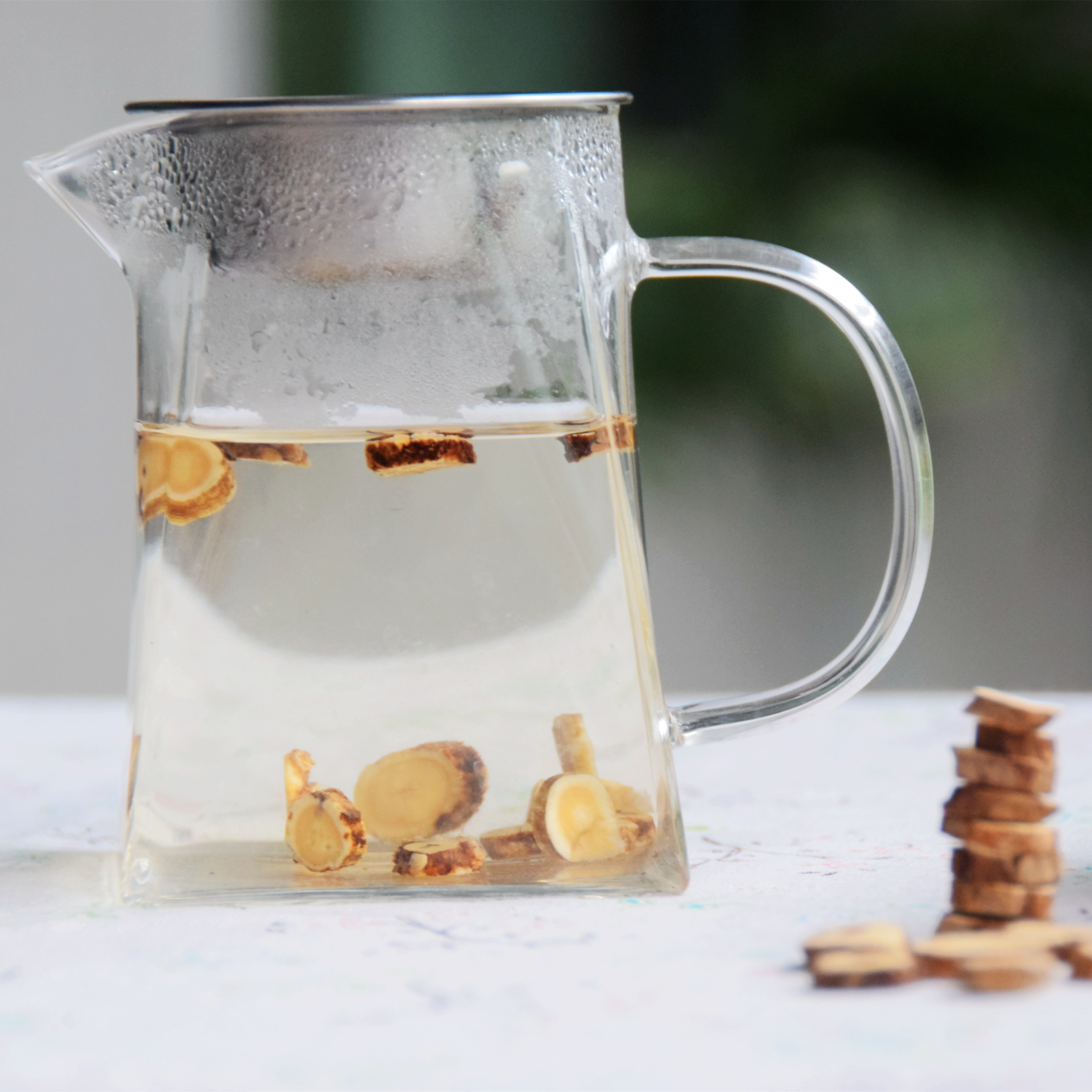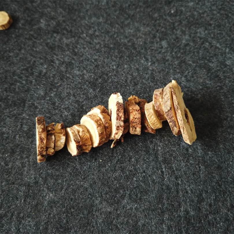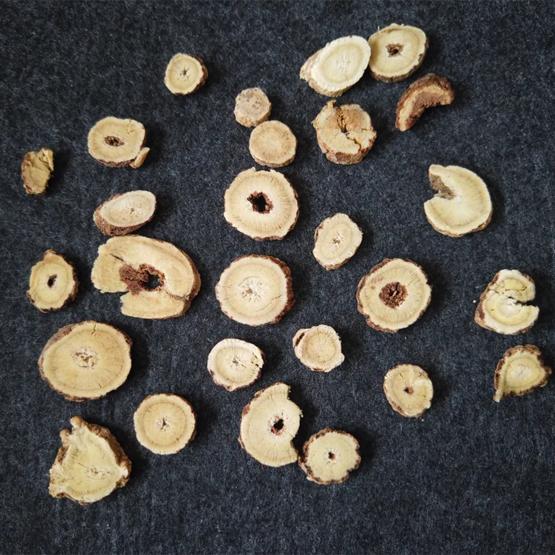 因为野生环境生长,其形态各异,根条弯曲,多分支,所以切片后形态大小不均匀,切面粗糙,有空隙,不光滑,但是纹理清晰。