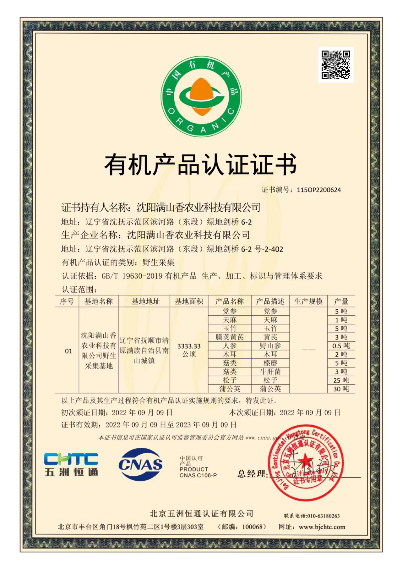 野生黄芪通过了中国有机认证(野生采集认证)