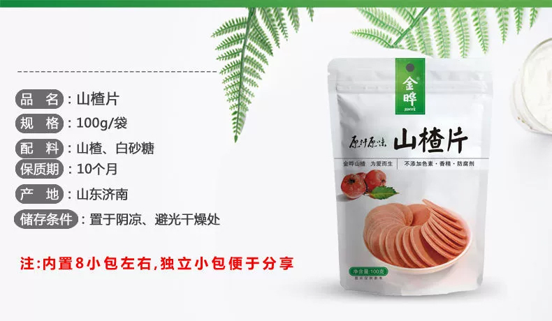 金晔休闲食品零食蜜饯果脯原汁原味山楂片100g