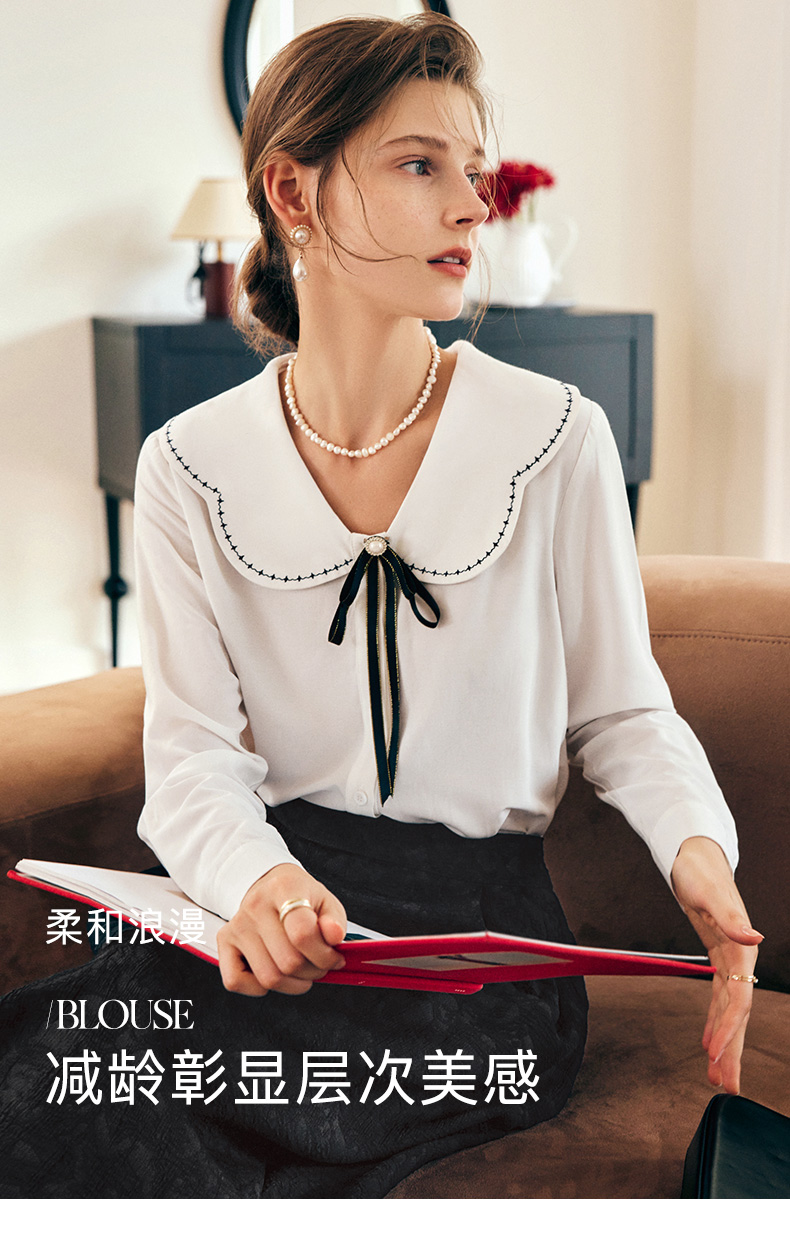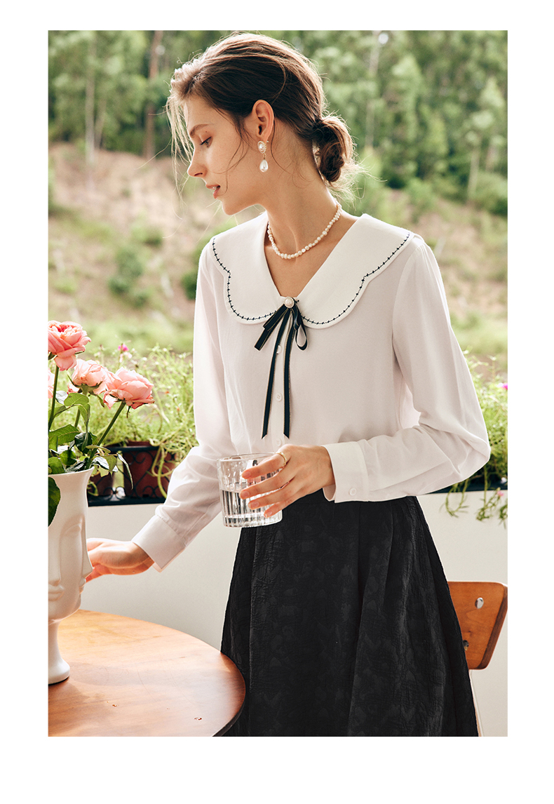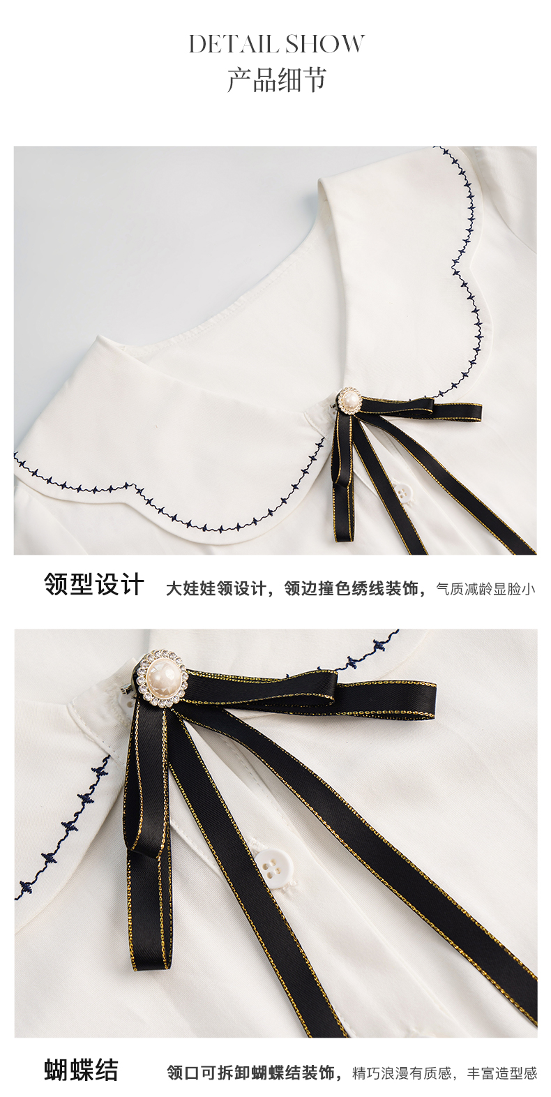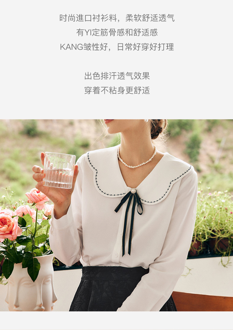 OLrain欧芮儿法式白色雪纺蕾丝衫女秋冬2022年新款甜美娃娃领小衫